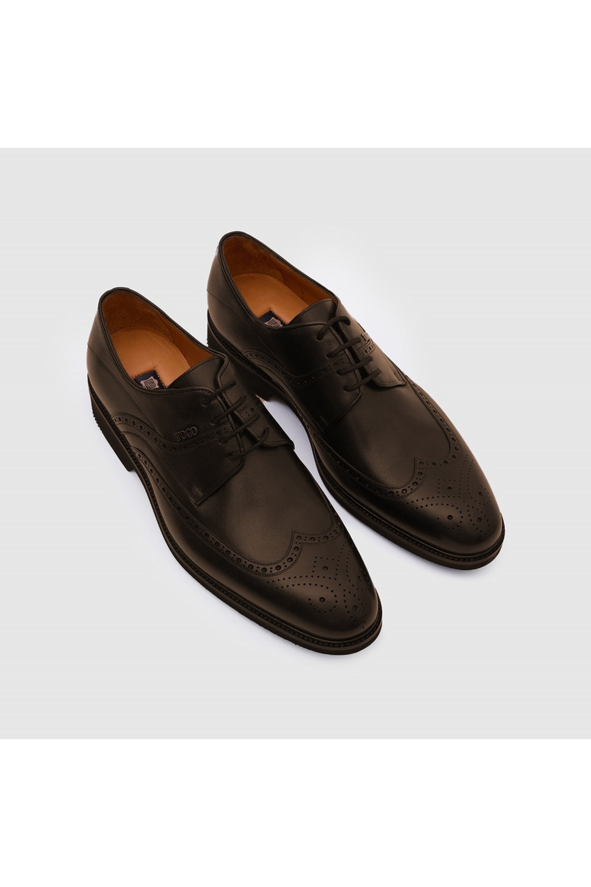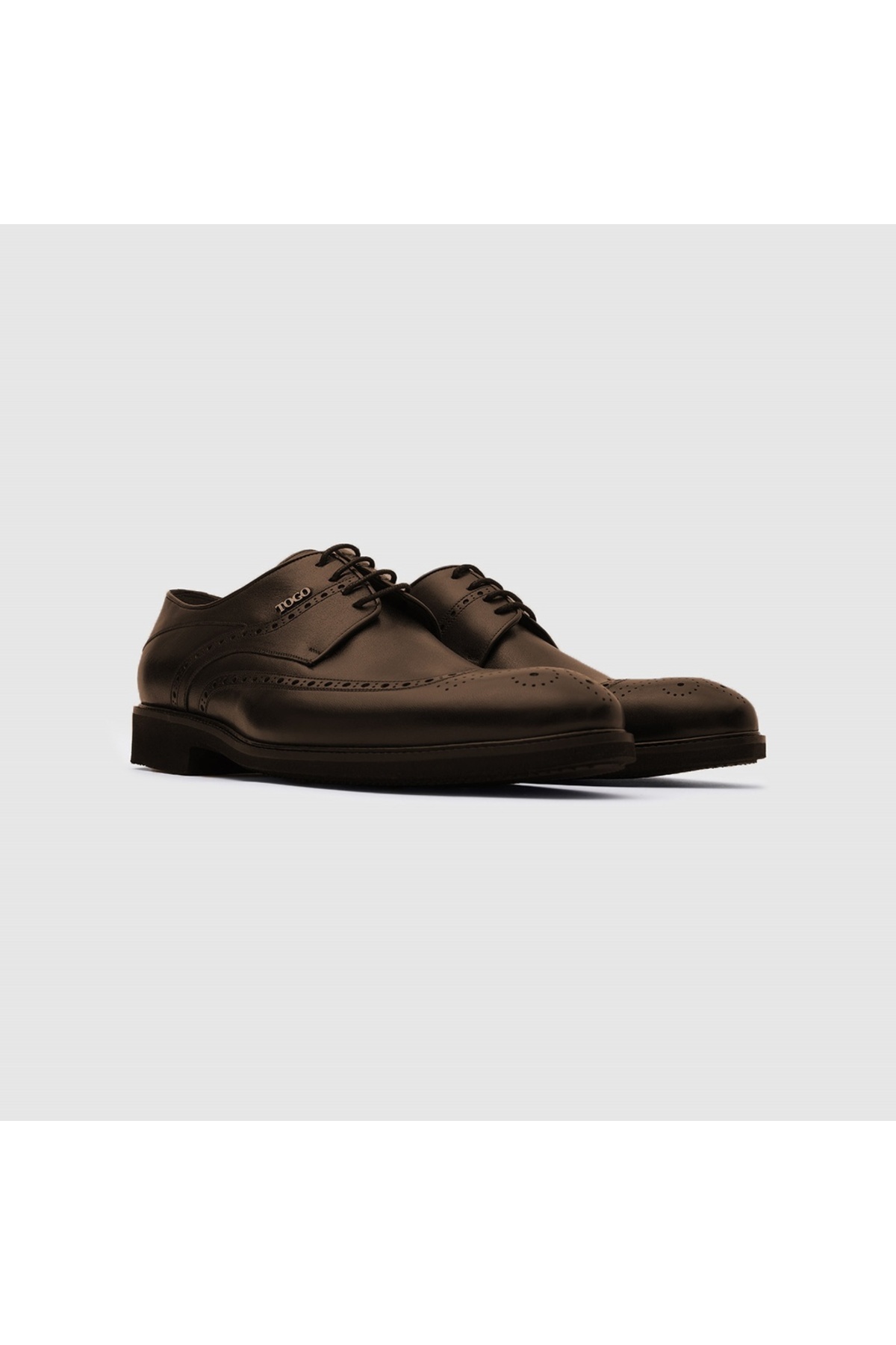 توگو کفش‌های مردانه کلاسیک چرم اصل قهوه‌ای گلدوزی شده [052071]