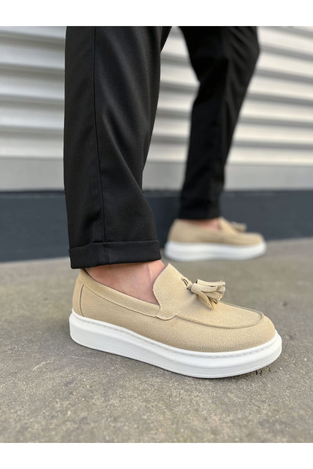 زاپاتوس کفش کلاسیک ورزشی مردانه Blaze مدل SBT – رنگ کرم، مدل JY154، جنس جیر منگولهدار بدون بند