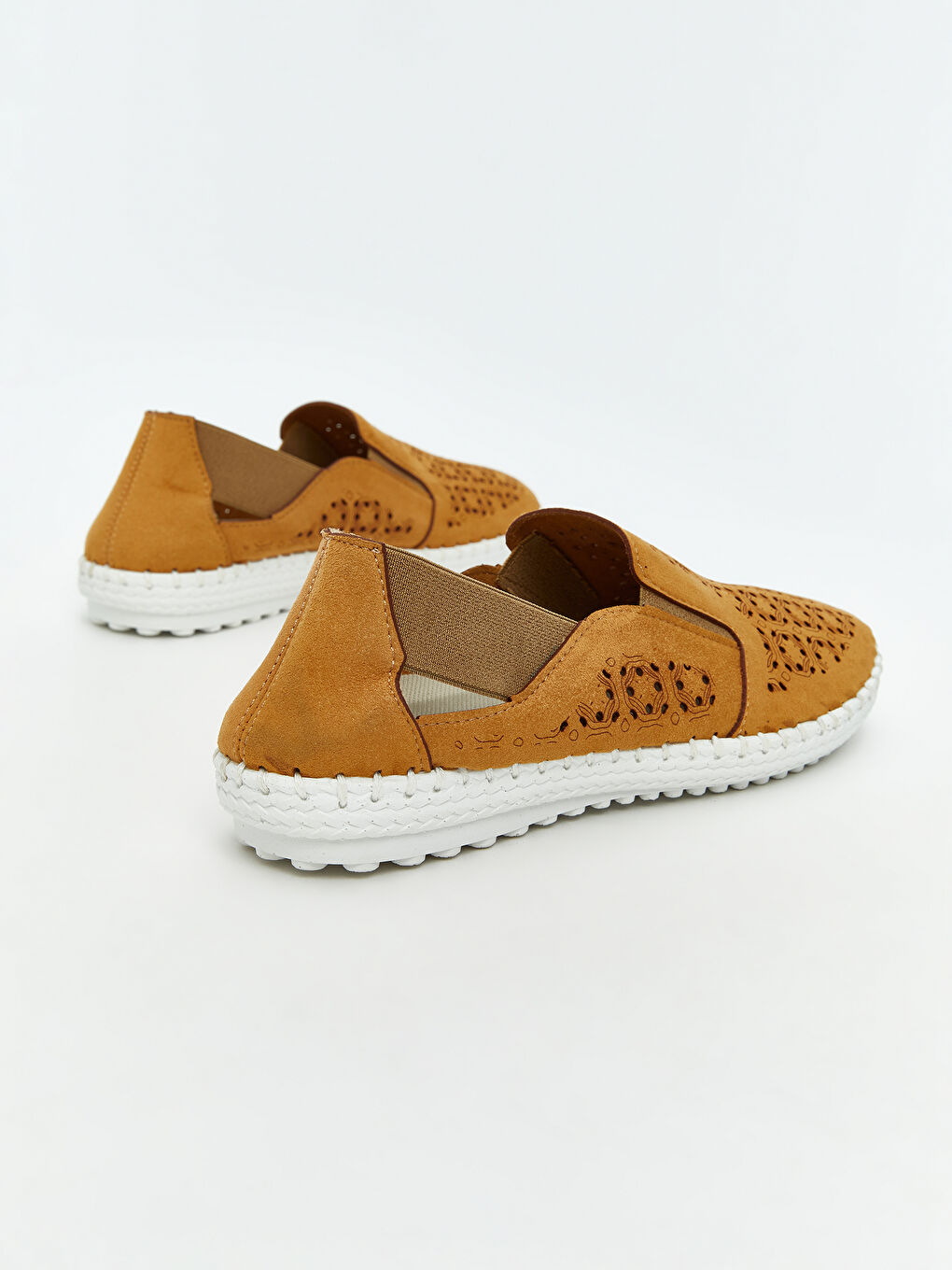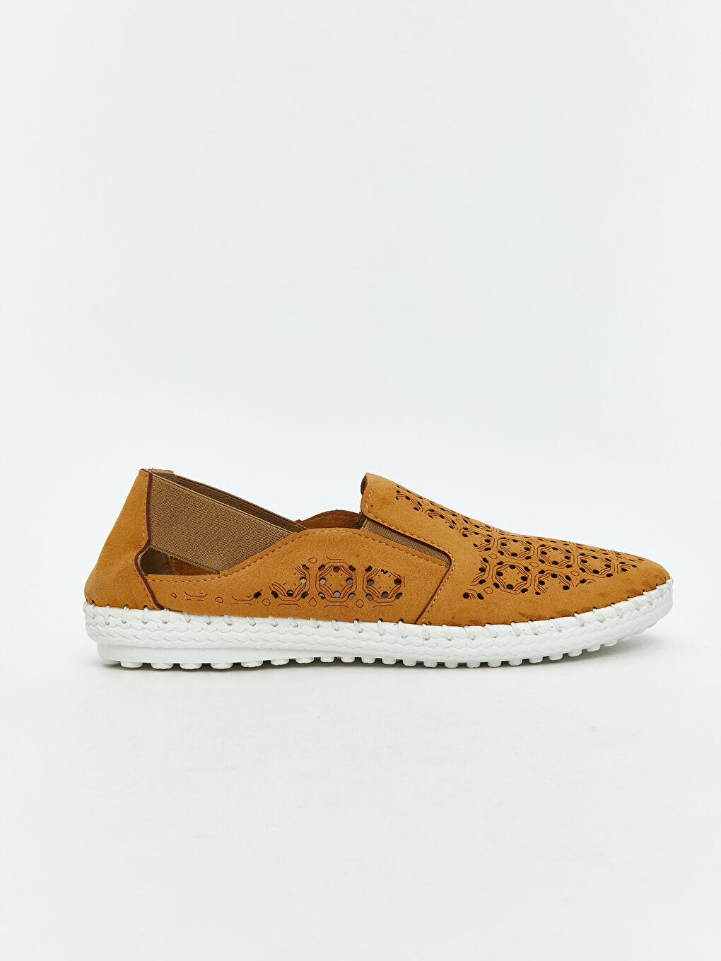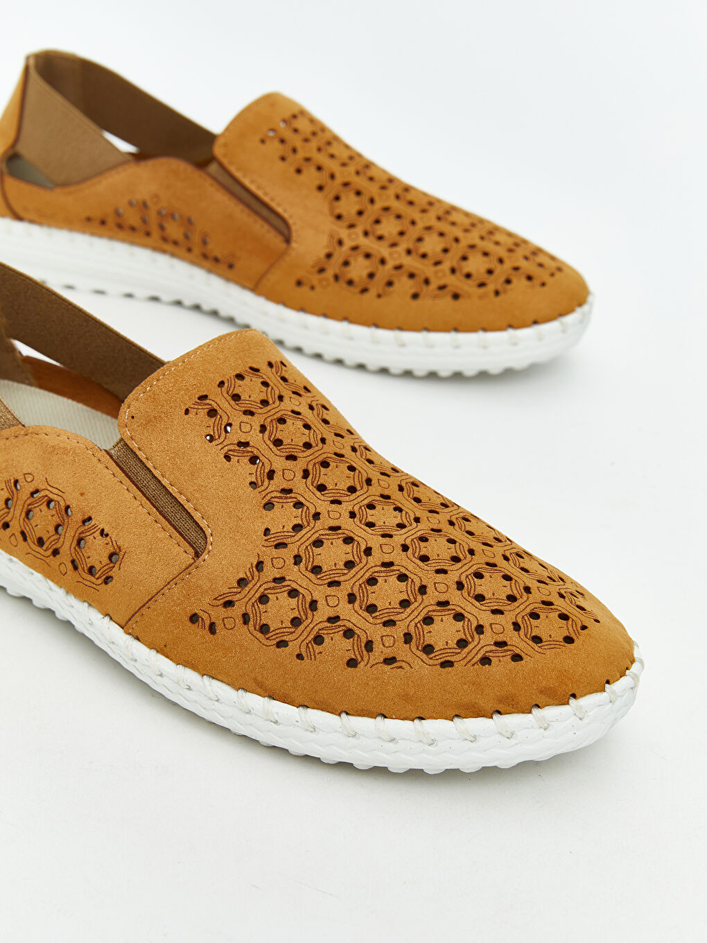 این کفشهای راحتی زنانه که با لیزر برش داده شدهاند، دارای نوارهای کشی در طرفین و پشت و کفی صاف هستند.
