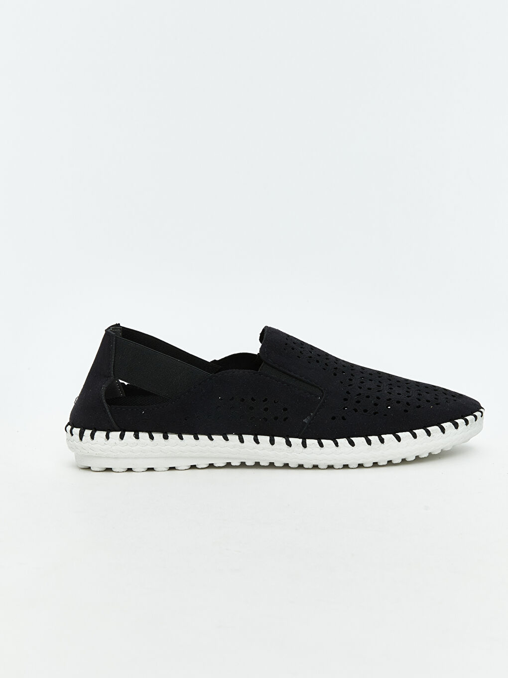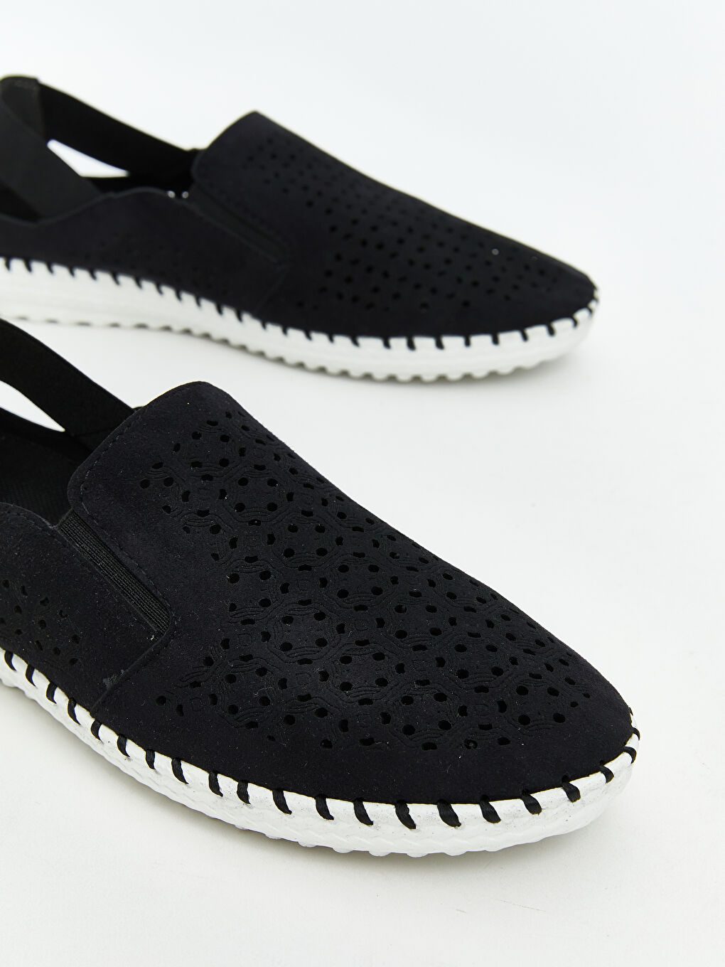 این کفشهای راحتی زنانه که با لیزر برش داده شدهاند، دارای نوارهای کشی در طرفین و پشت و کفی صاف هستند.