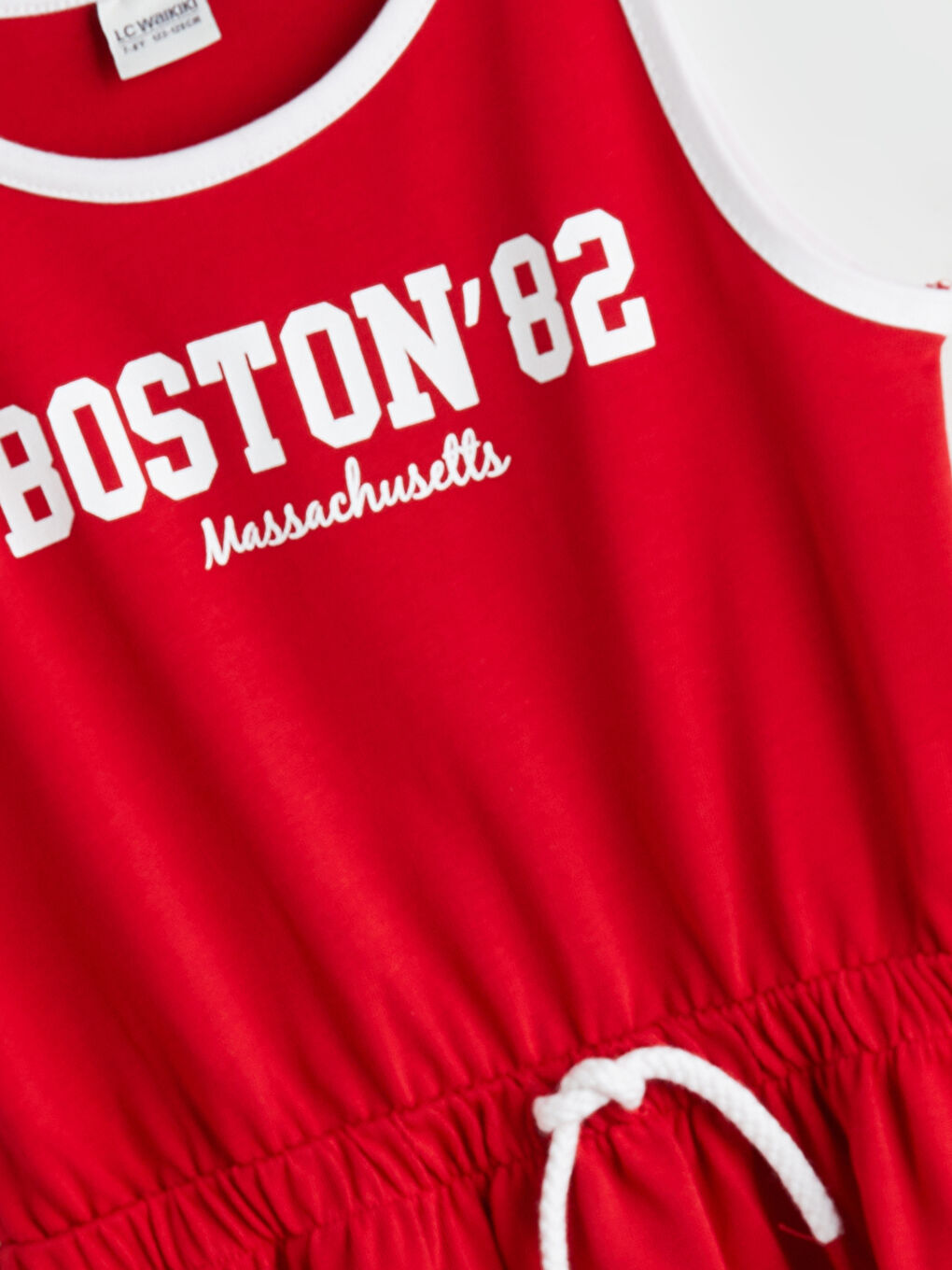 این لباس دخترانه دارای طرح بوستون و بند کمری با طرح بند کشی است.