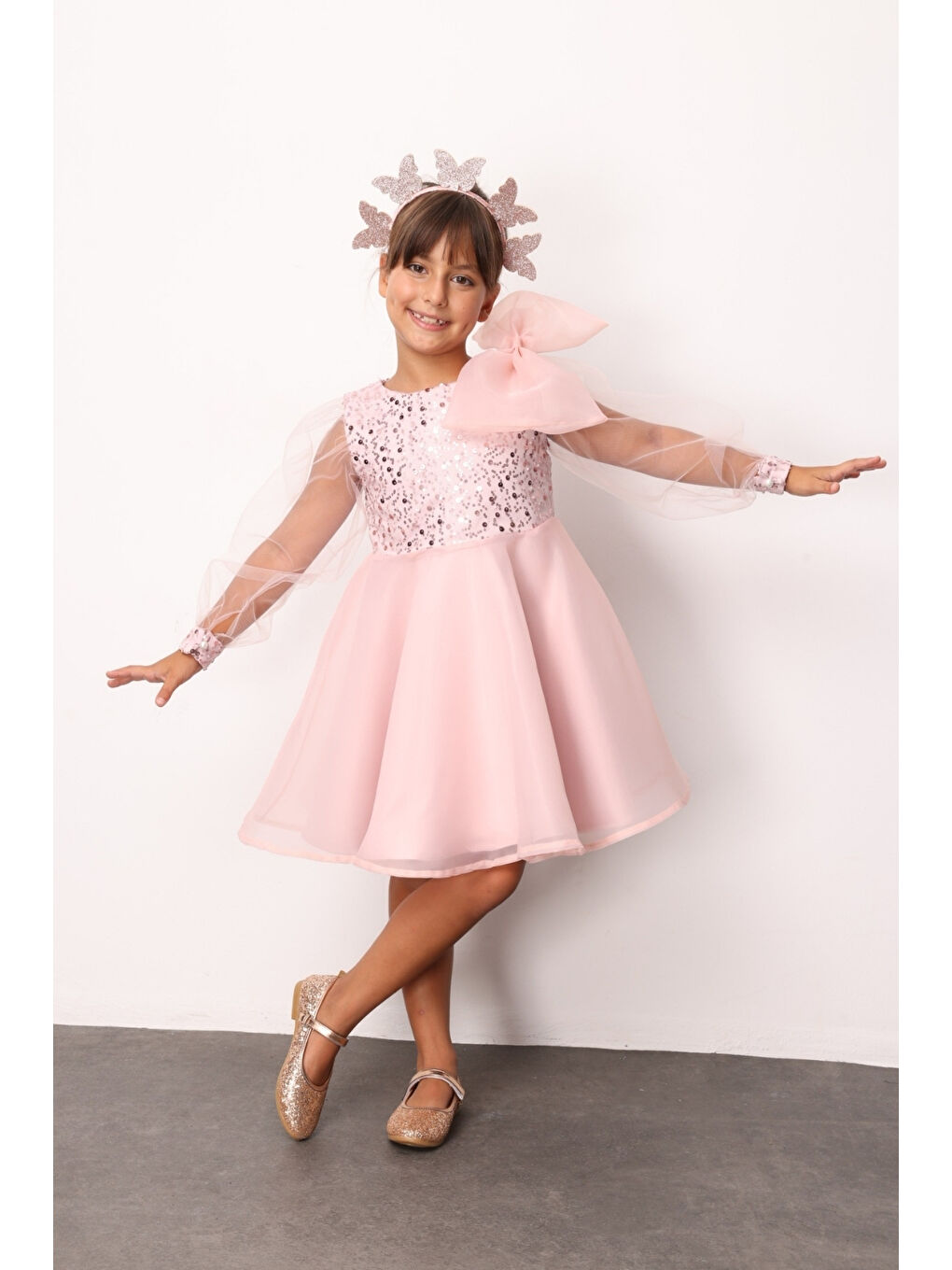 لباس دخترانه پولک دوزی شده با پاپیون – وندی