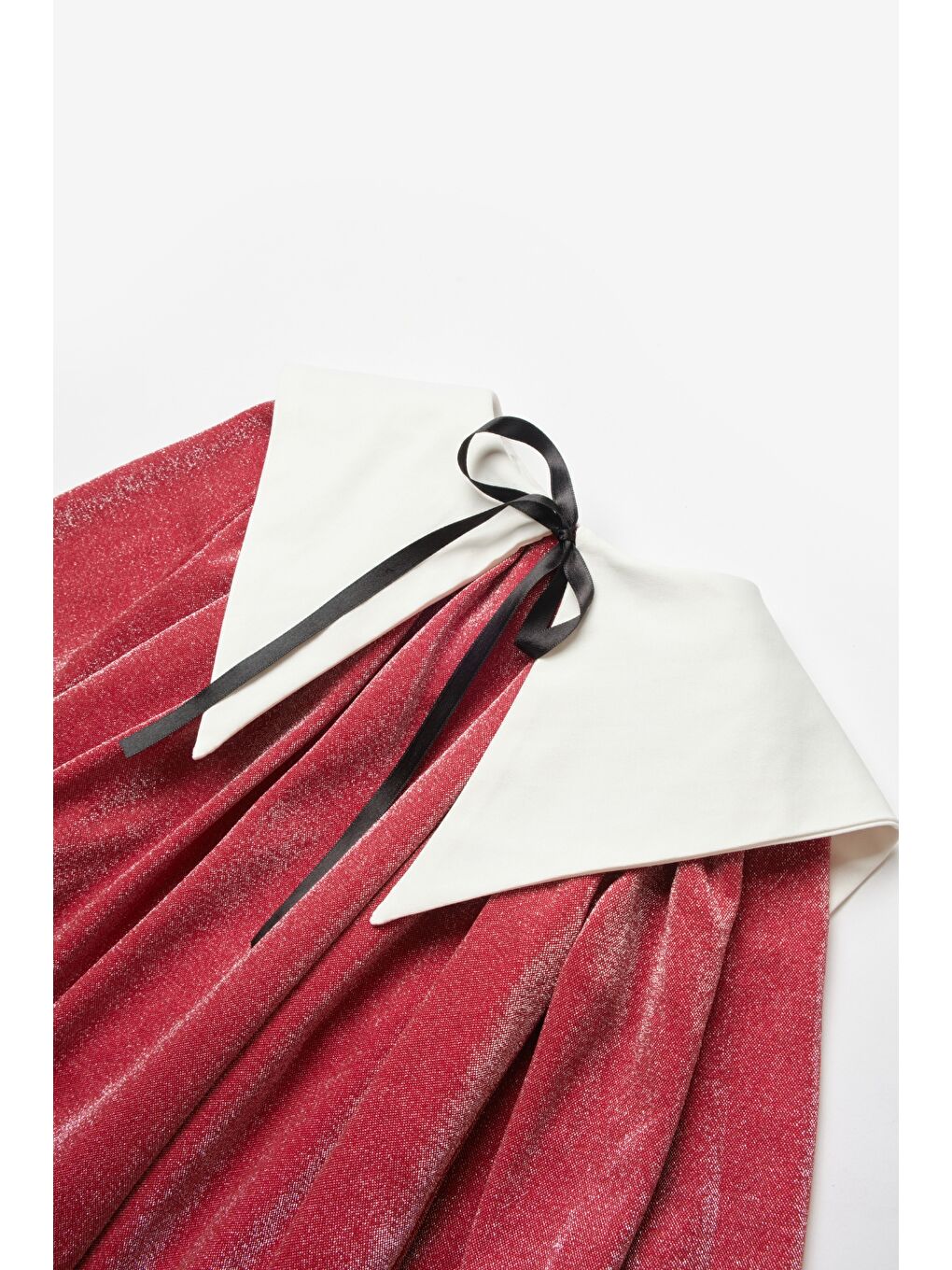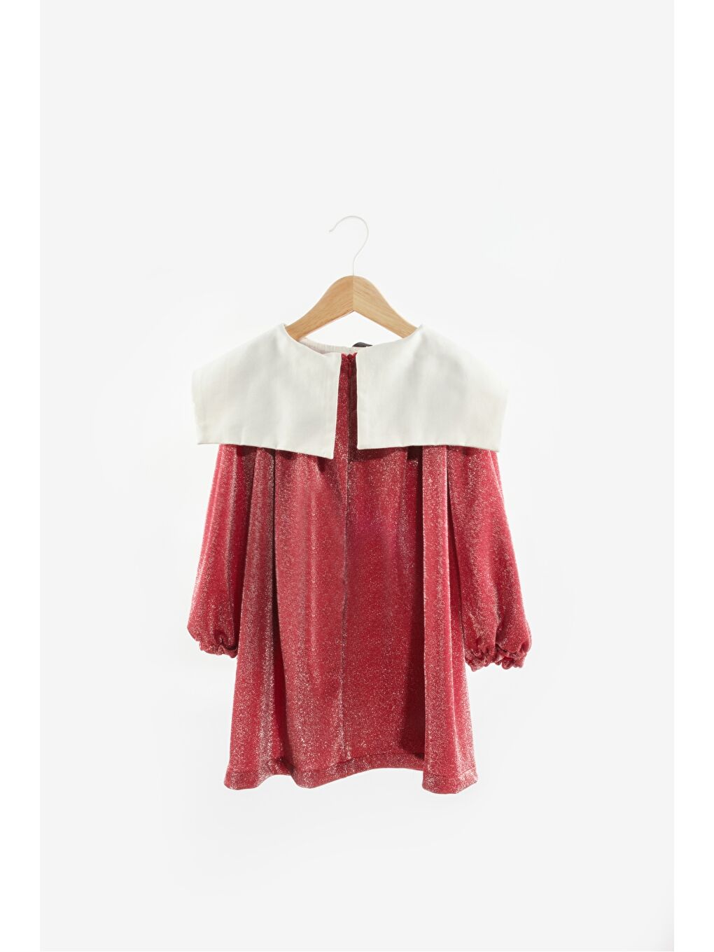 لباس دخترانه قرمز آستین بلند یقه بلند براق – مایا