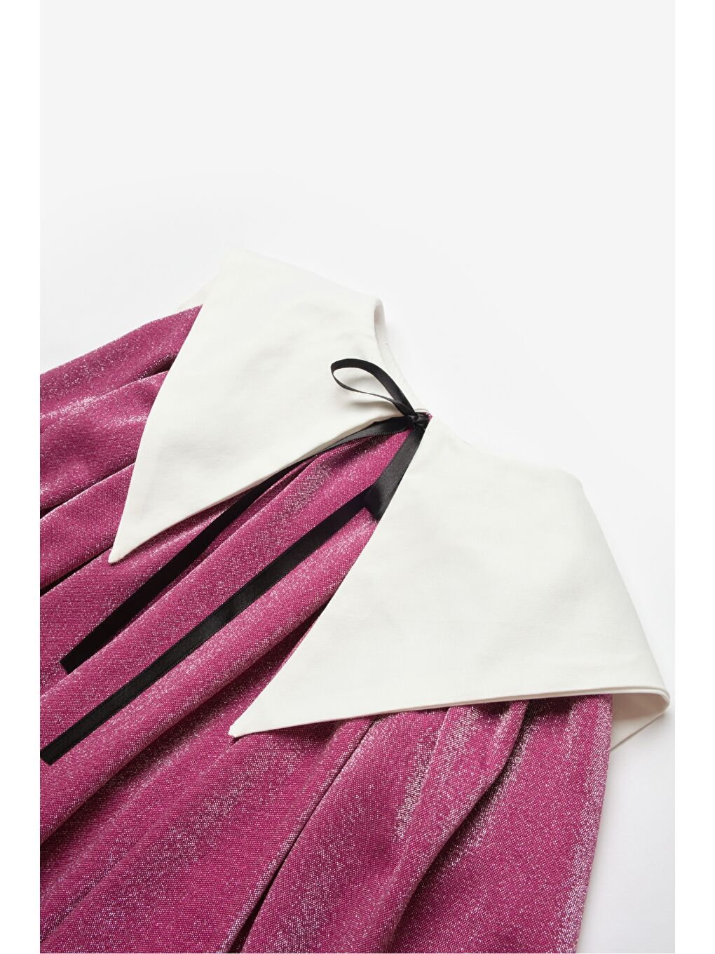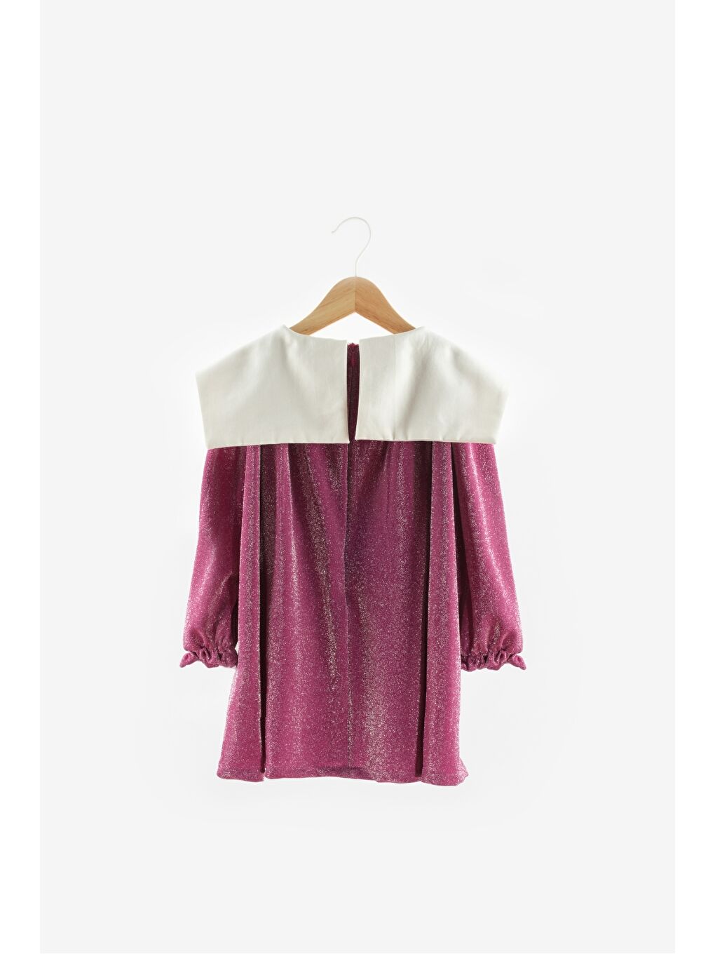 لباس دخترانه آستین بلند یقه فوشیا براق و پر زرق و برق – مایا