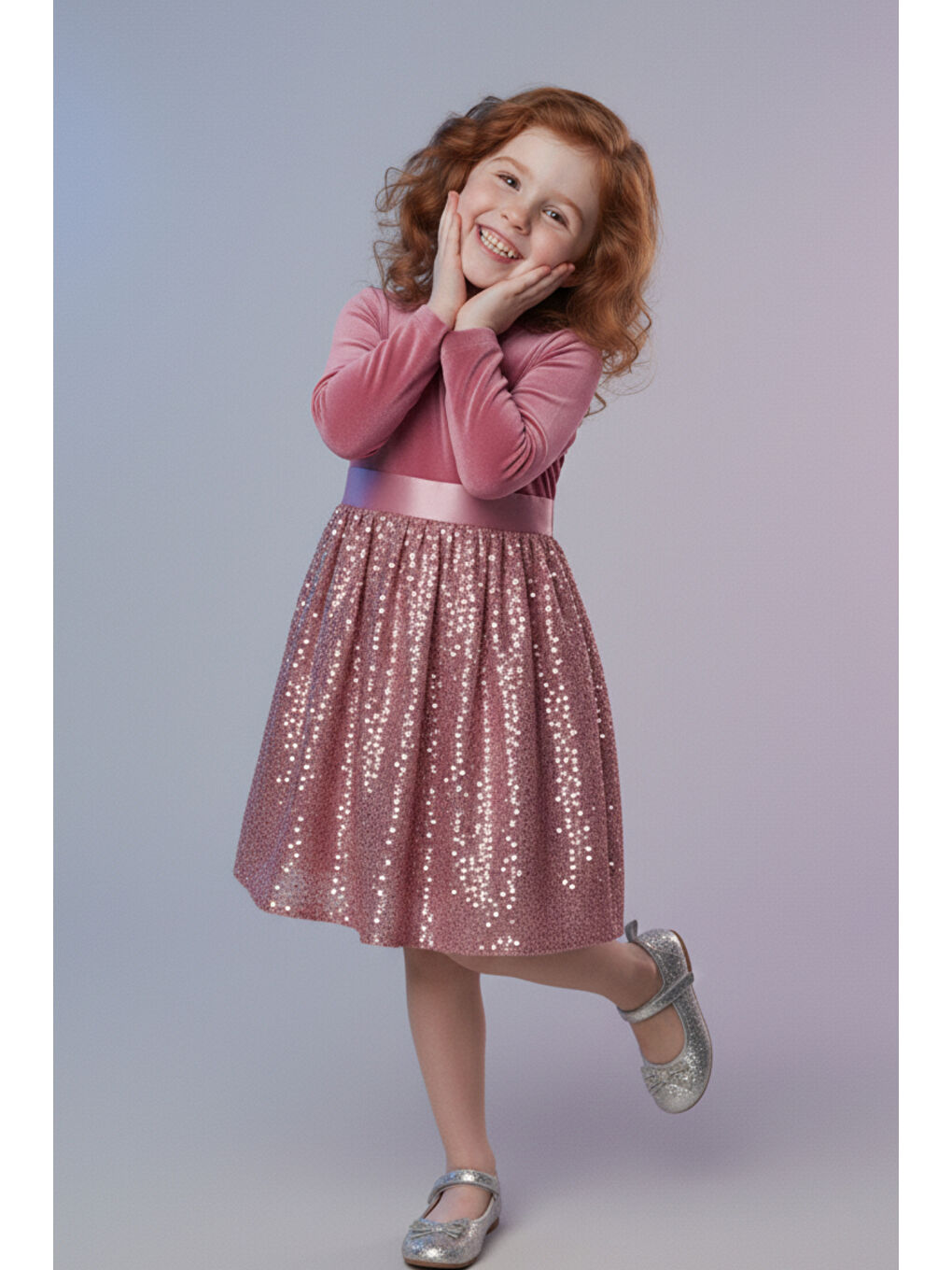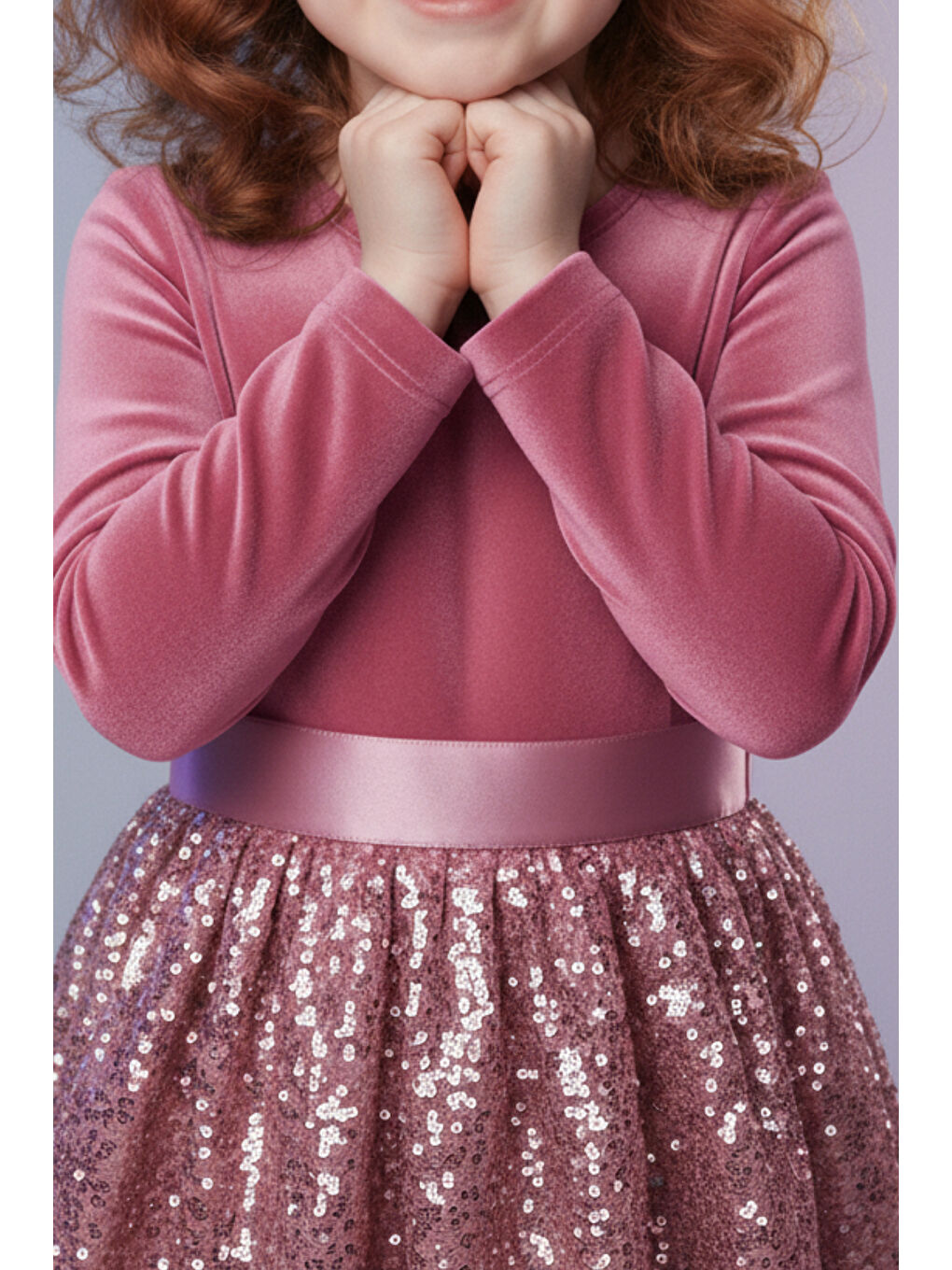 لباس مجلسی دخترانه صورتی مخمل پولک دوزی شده پفی پاپیونی مناسب برای مناسبت های خاص ۳-۱۰ سال