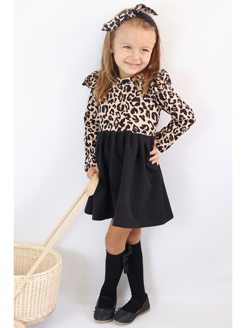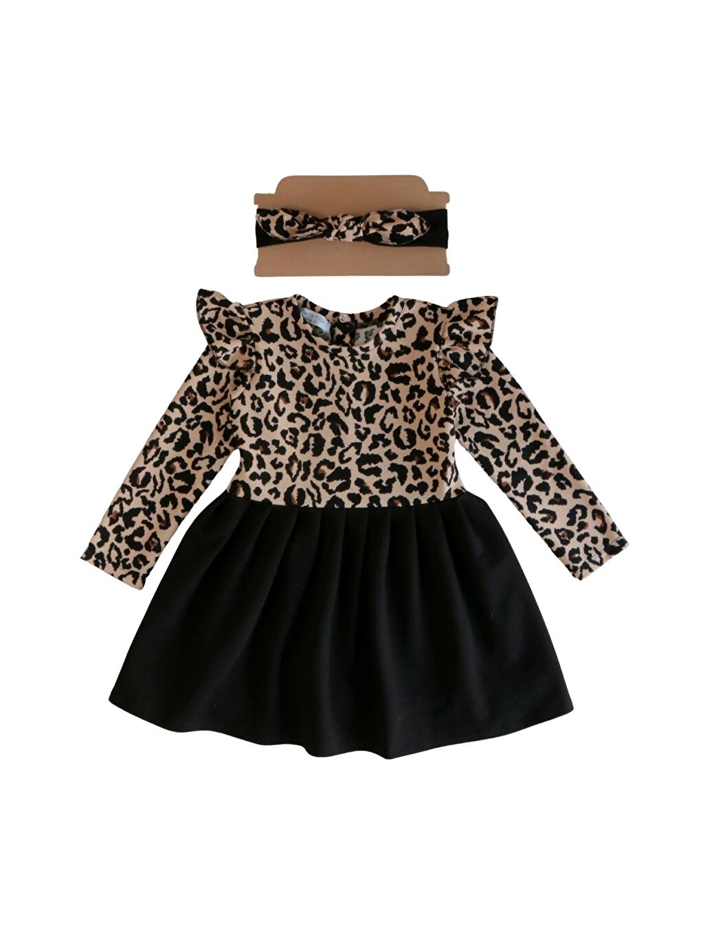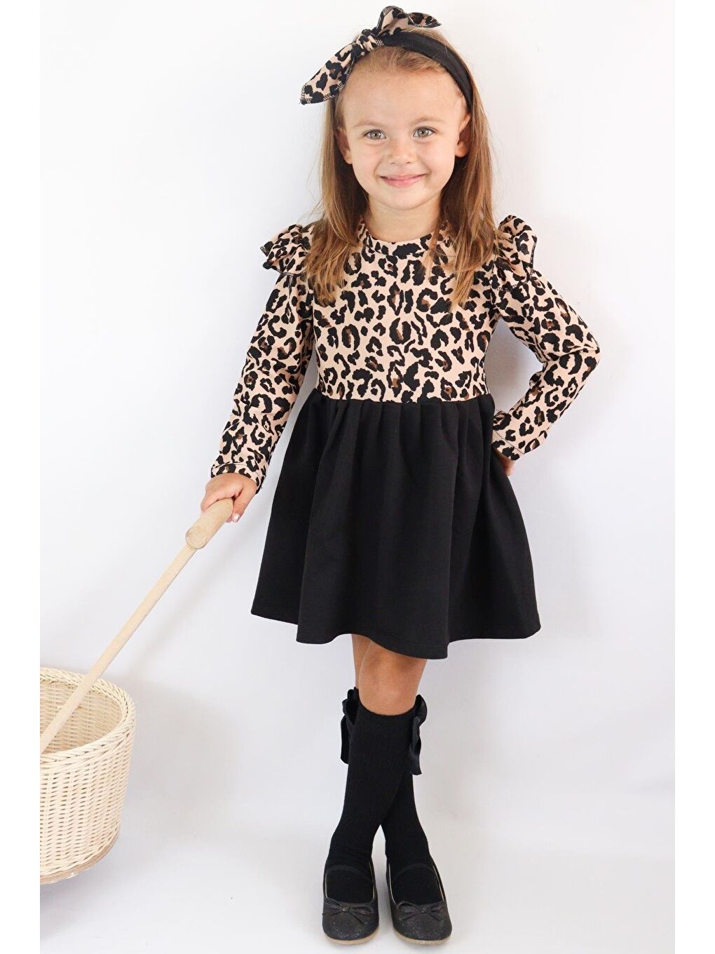 ست لباس دخترانه مشکی طرح پلنگی آستین بلند طرح دار با طرح باندانا