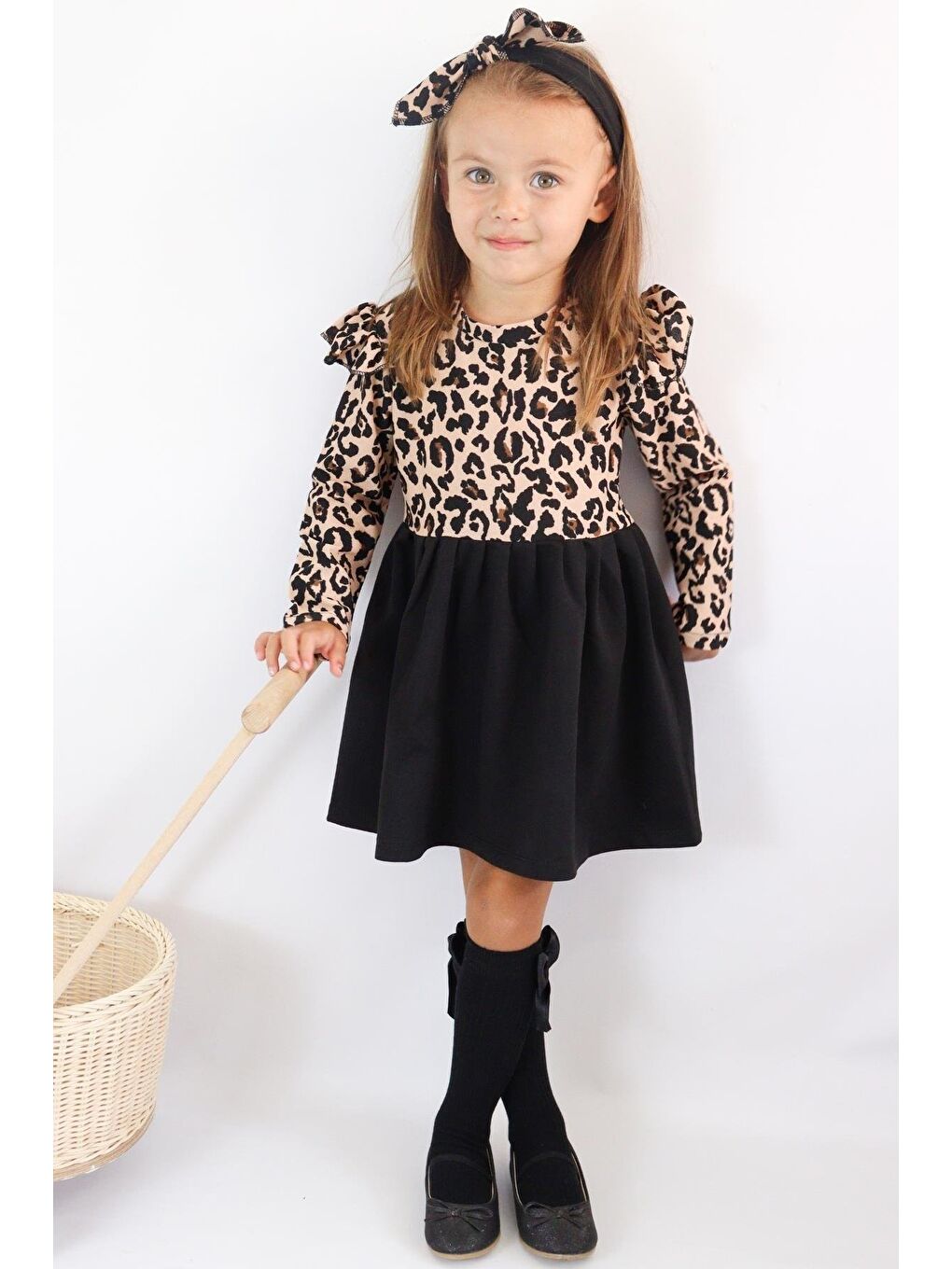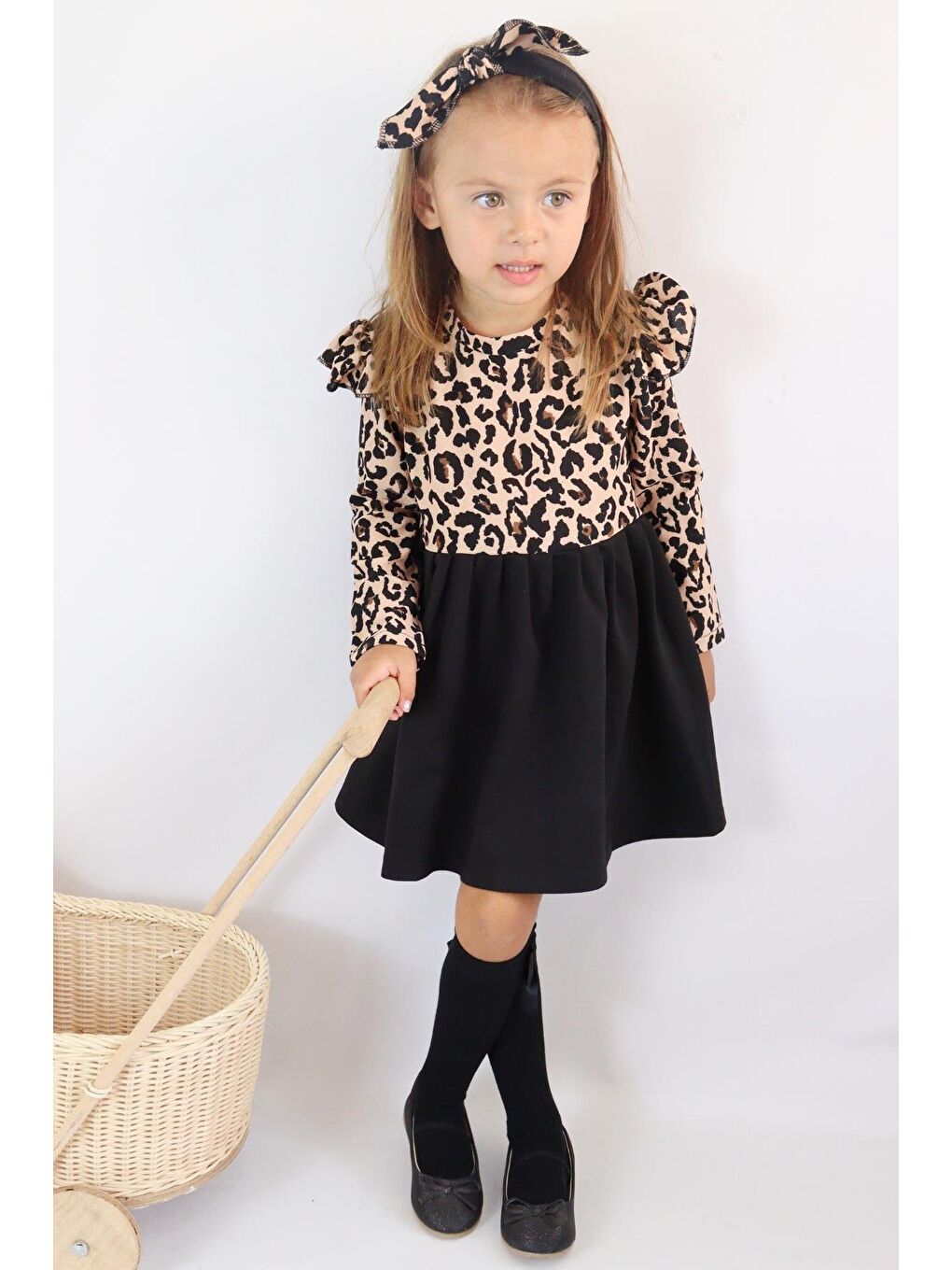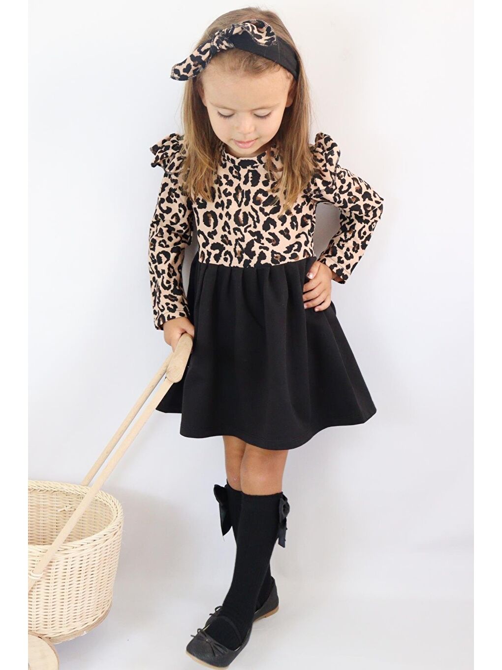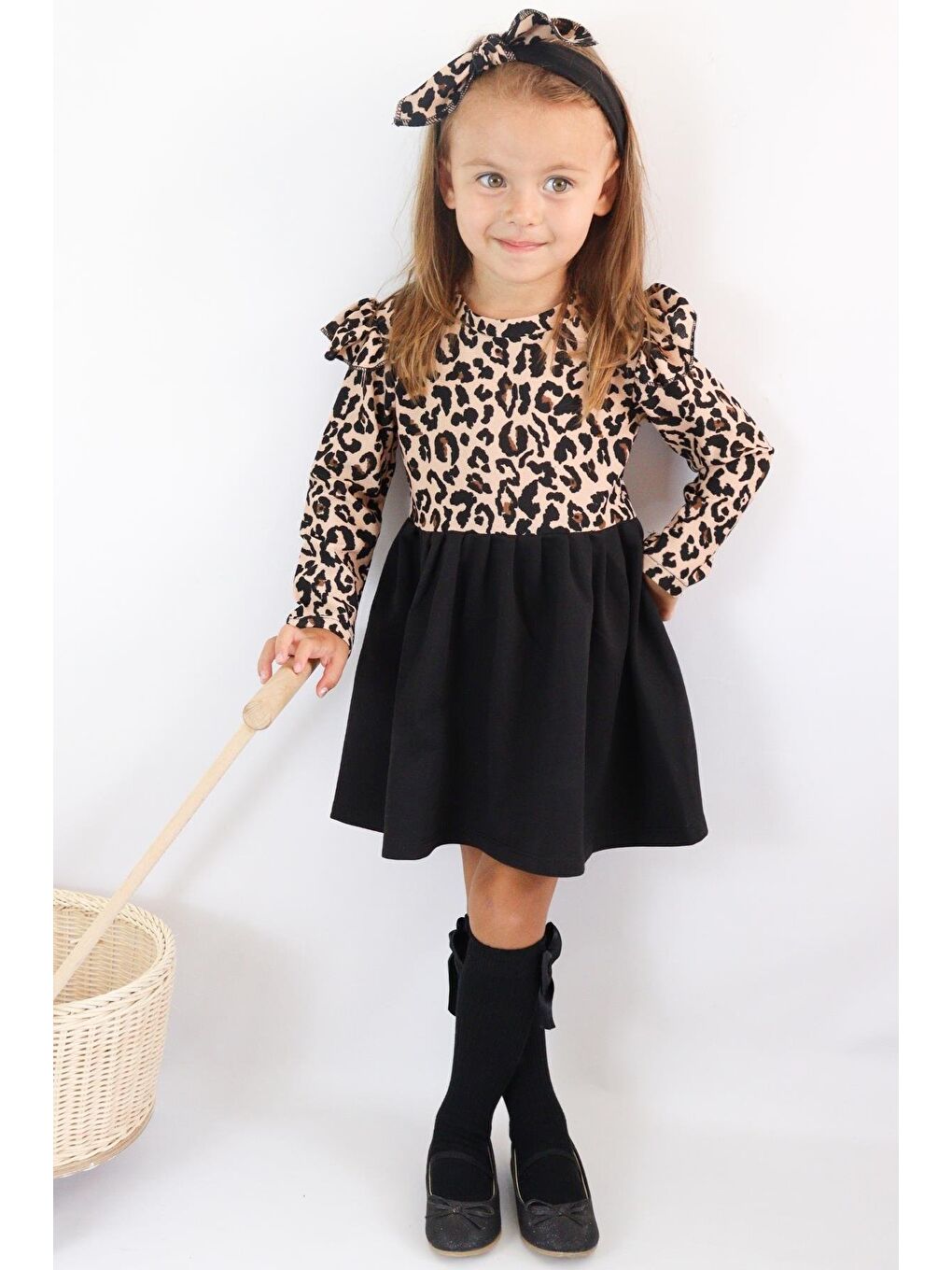 ست لباس دخترانه مشکی طرح پلنگی آستین بلند طرح دار با طرح باندانا