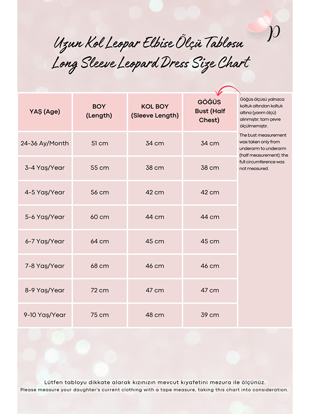 | سایز | 18-24 Ay, 24-36 Ay, 3-4 Yaş, 4-5 Yaş, 5-6 Yaş, 6-7 Yaş, 7-8 Yaş, 8-9 Yaş, 9-10 Yaş |
