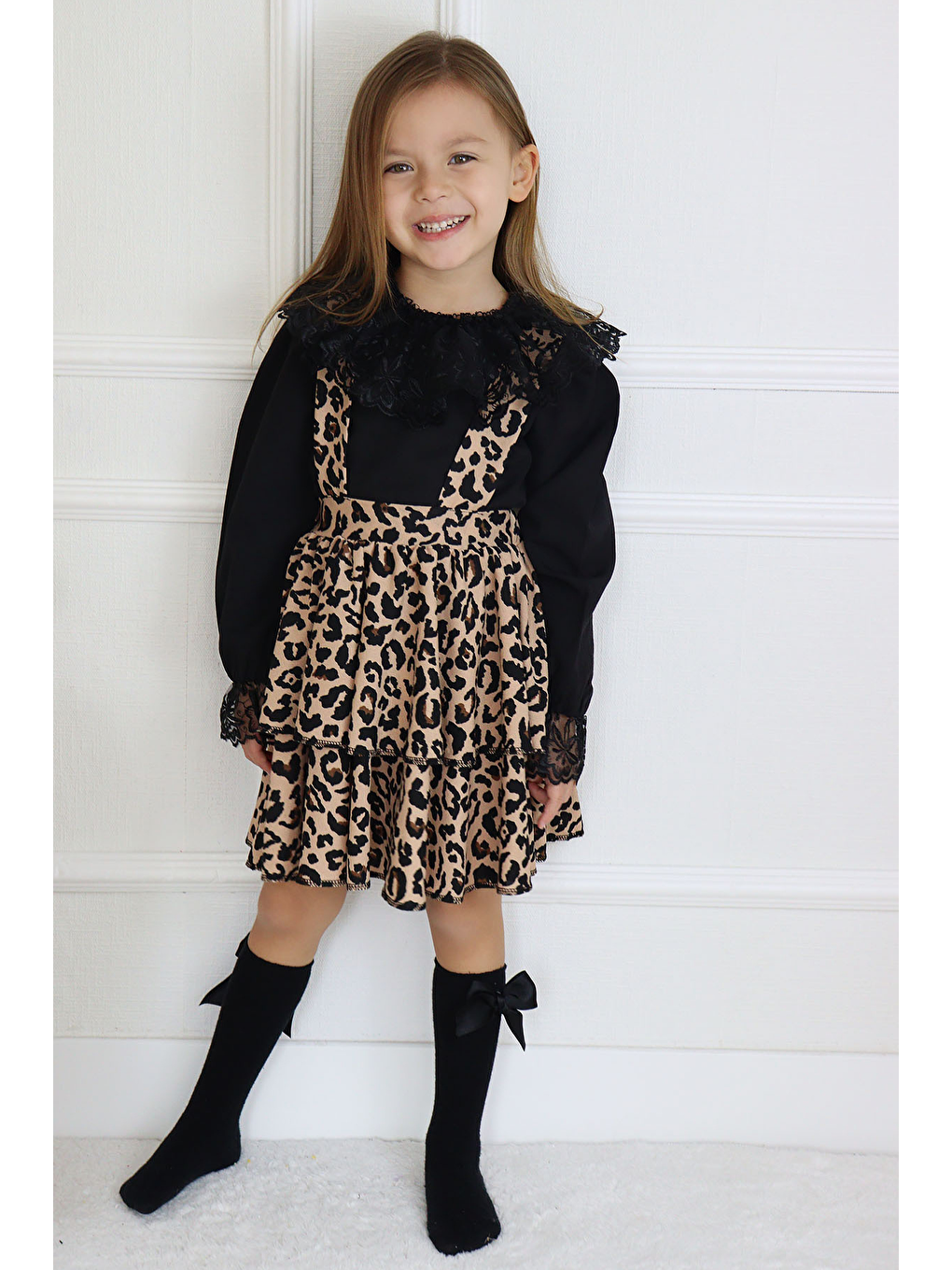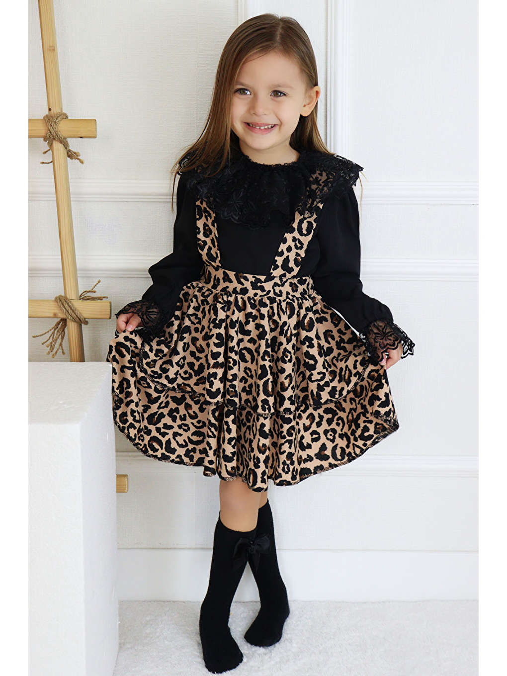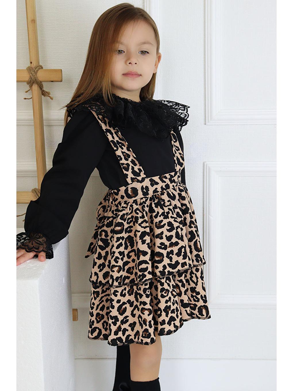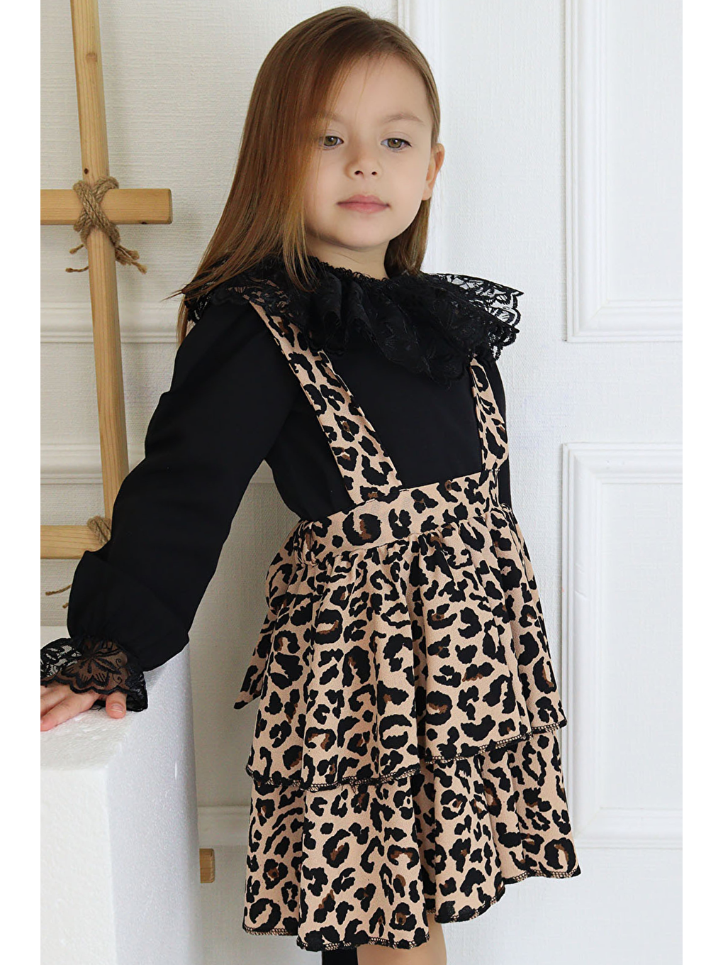 پیراهن دخترانه ترکیبی هلن با بند و جلیقه، مدل پیراهن زنانه ۲۹ اکتبر، بلوز آستین بلند، جزئیات توری، کت و شلوار مجلسی