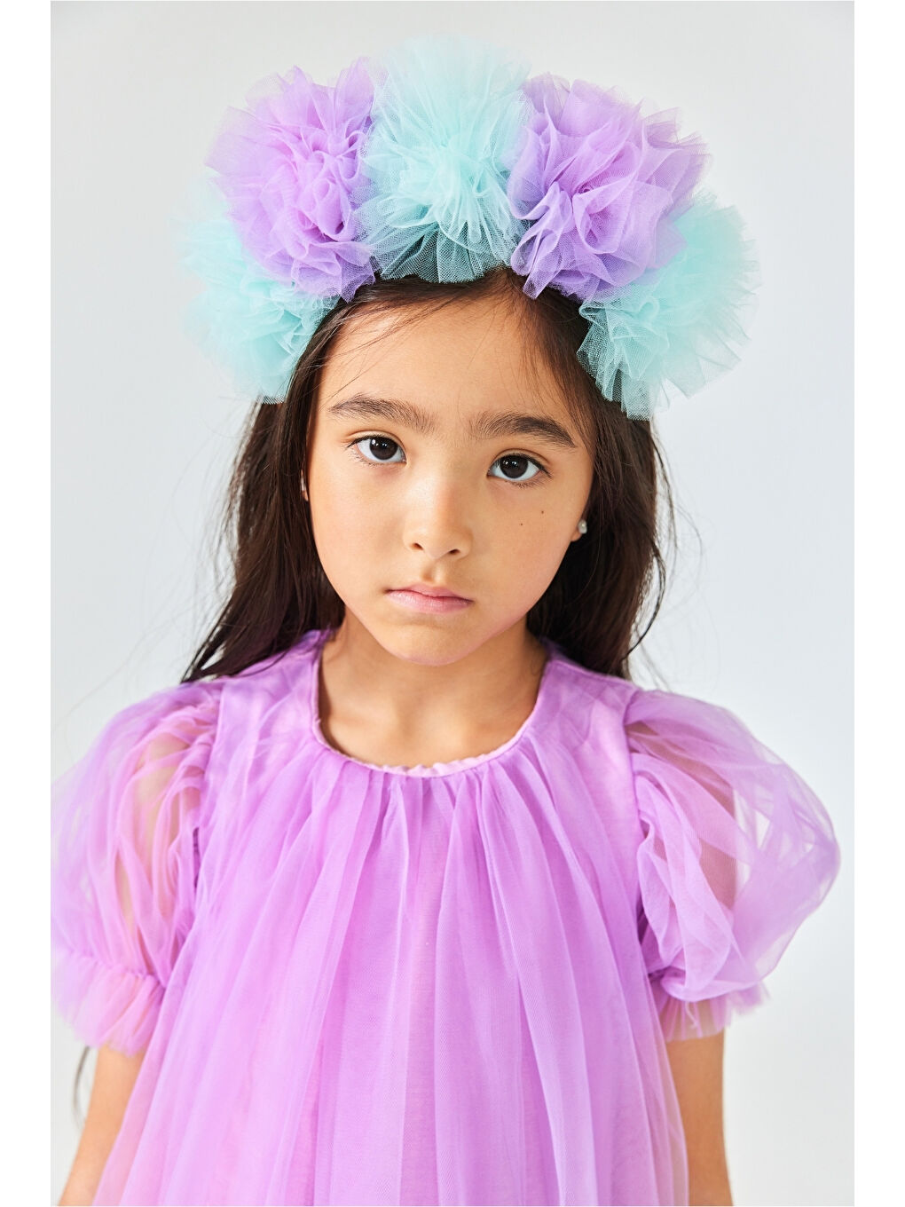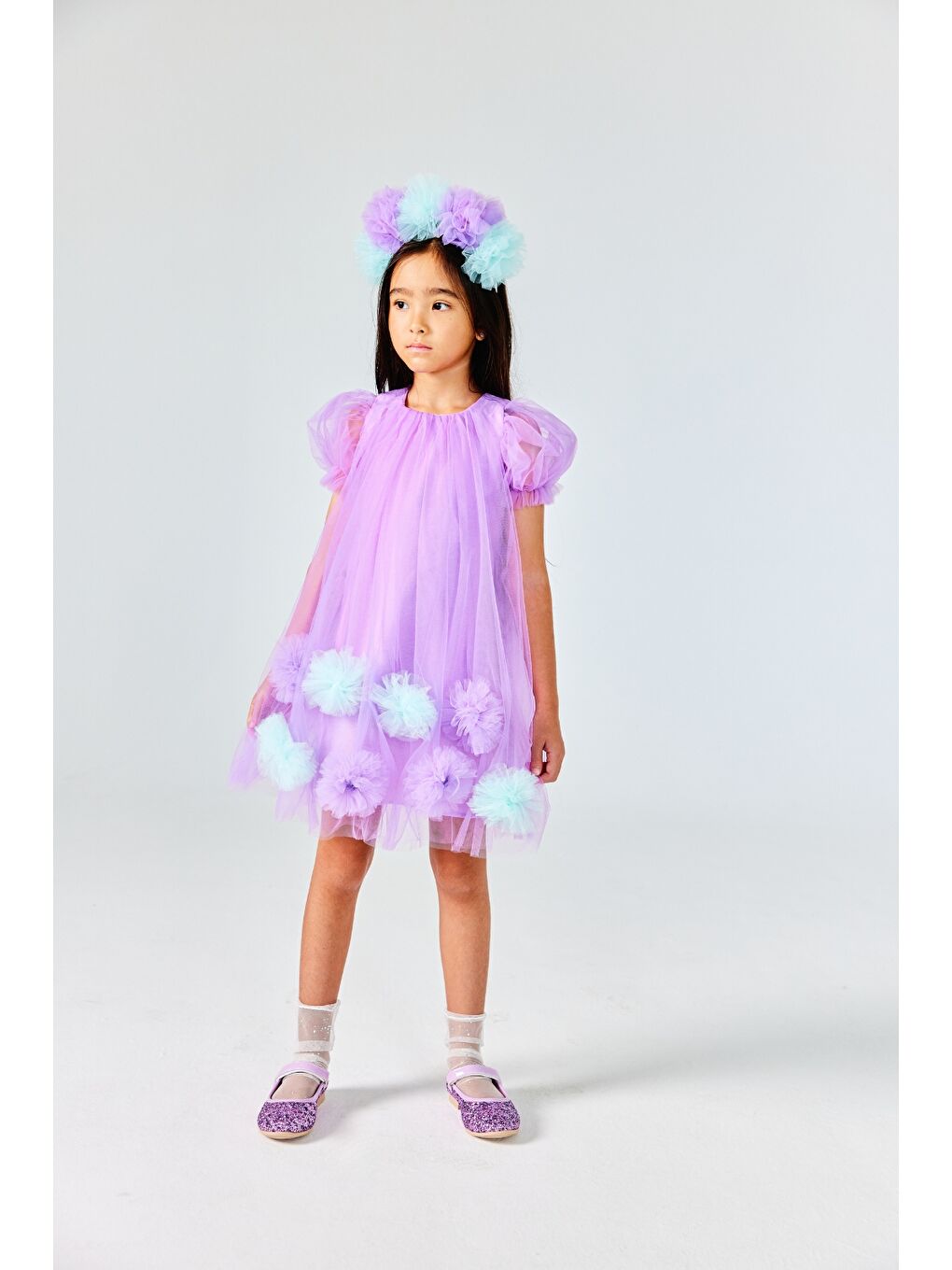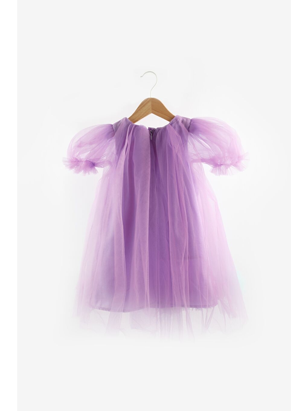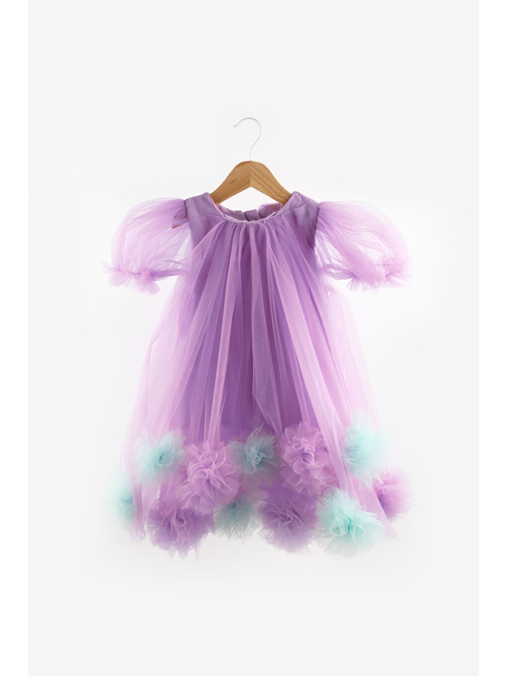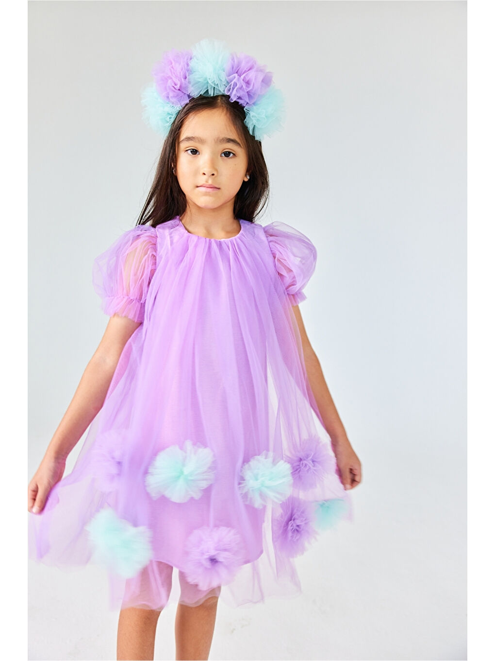لباس دخترانه دامن پومپوم آستین کوتاه یاسی – Lavonne