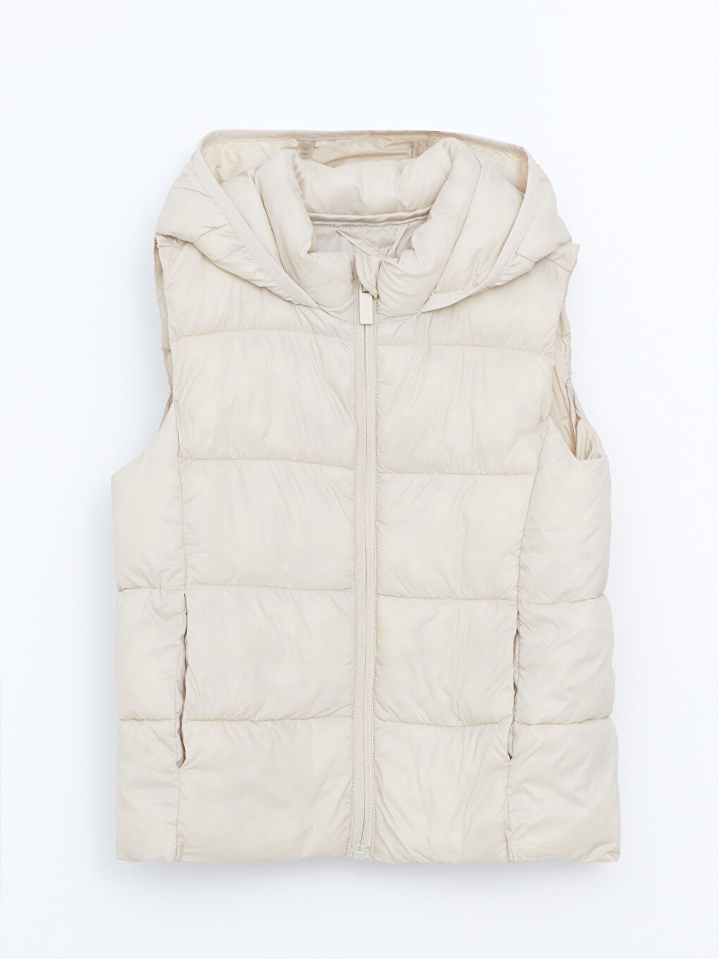 جلیقه پف دار دخترانه کلاهدار اکرو