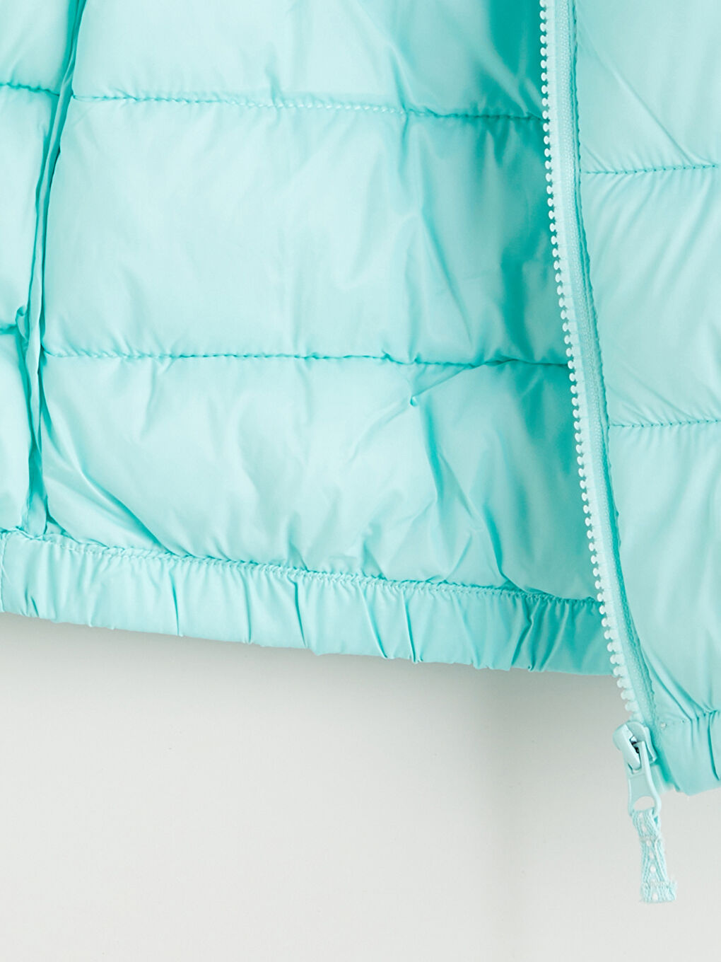 جلیقه پف دار دخترانه یقه ایستاده فیروزه ای