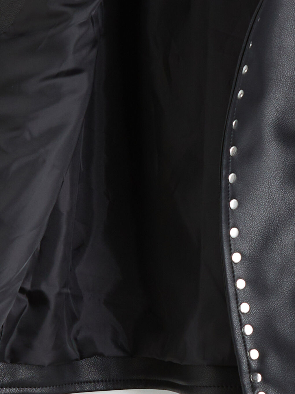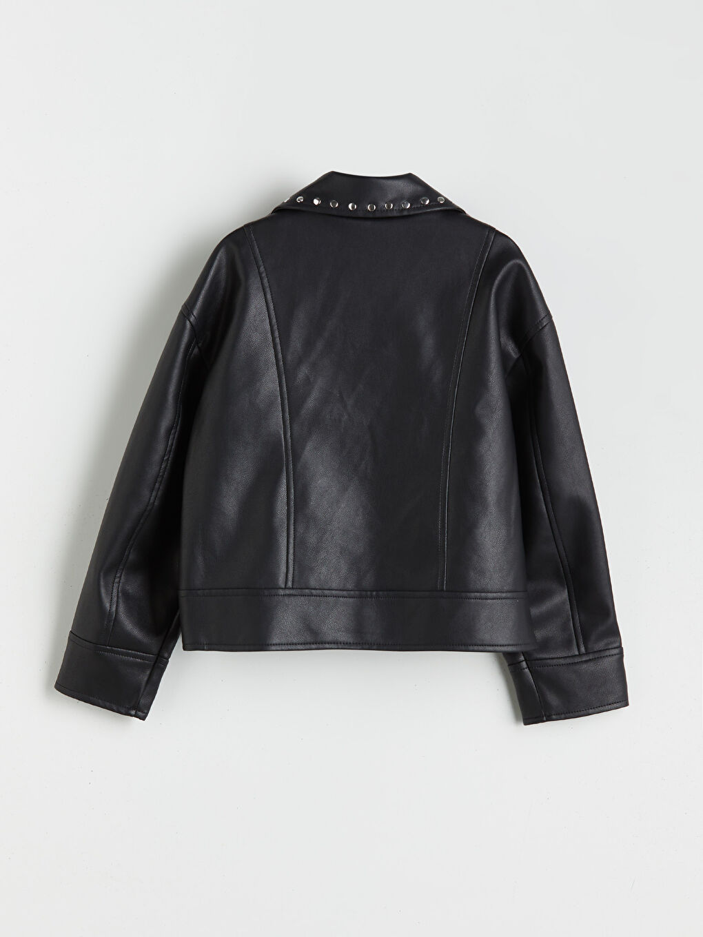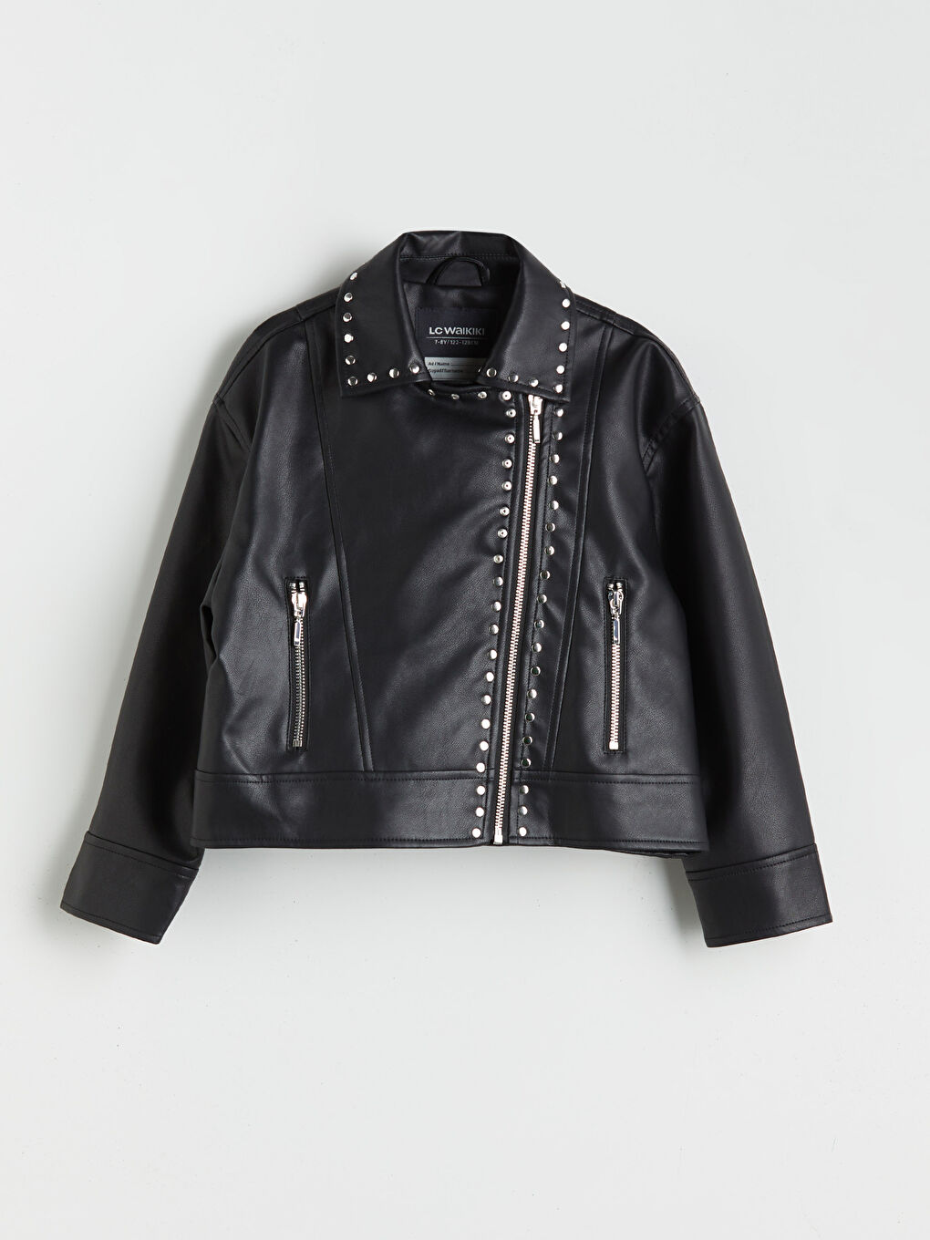 مانتو دخترانه با ظاهر چرم با جزئیات میخ فلزی. بسته شدن زیپ مورب.