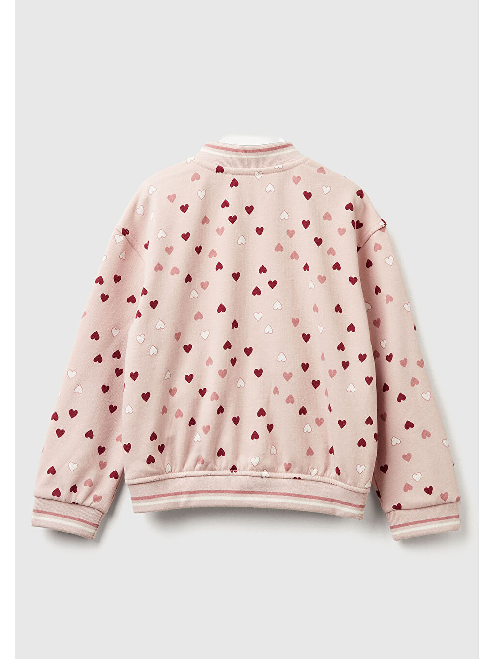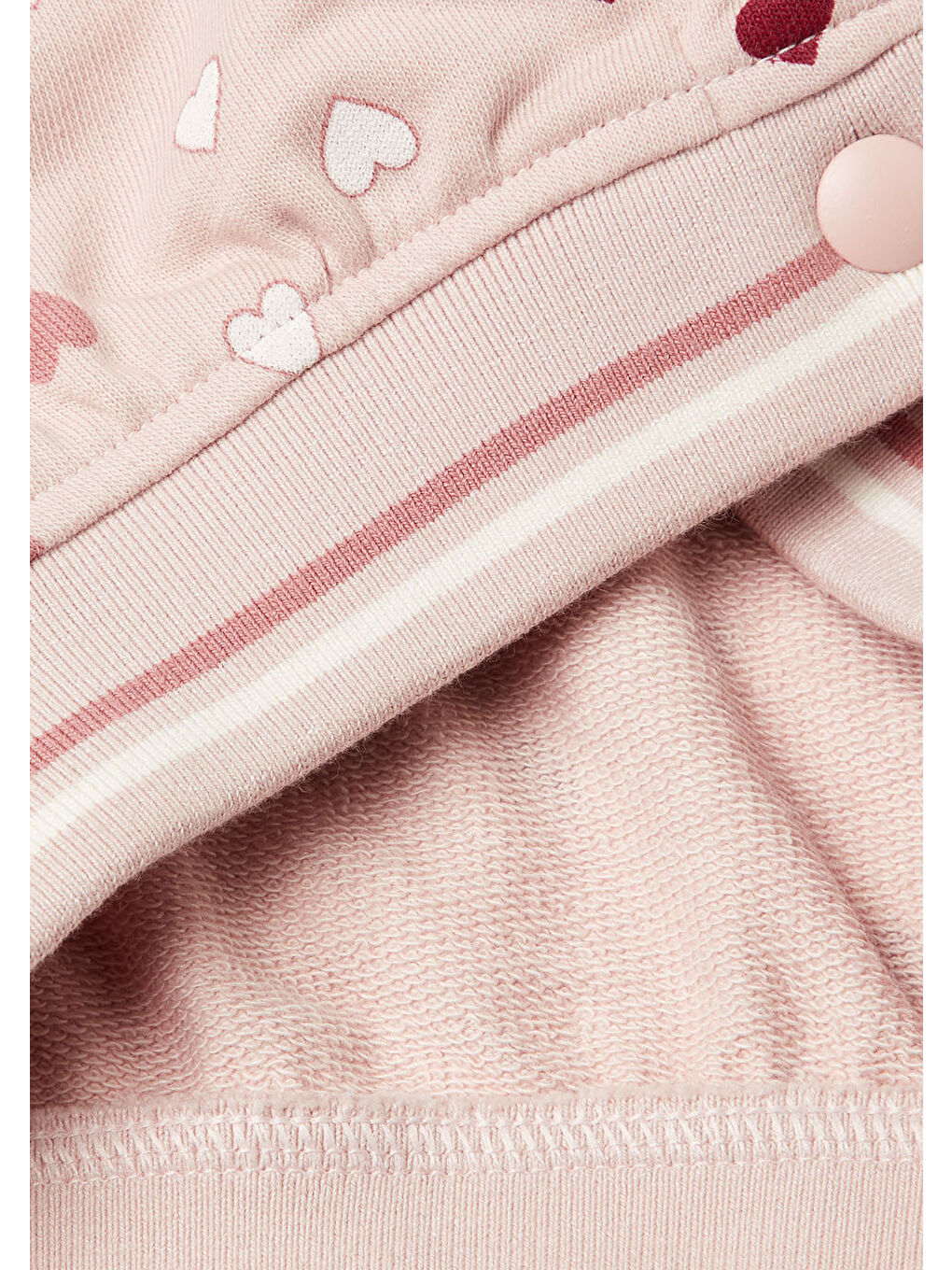 کاپشن دخترانه طرح‌دار صورتی خاکی، جلو دوخته شده با تکه‌دوزی، طرح راه‌راه، جزئیات زیاد