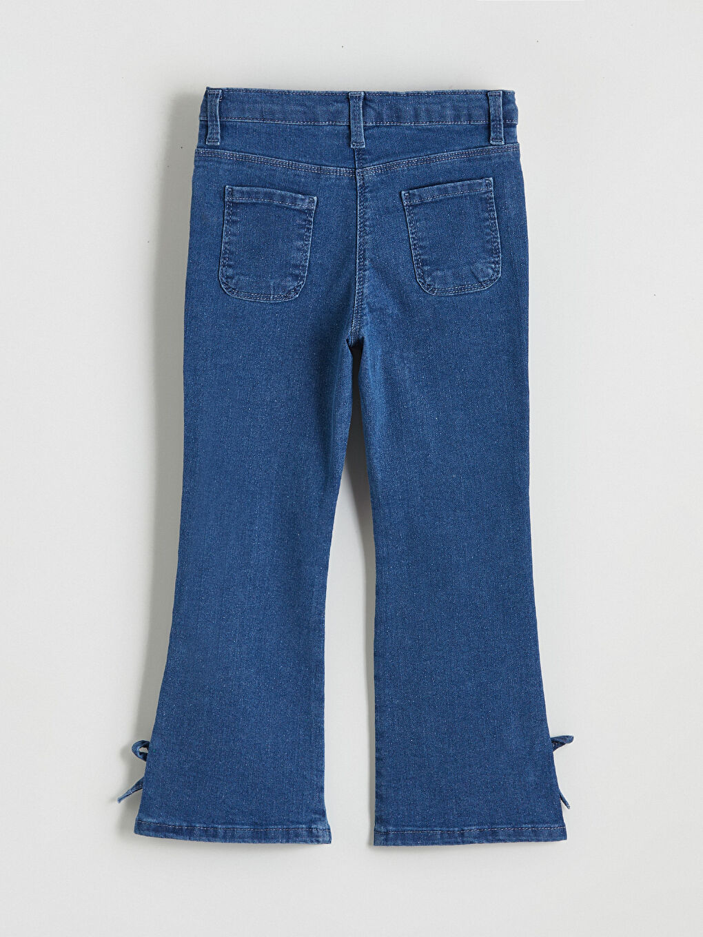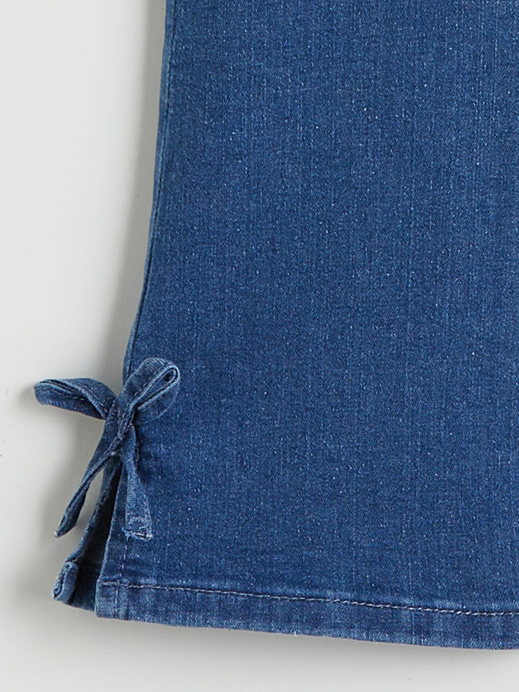 شلوار جین دخترانه آبی دمپا گشاد با پاپیون