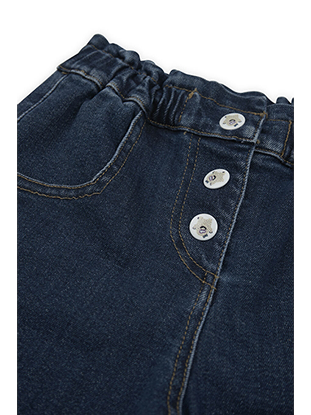 شلوار جین جزییات اسنپ دخترانه آبی سرمه ای