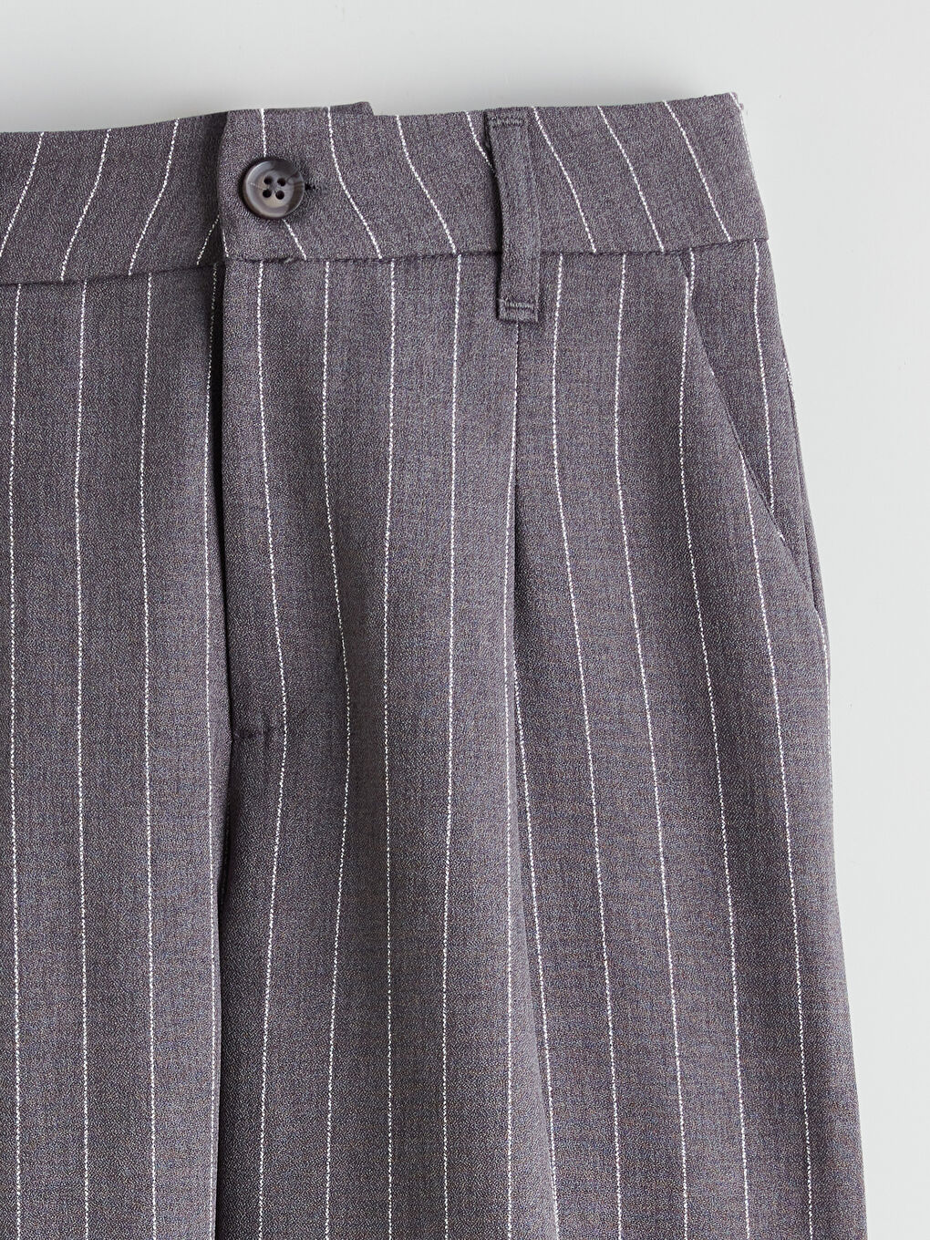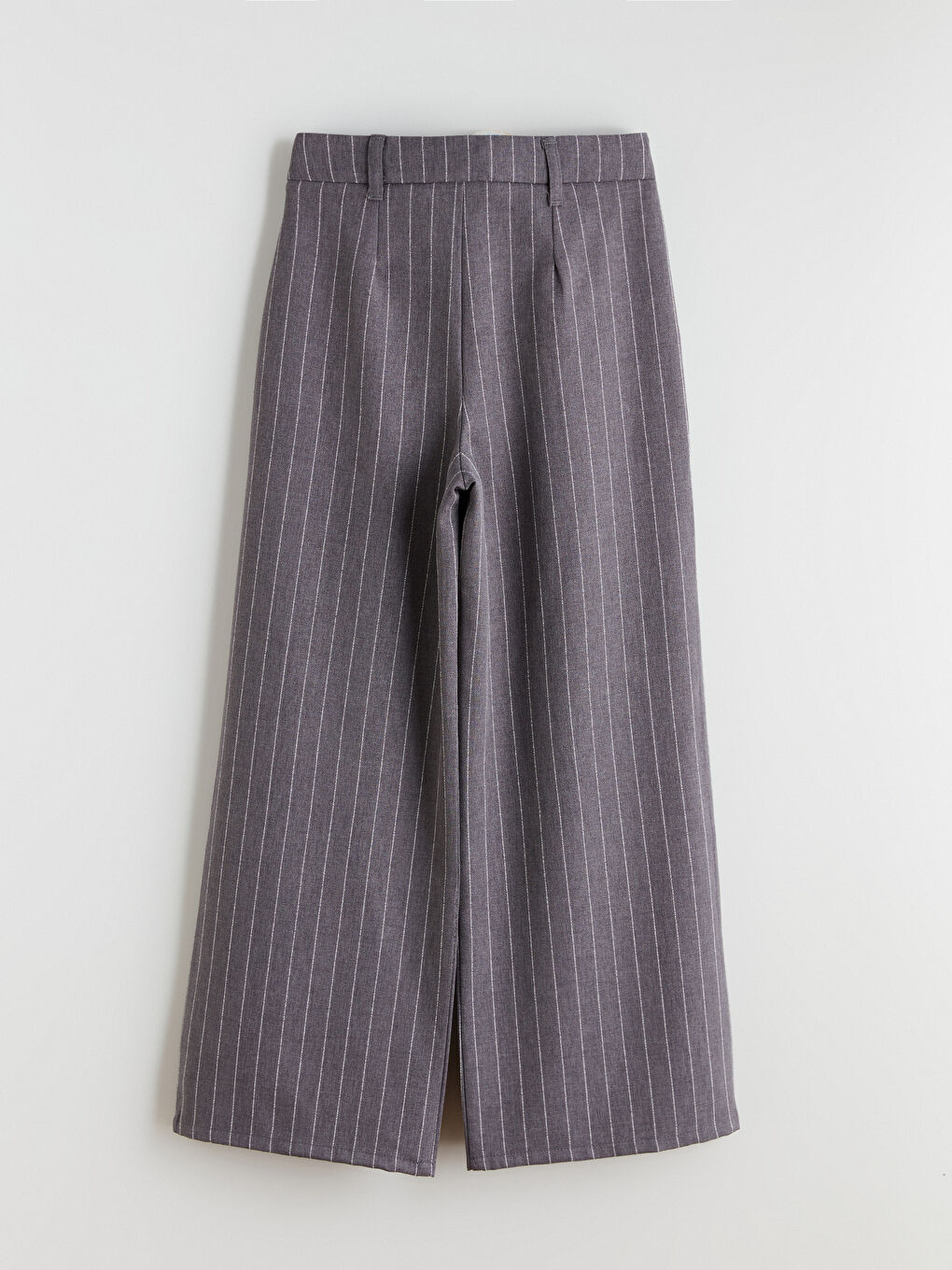 شلوار دخترانه گشاد با طرح راه راه. پلیسه های جلو، جیب، دکمه و زیپ بسته می شود.