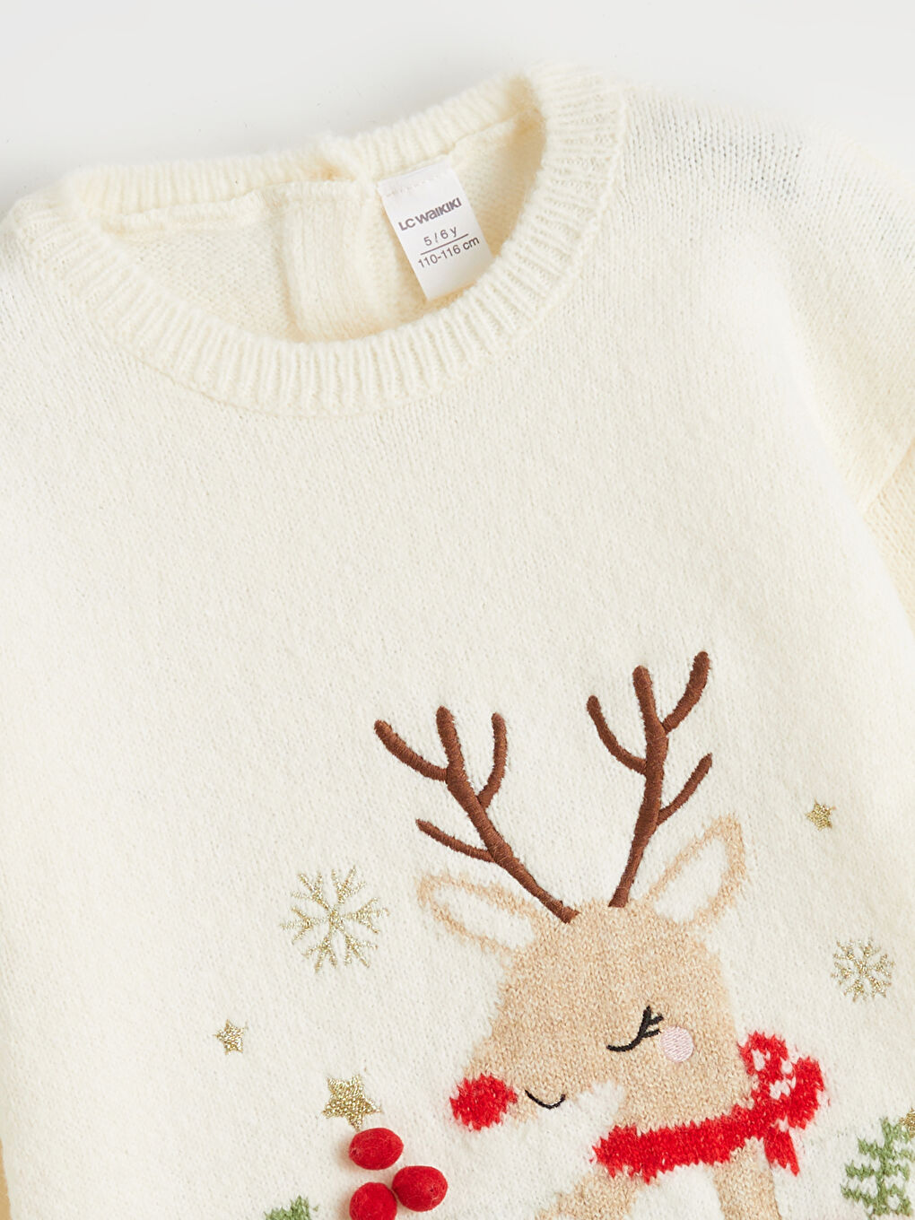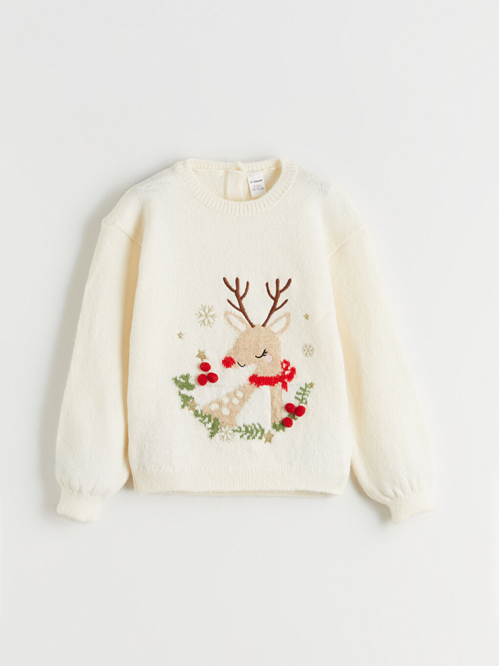 ژاکت و شلوار بافتنی دخترانه با تم سال نو Ecru