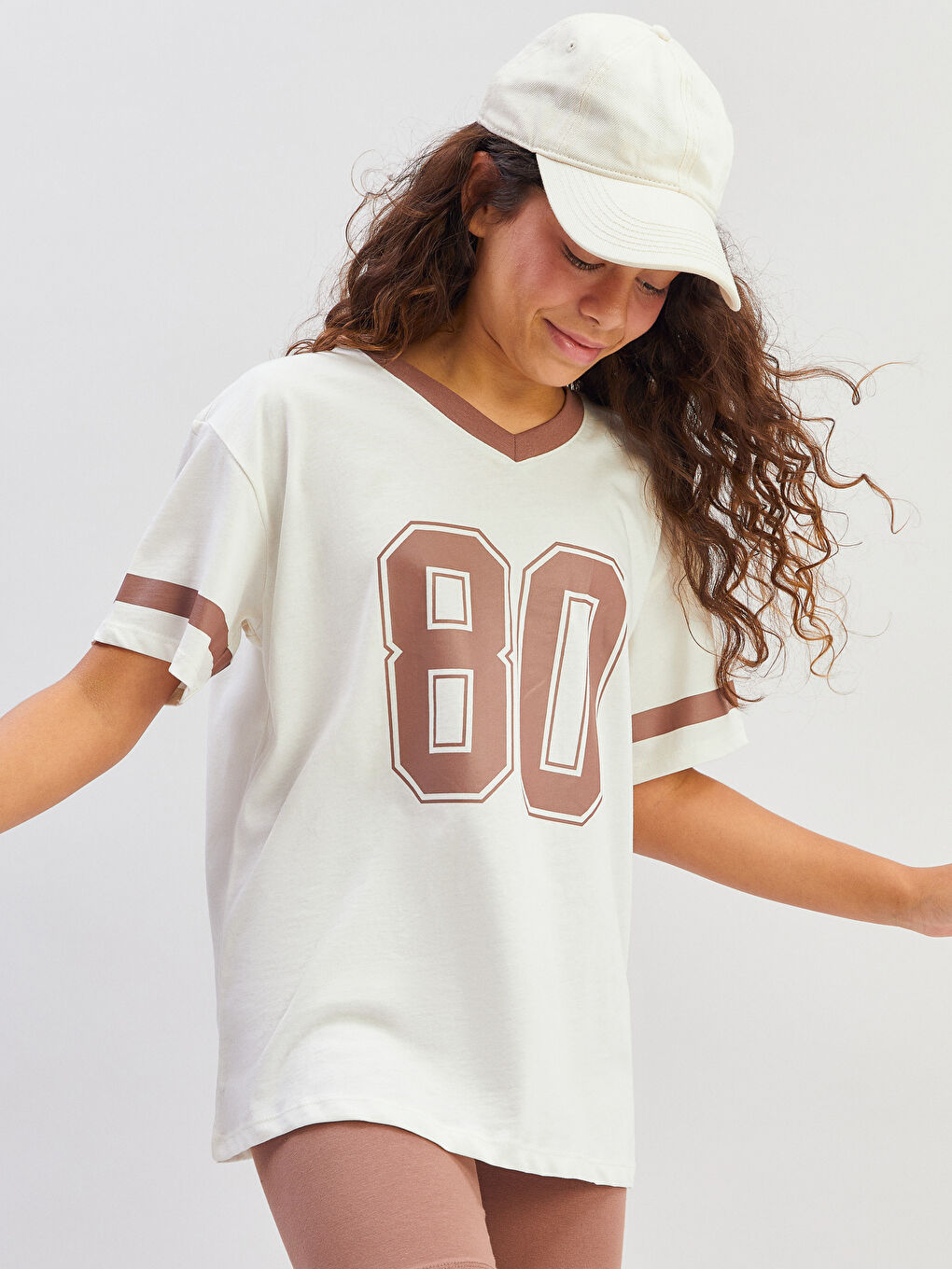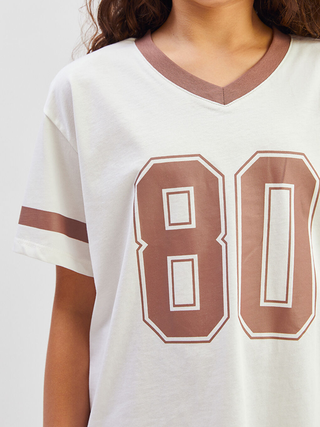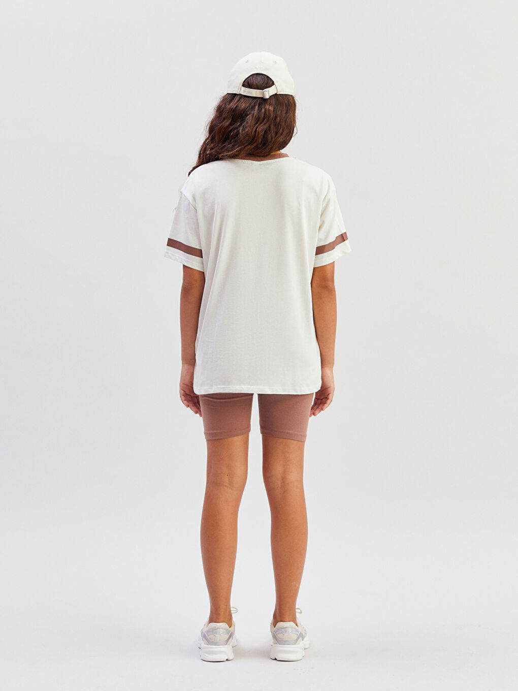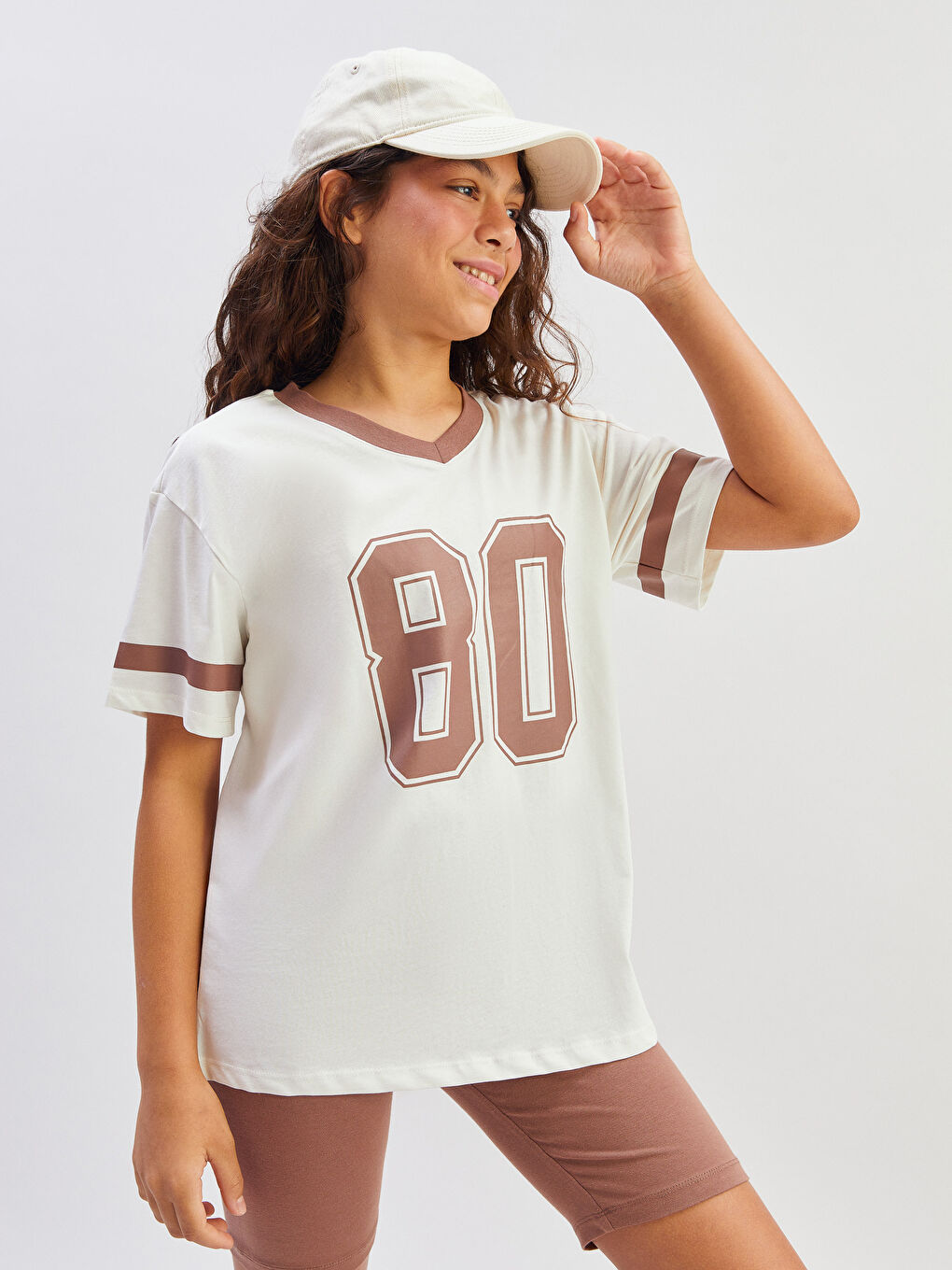 تی شرت و جوراب شلواری دخترانه یقه V-Ecru