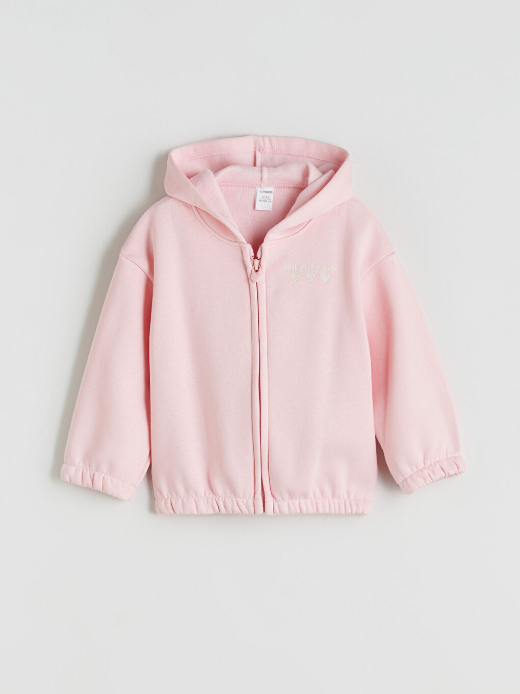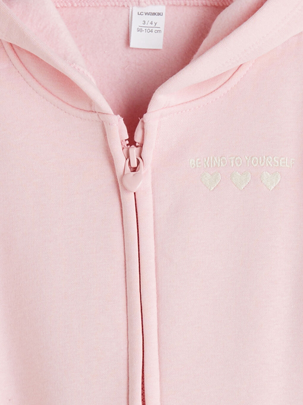 کت و شلوار دخترانه 3 نخی با محتوای نخی بالا، شامل یک سویشرت سرپوش دار، زیپ دار، شلوار گرمکن و یک تی شرت آستین بلند با طرح قلب است.