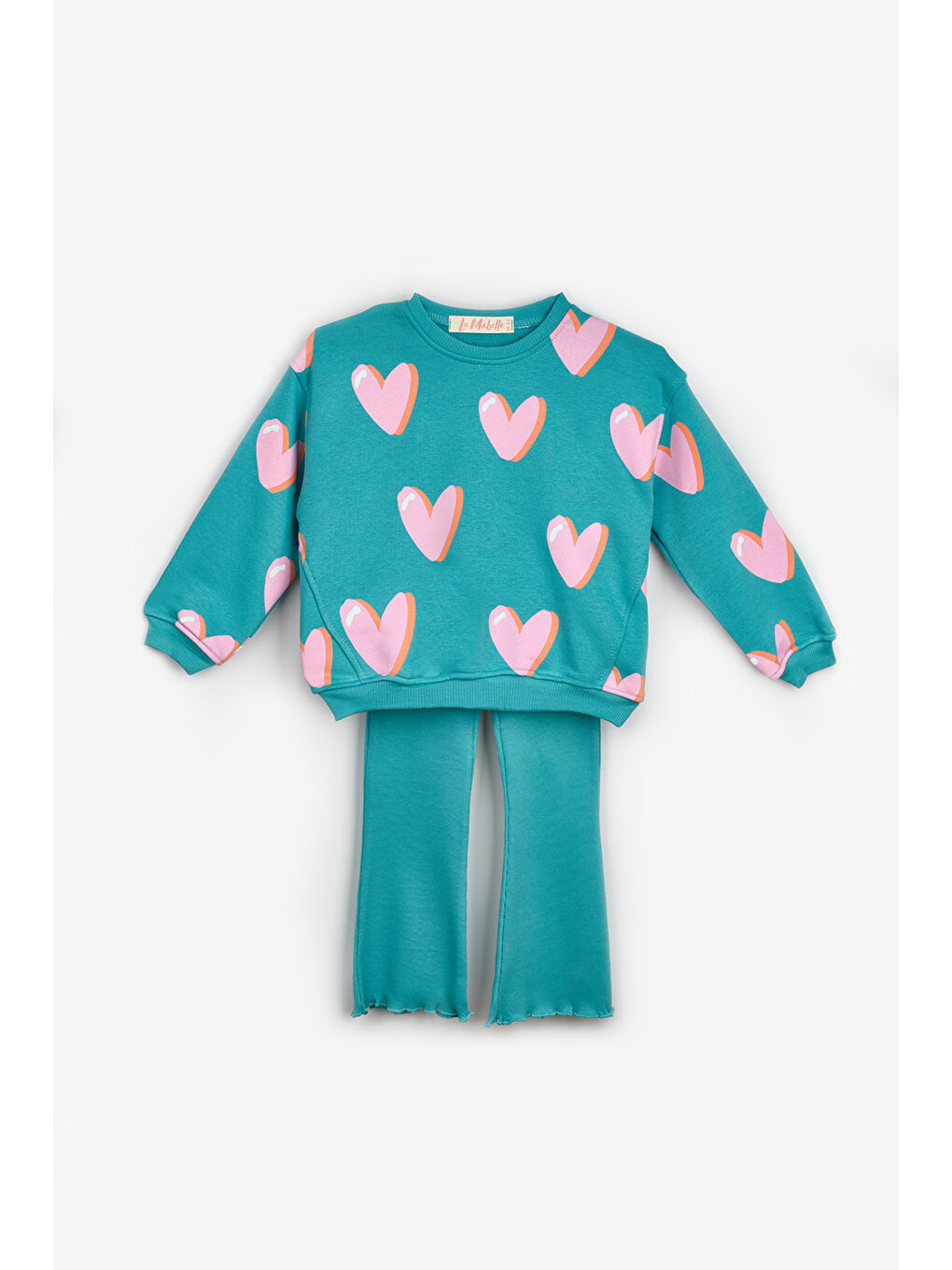 لباس ورزشی دخترانه با چاپ قلب نعناع سبز – بانی