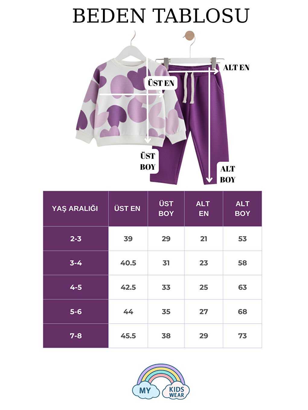ست گرمکن دخترانه بنفش طرح قلب، سایز ۲ تا ۸ سال، کد ۱۲۲۲۷