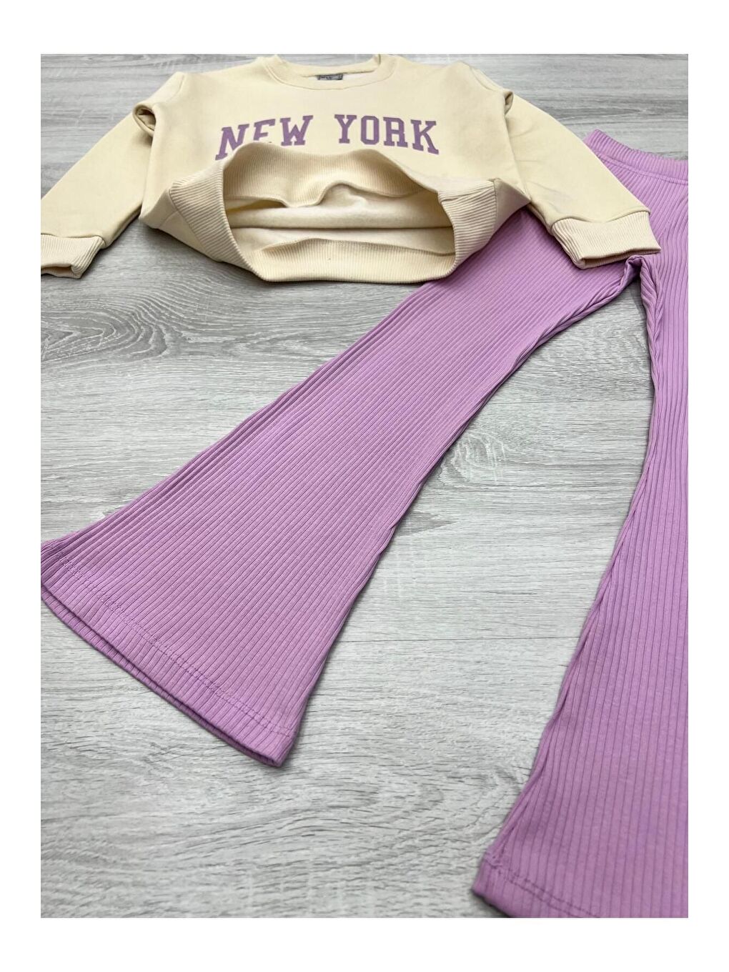 شلوار اسپانیولی کودک دو تکه یاسی و ژاکت چاپی