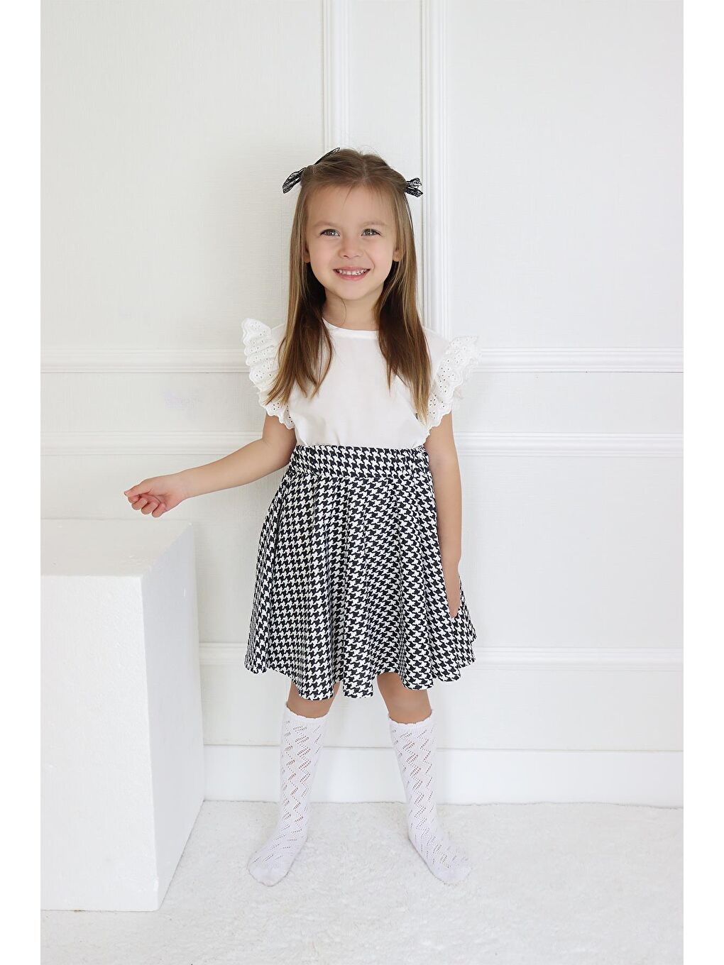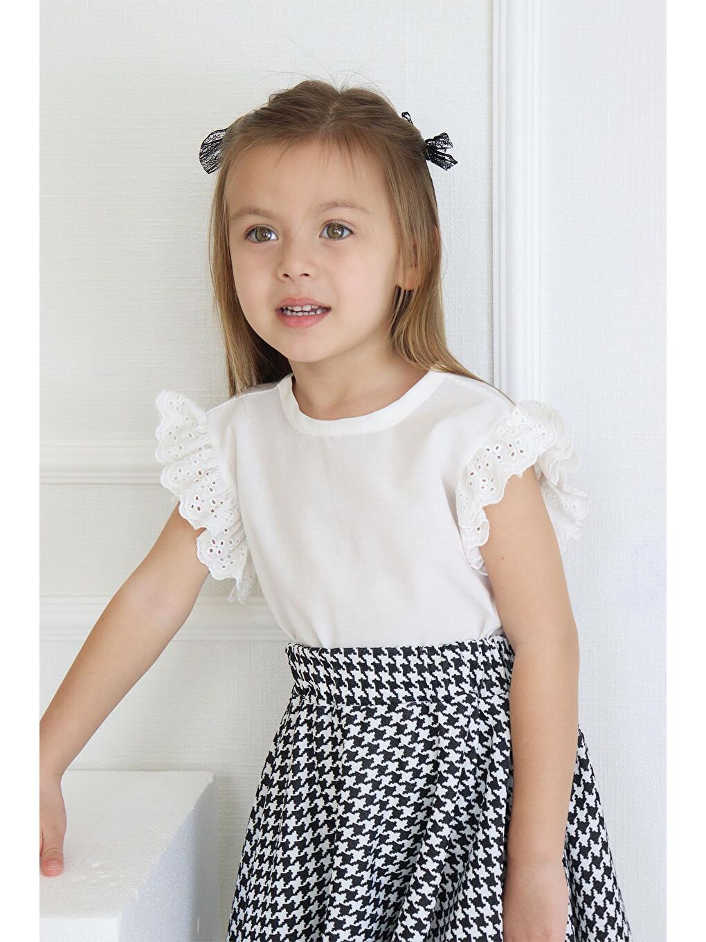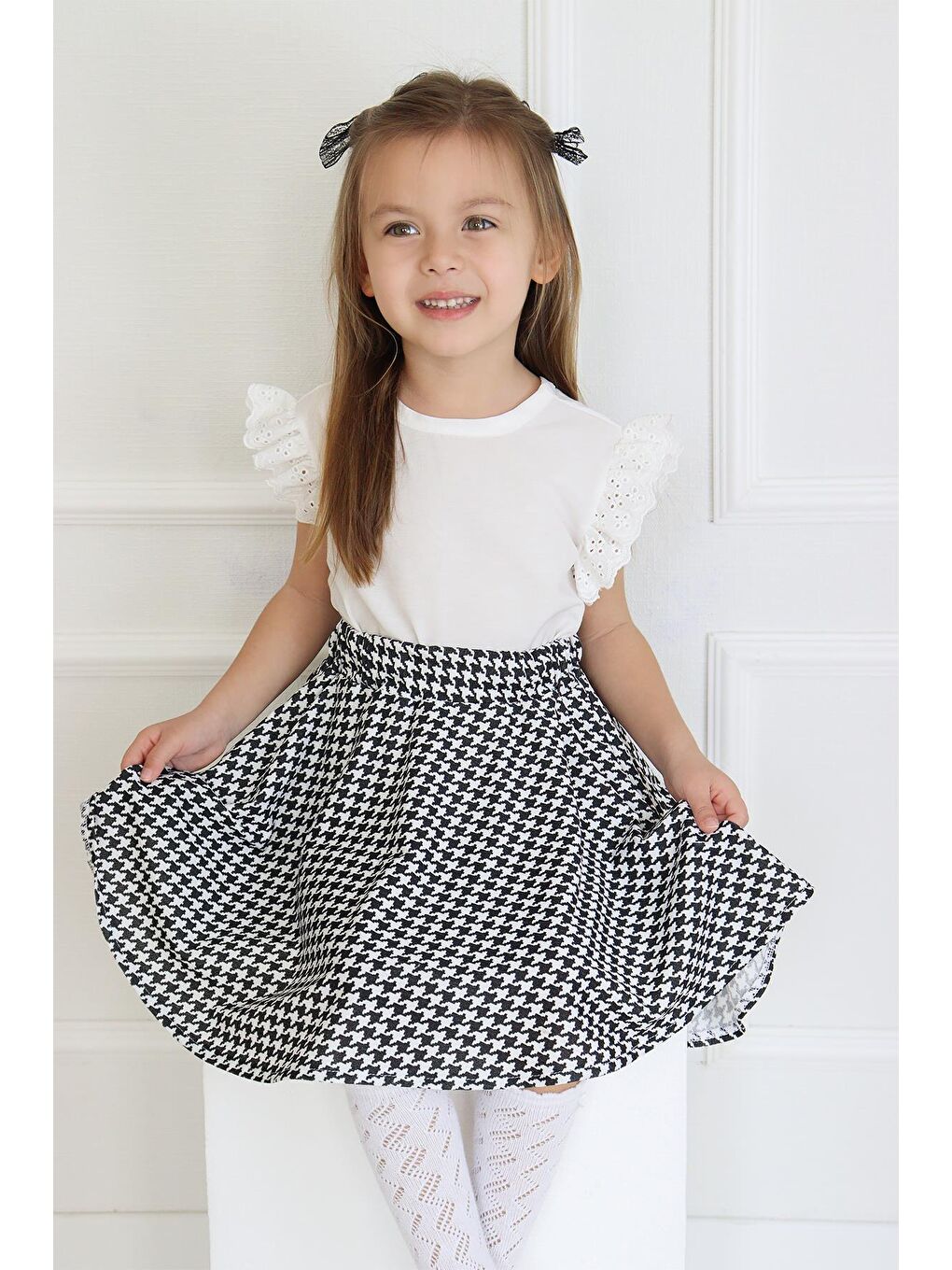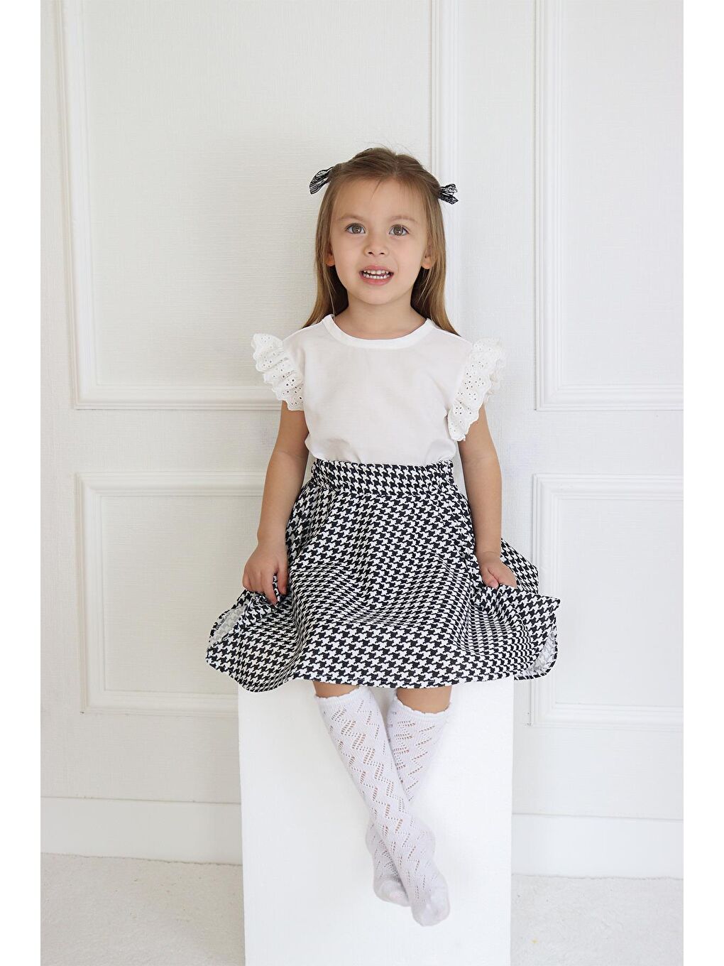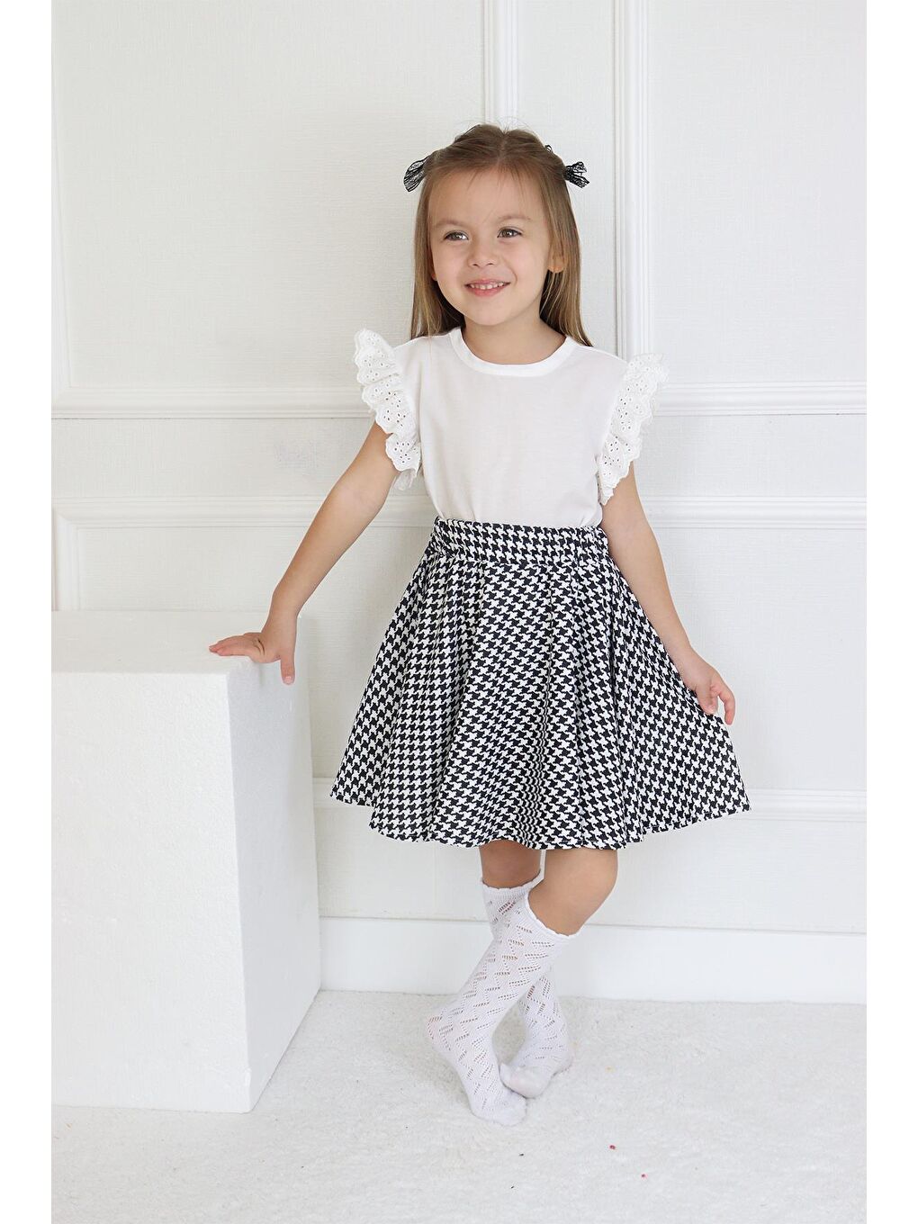 ست دامن و بلوز آستین کوتاه دخترانه کایل مدل سگکدار