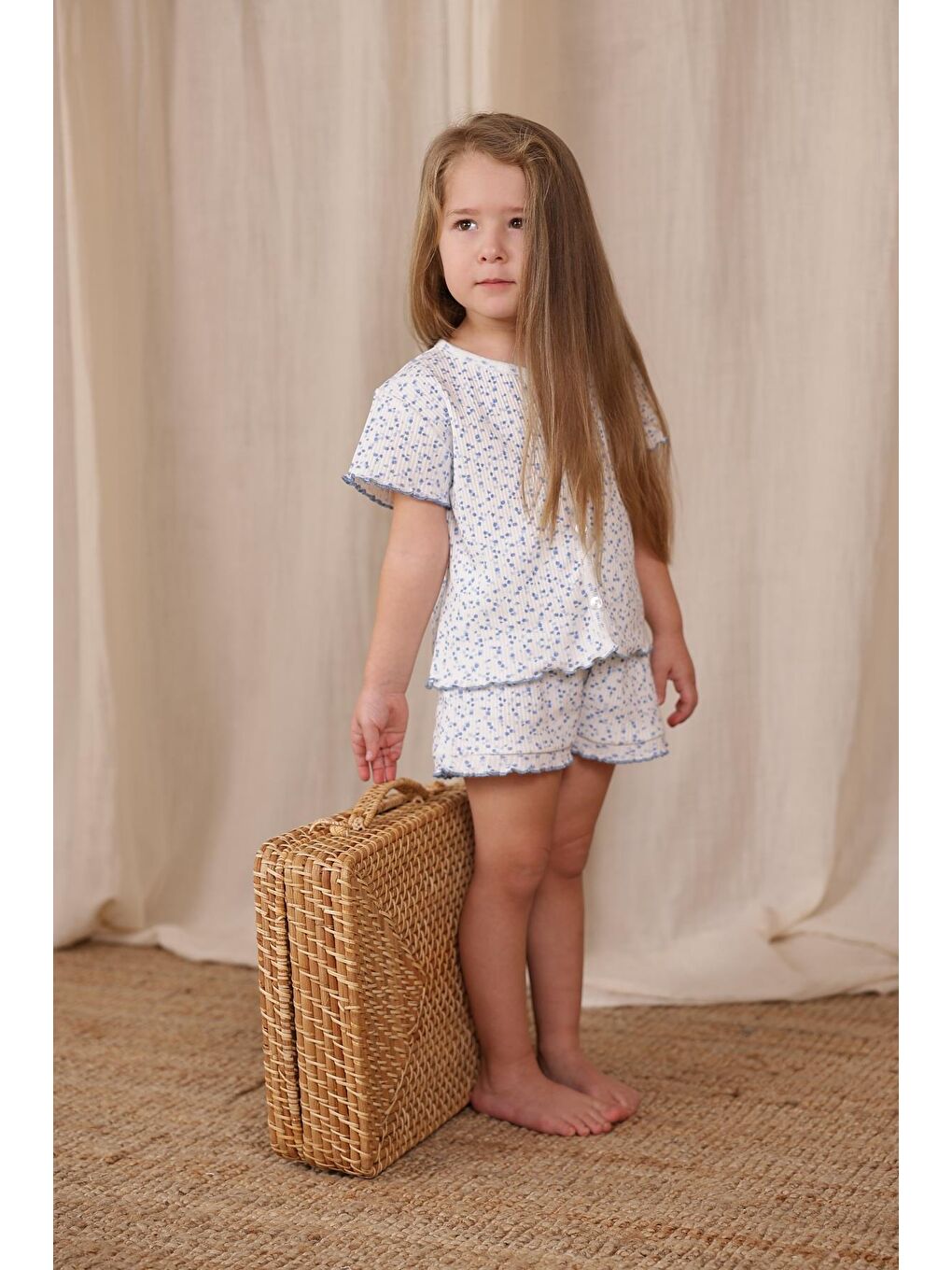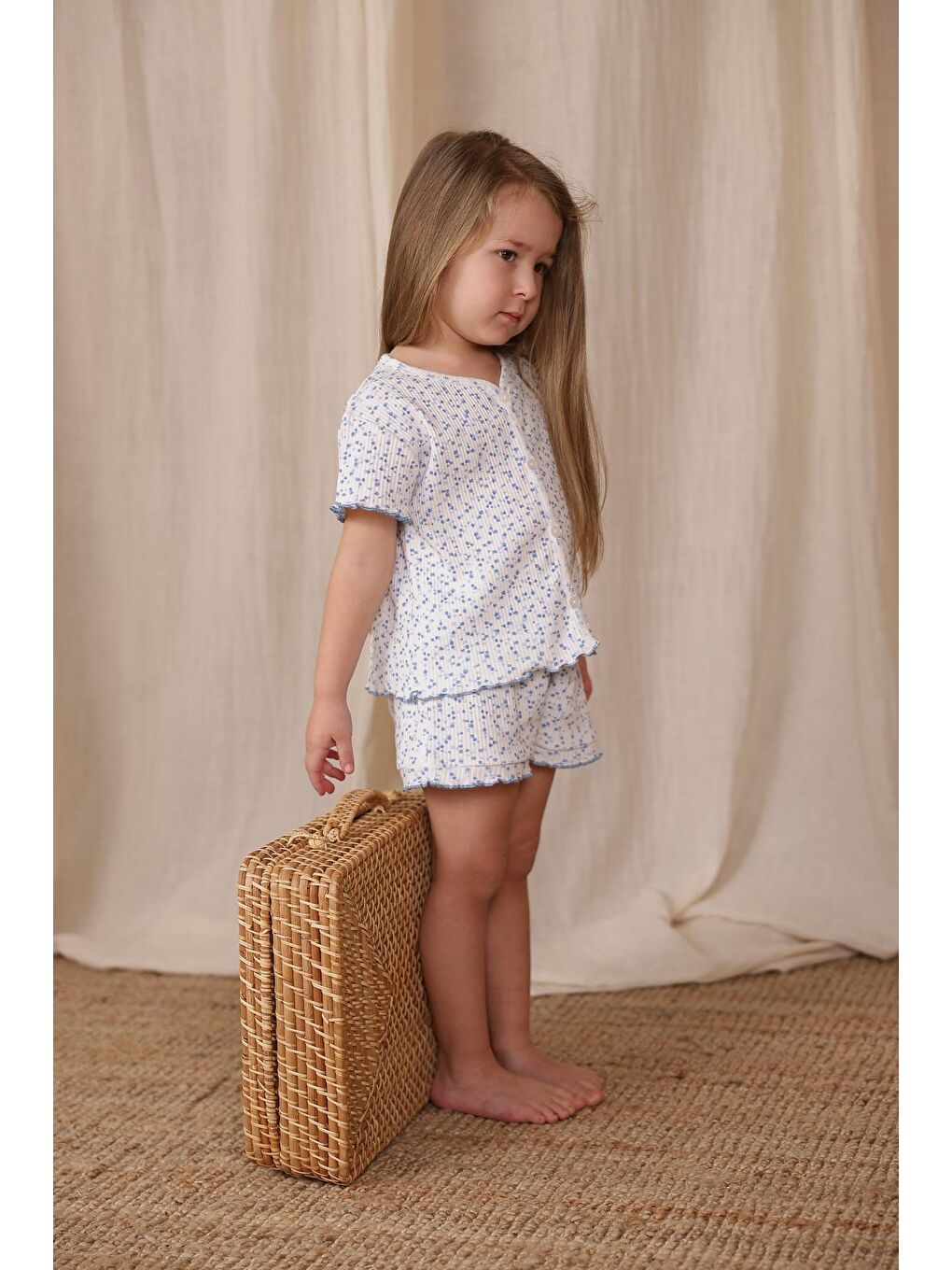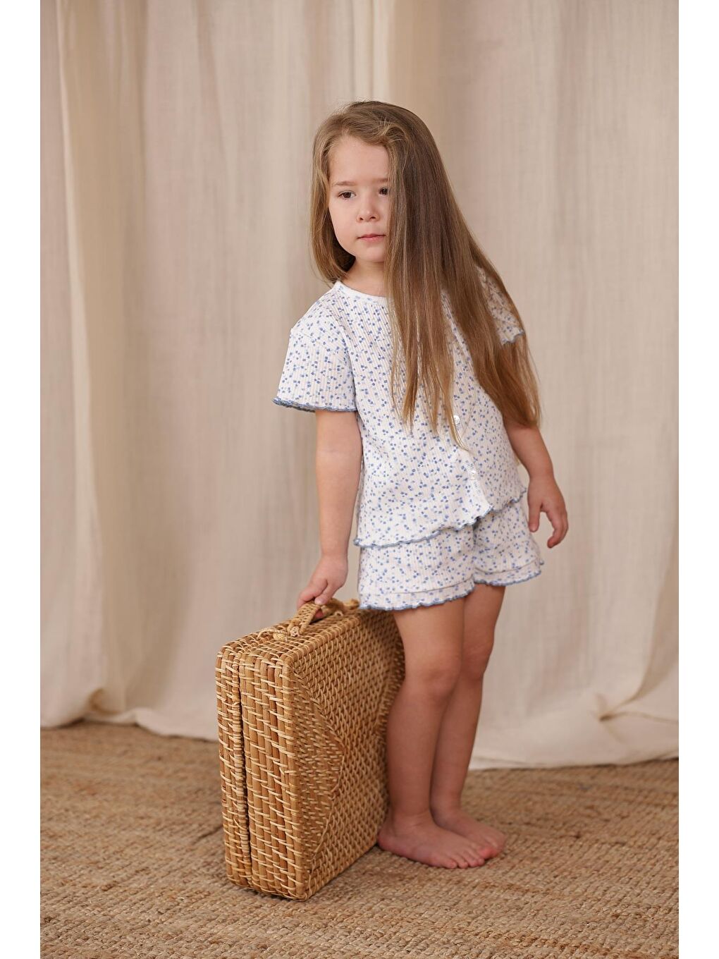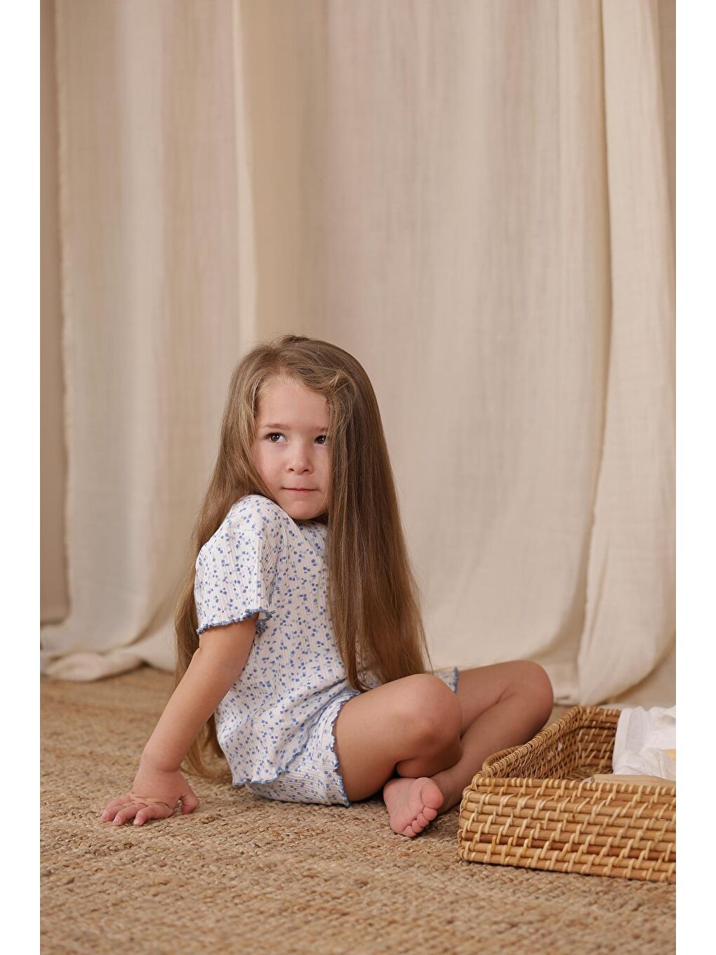 ست شلوارک دخترانه با چاپ گل آبی بژ