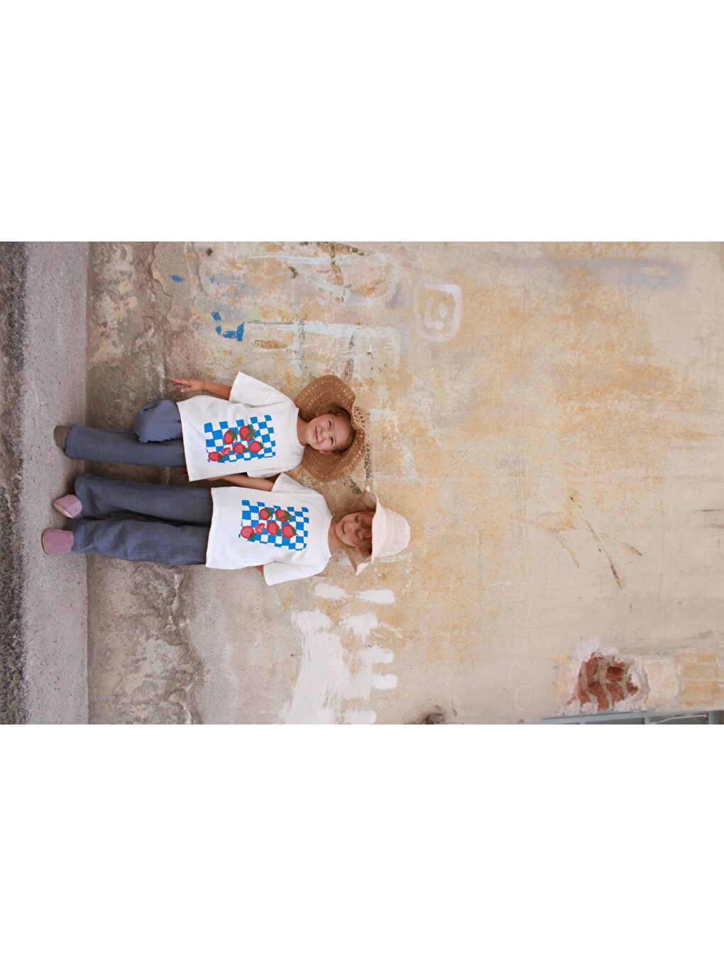 ست شلوار موسلین تی شرت چاپ گوجه ای بژ