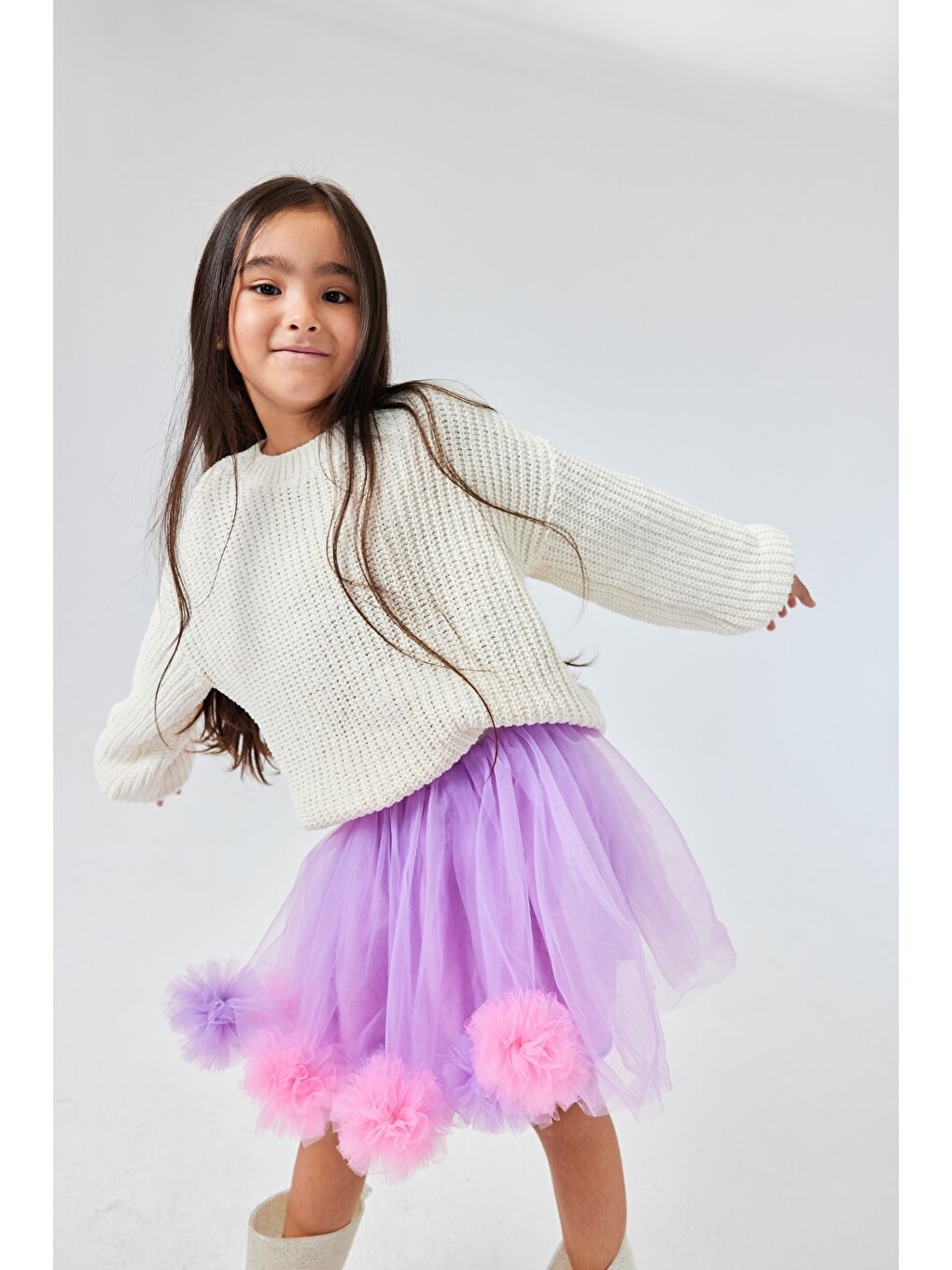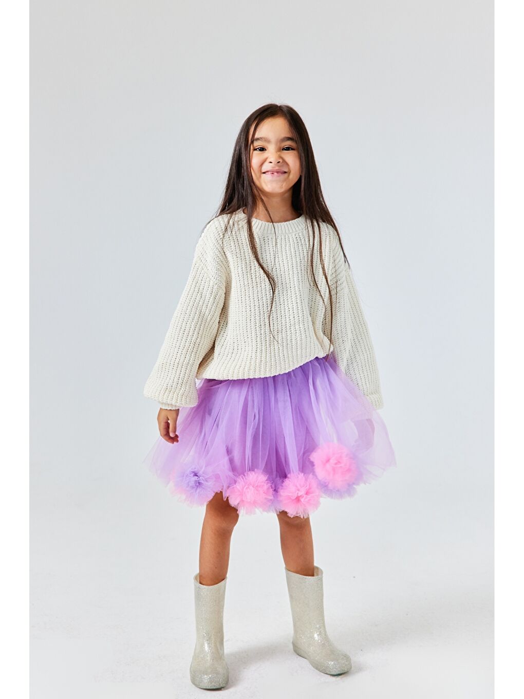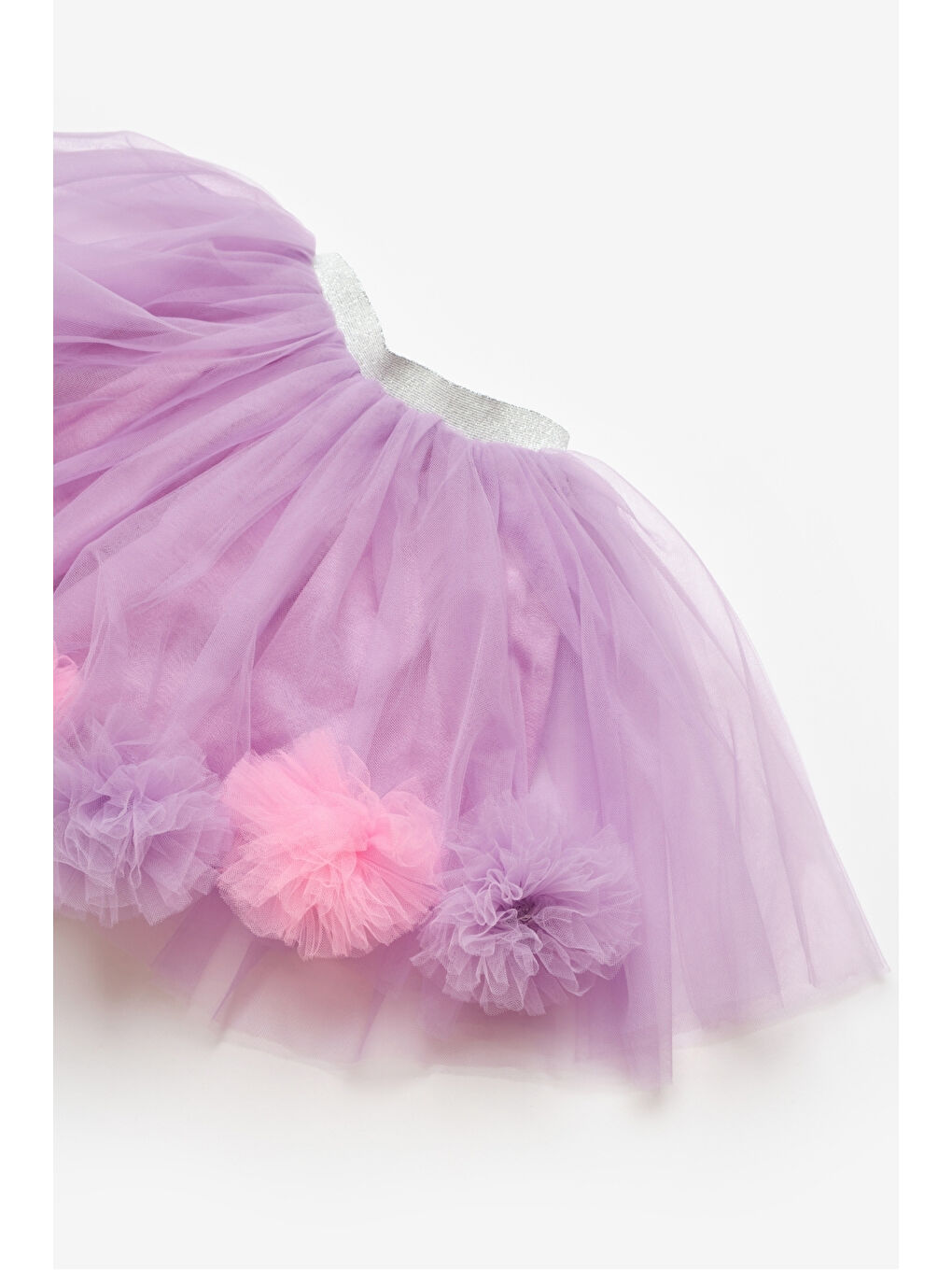 دامن دخترانه با جزئیات پومپوم یاسی – هیلدا
