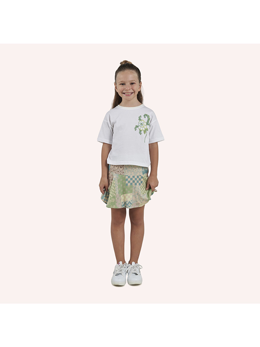دامن طرح دار دخترانه بژ