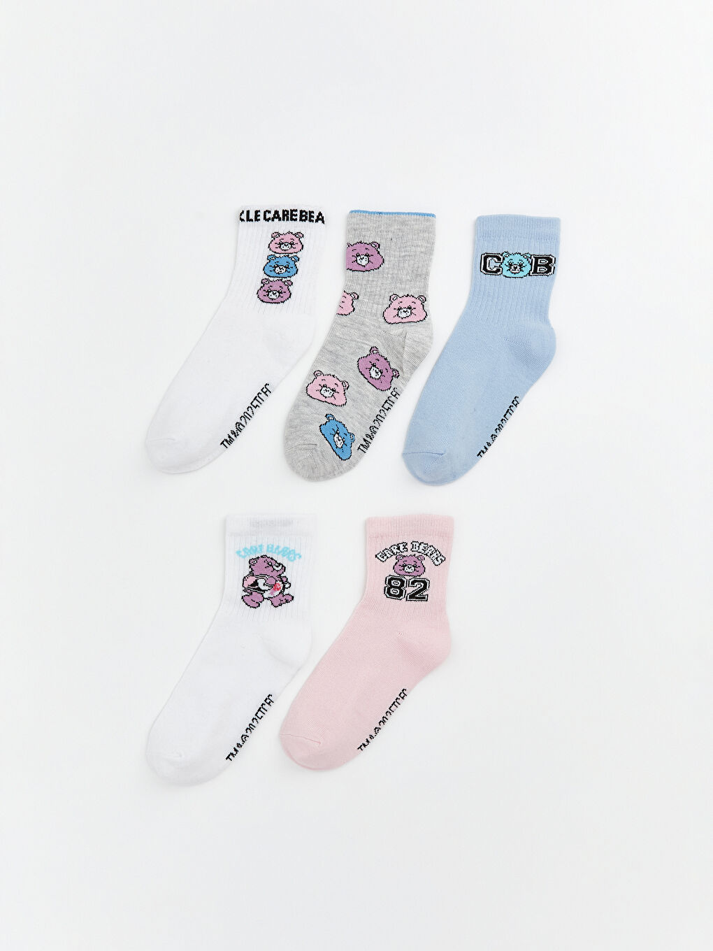 ست جوراب دخترانه‌ی تحت لیسانس Care Bears شامل پنج جفت جوراب است که هر کدام طرح و متن متفاوتی دارند.