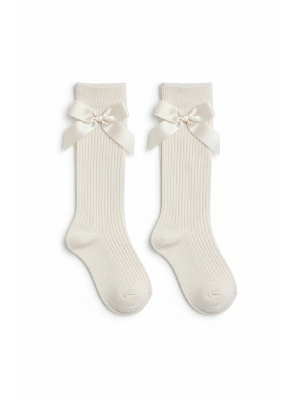 جوراب ساق بلند دخترانه طرح پاپیون / رنگ کرم