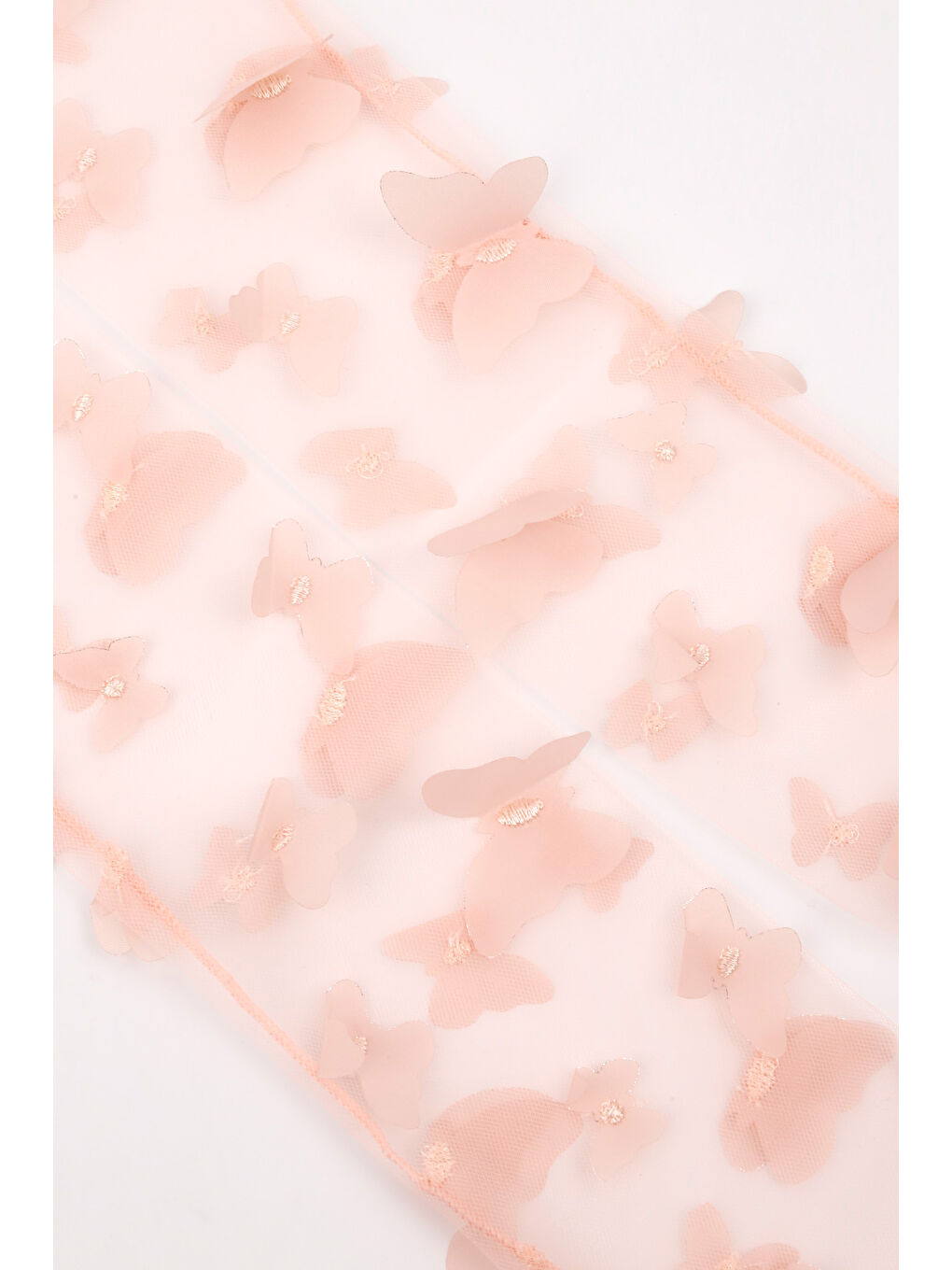 جورابهای تول دخترانه اپلیکه دوزی شده با طرح پروانه صورتی ماهی سالمون