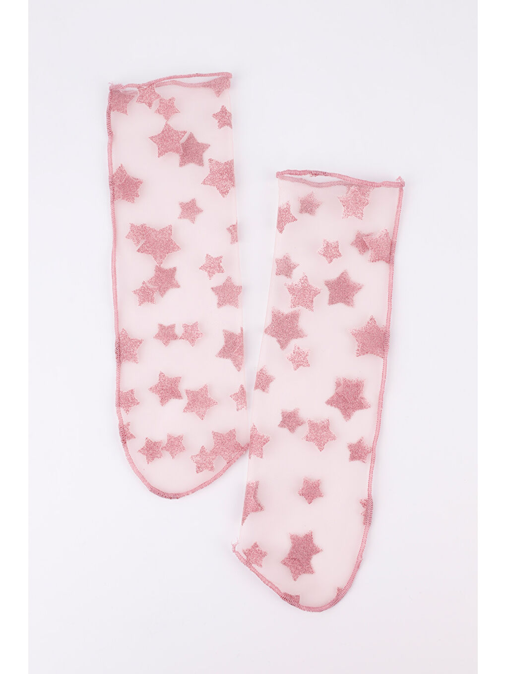 جورابهای تول دخترانه صورتی گرد و خاکی طرح رز استار
