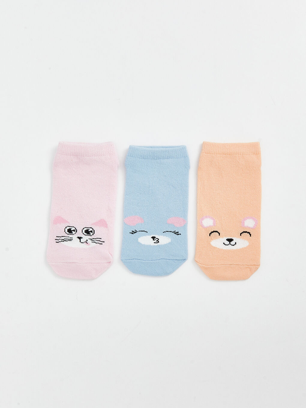 بسته ۳ عددی پاپوش و جوراب دخترانه طرح‌دار صورتی