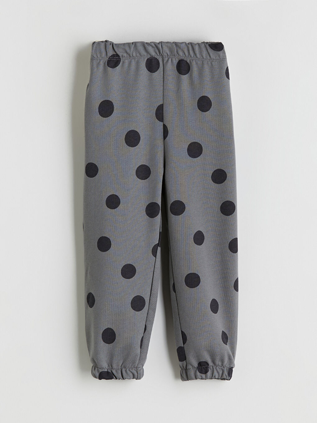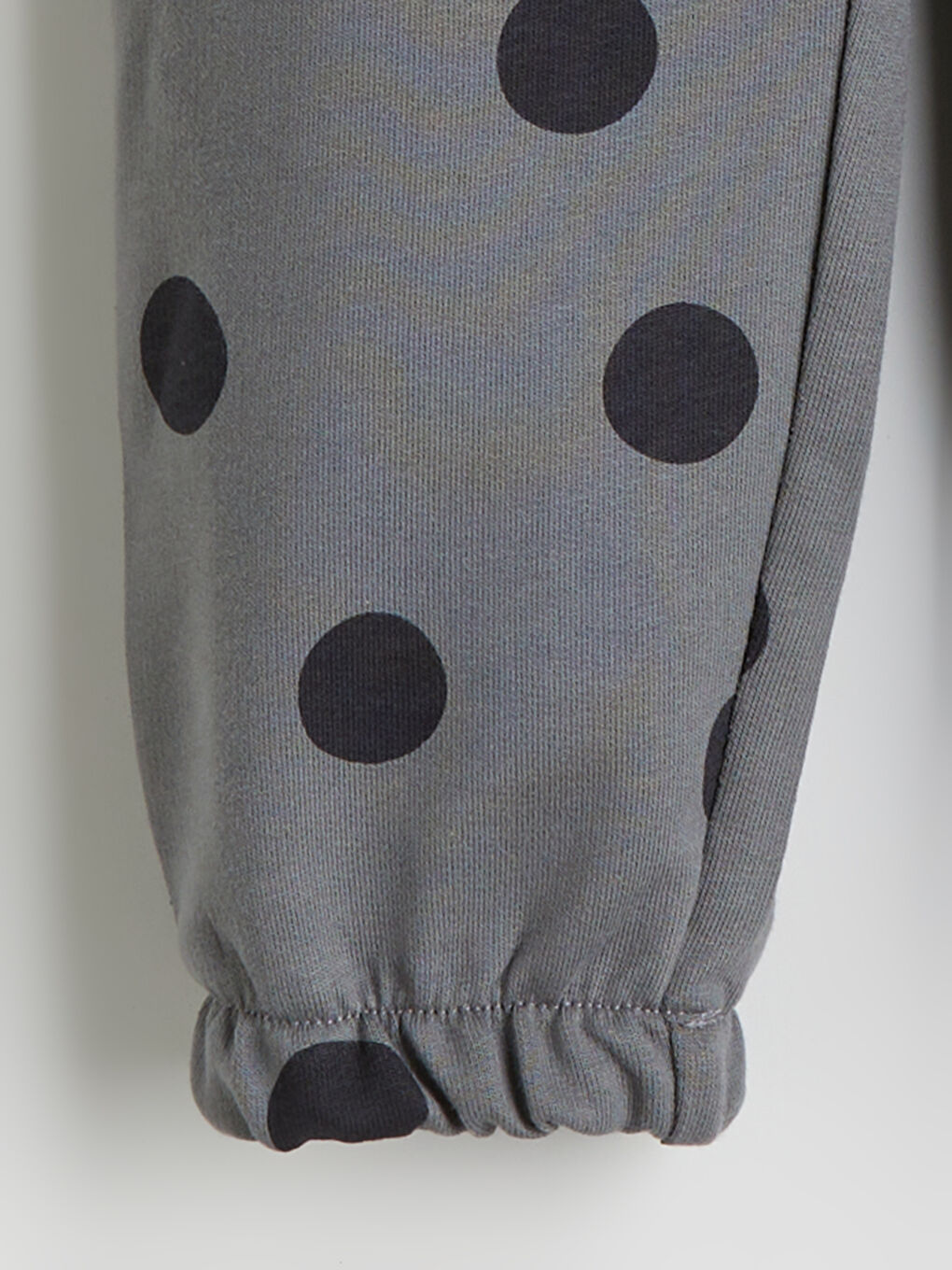 شلوار ورزشی دوشی دخترانه خال خال از پارچه ضخیم و دولایه ساخته شده است. کمر و پاها حالت ارتجاعی دارند.