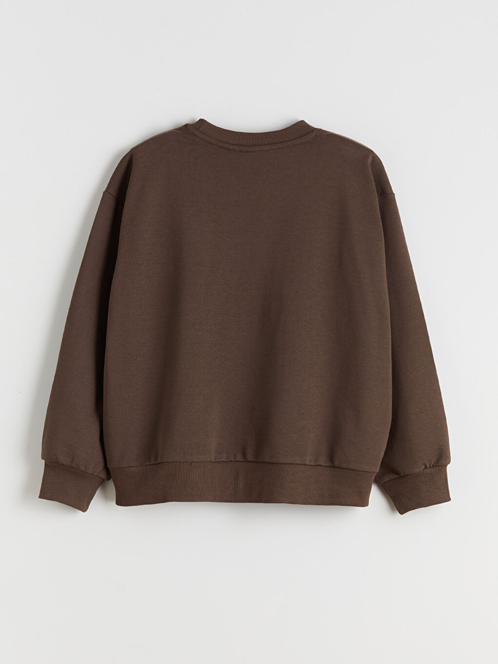 سویشرت دخترانه طرحدار یقه گرد قهوهای طرح پمپومپورین