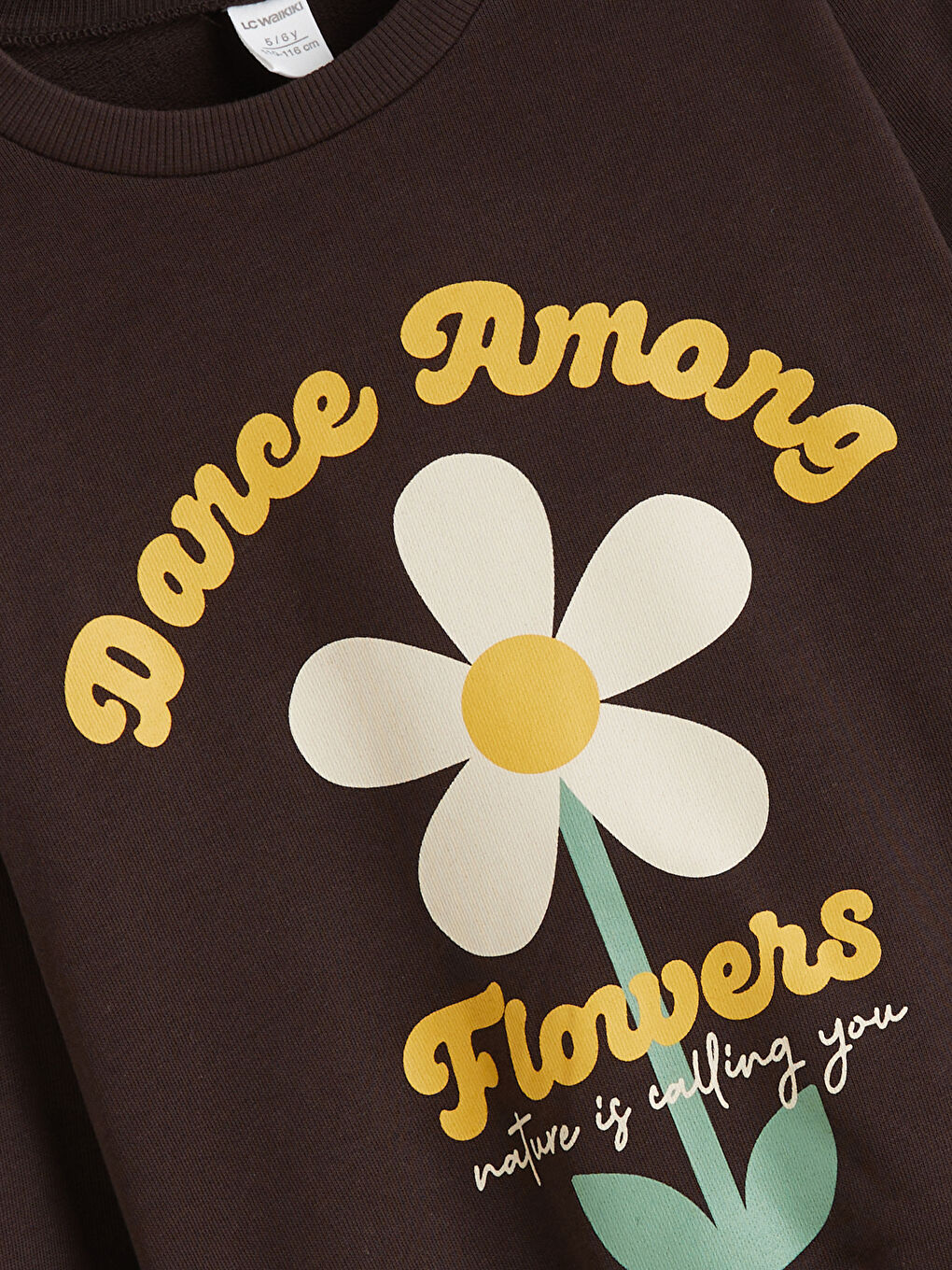 سویشرت دخترانه گلدار یقه گرد قهوهای