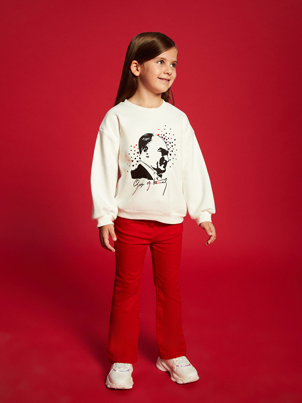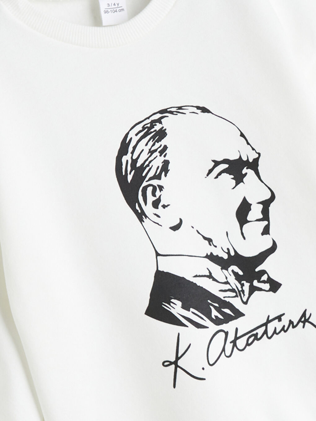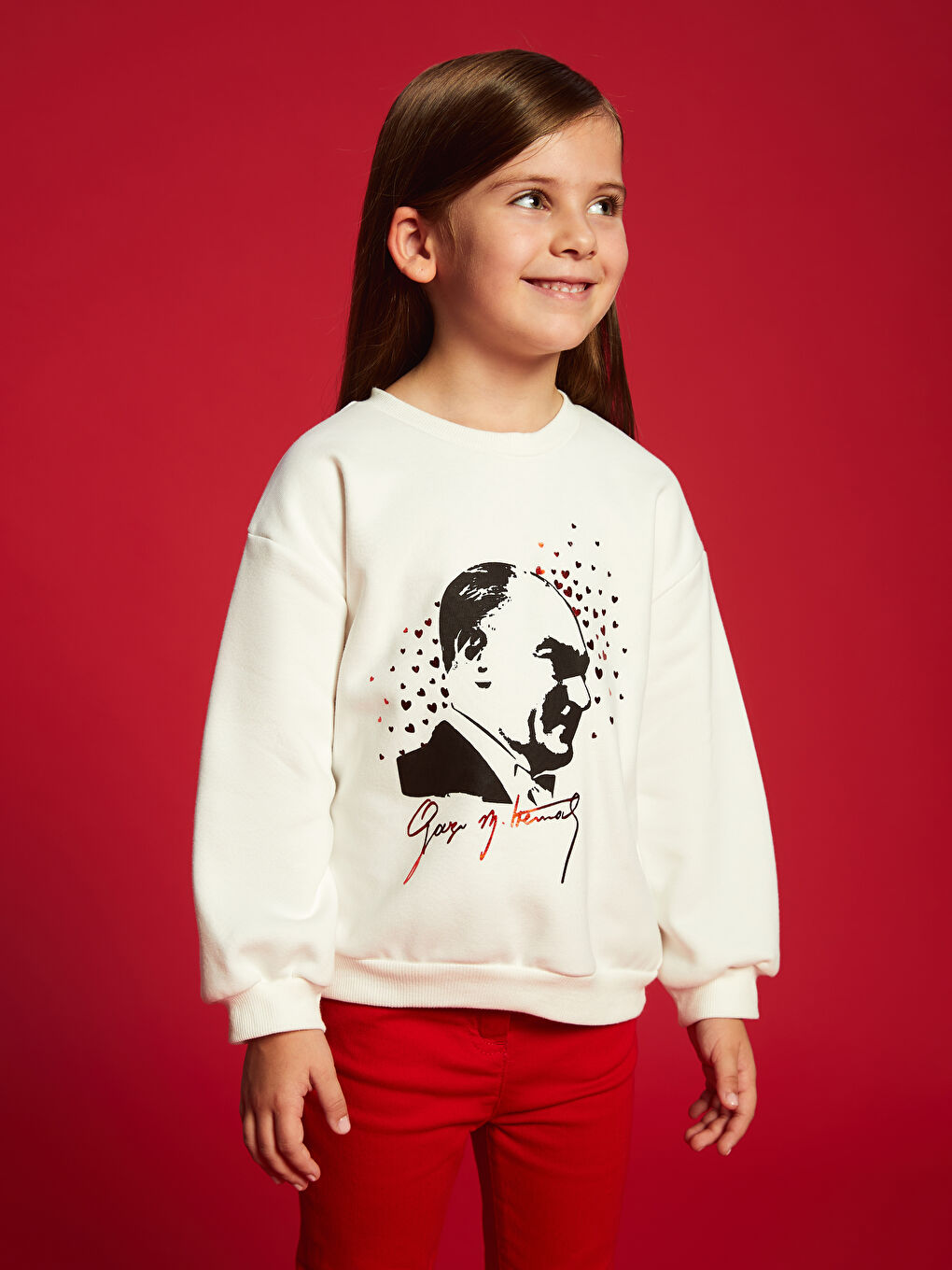 سویشرت دخترانه یقه بلند اکرو با چاپ آتاتورک