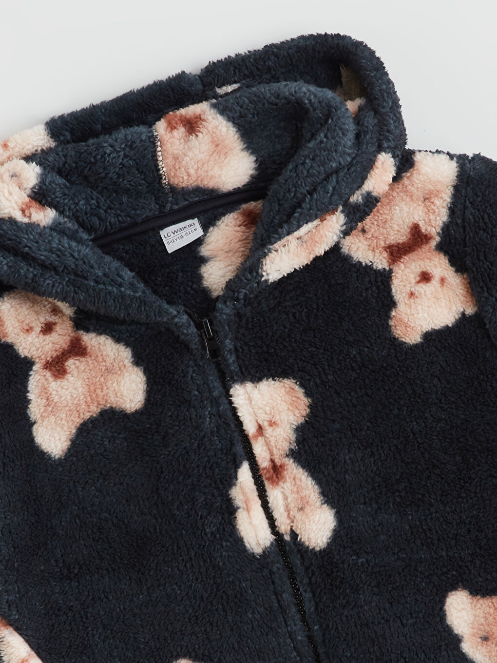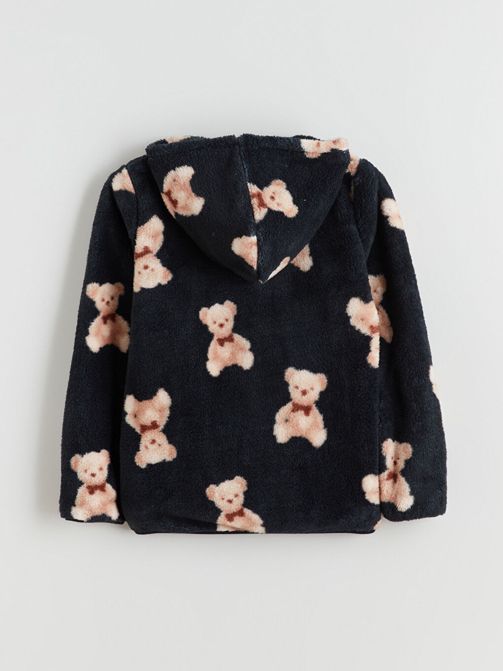 این سویشرت دخترانه طرح خرس که از پارچه مخمل ضخیم ساخته شده، دارای کلاه، آستین بلند، زیپ جلو و جیبهای کناری است.