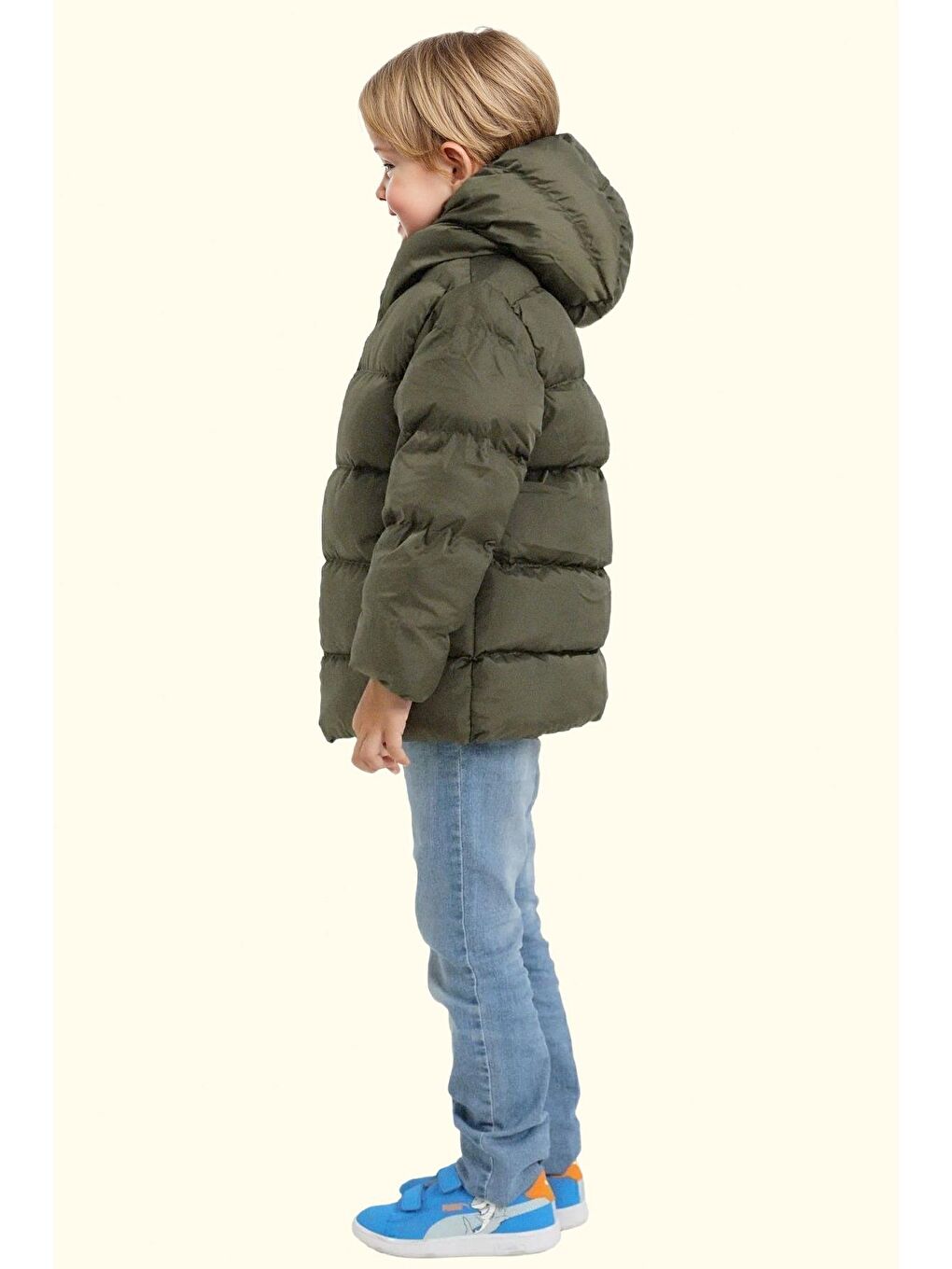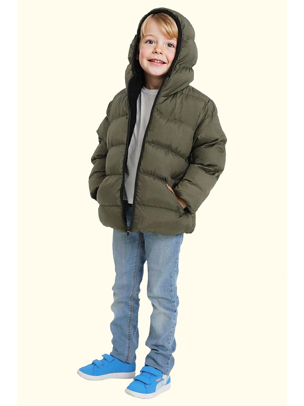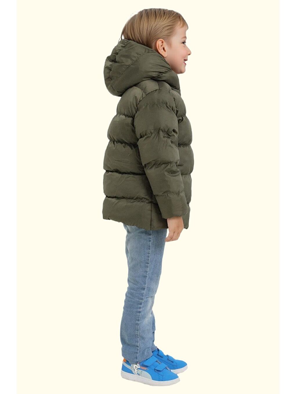 پالتو زمستانی پسرانه پشمی ضد آب و بادگیر کلاه دار خاکی رنگ