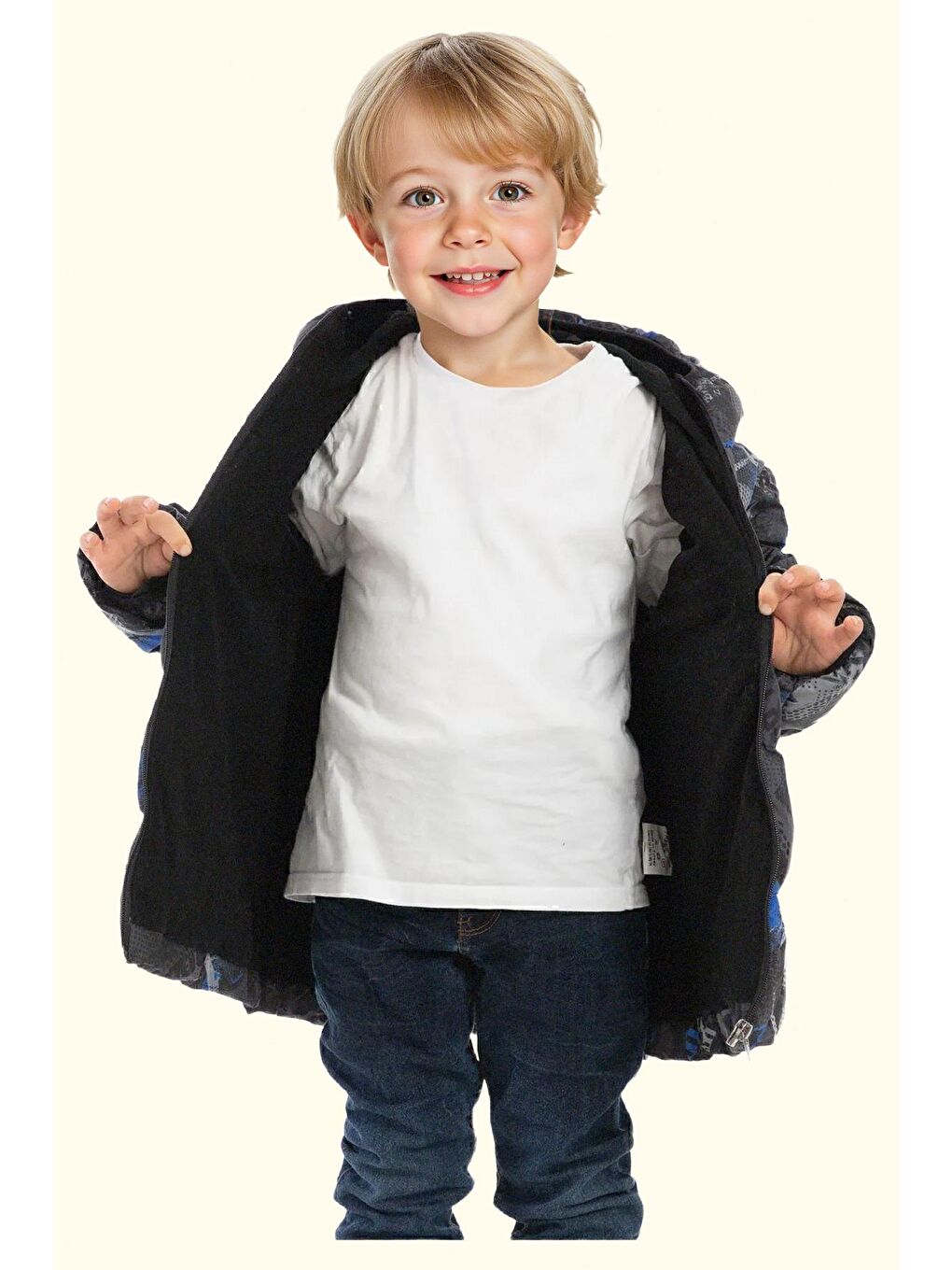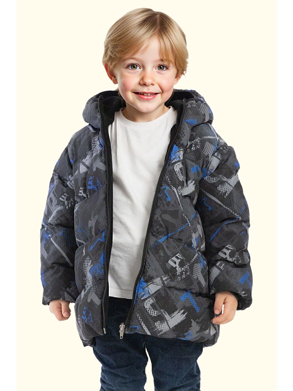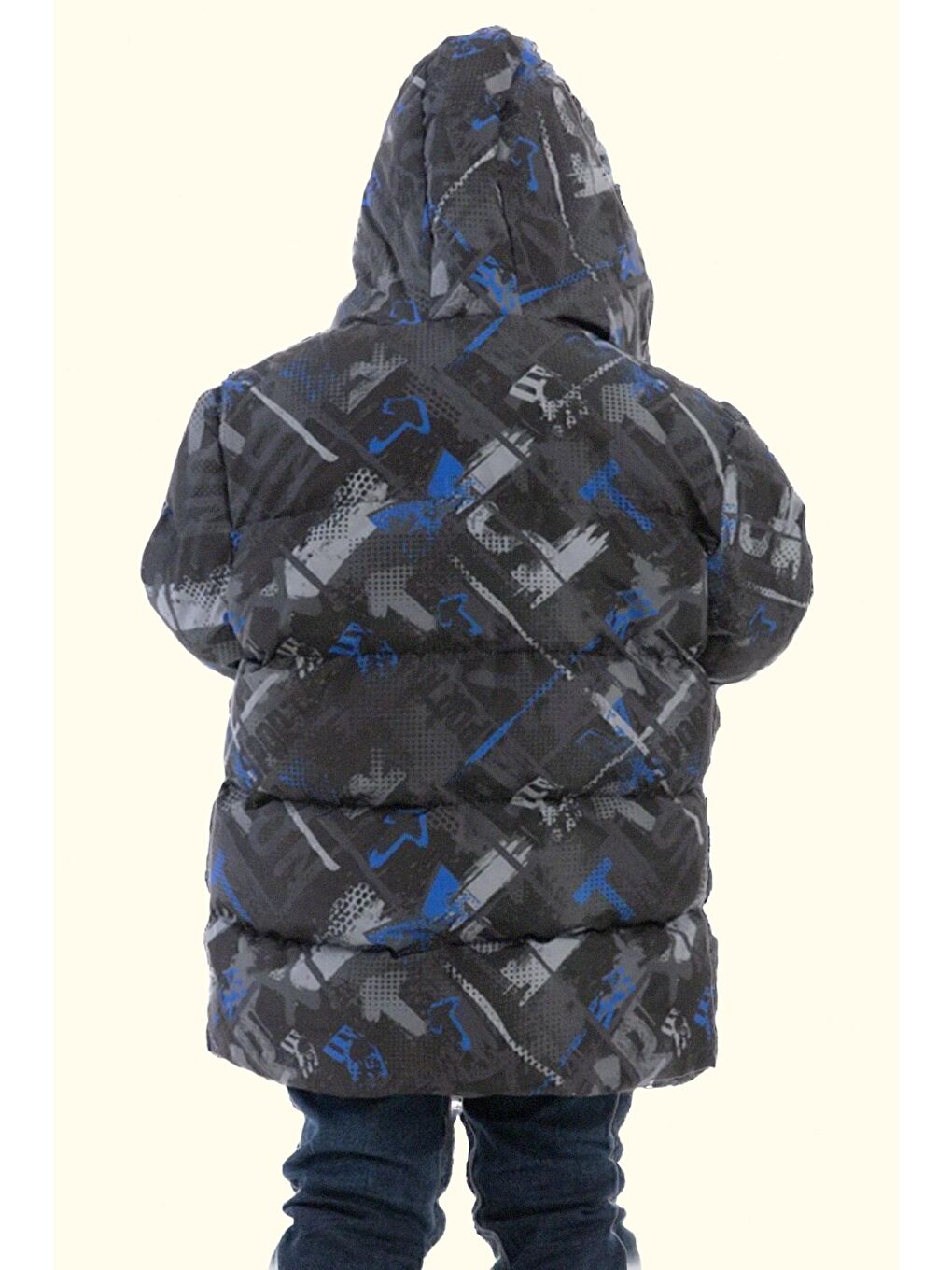 پالتو زمستانی پفی کلاه دار طرح دیجیتال پسرانه آبی، ضد آب و باد، از جنس پشم پلار