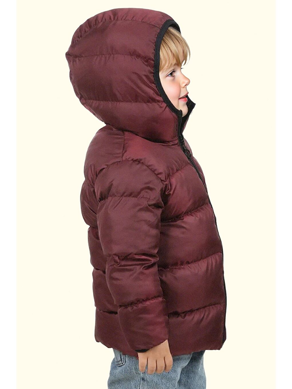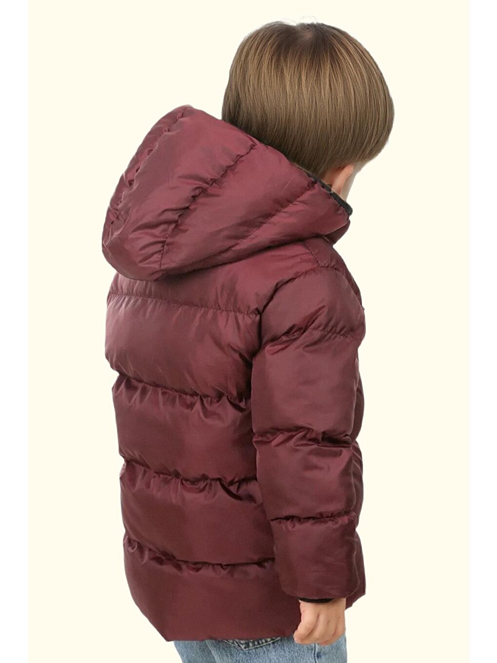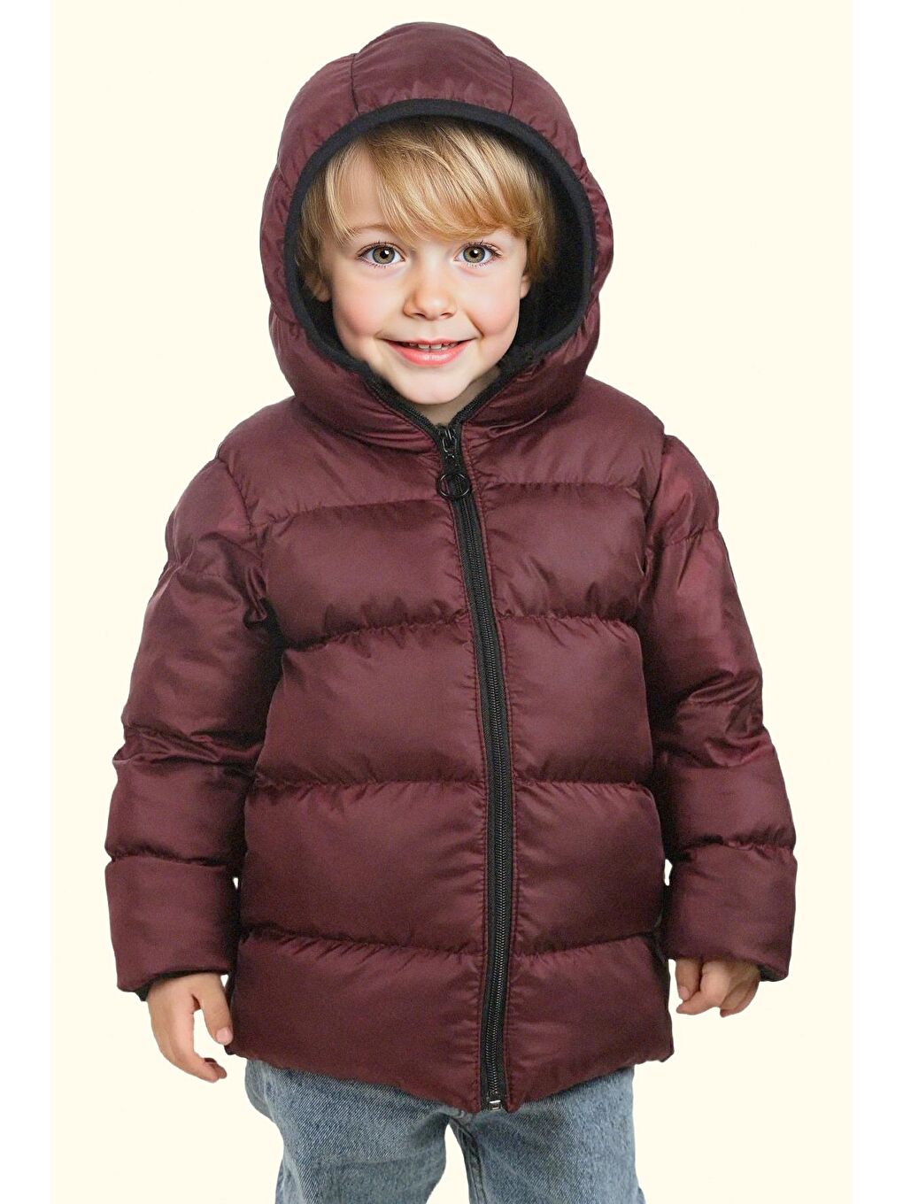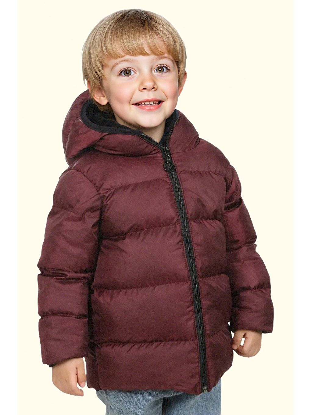 پالتو زمستانی پفی ضد آب و بادگیر کلاه دار خزدار پسرانه زرشکی