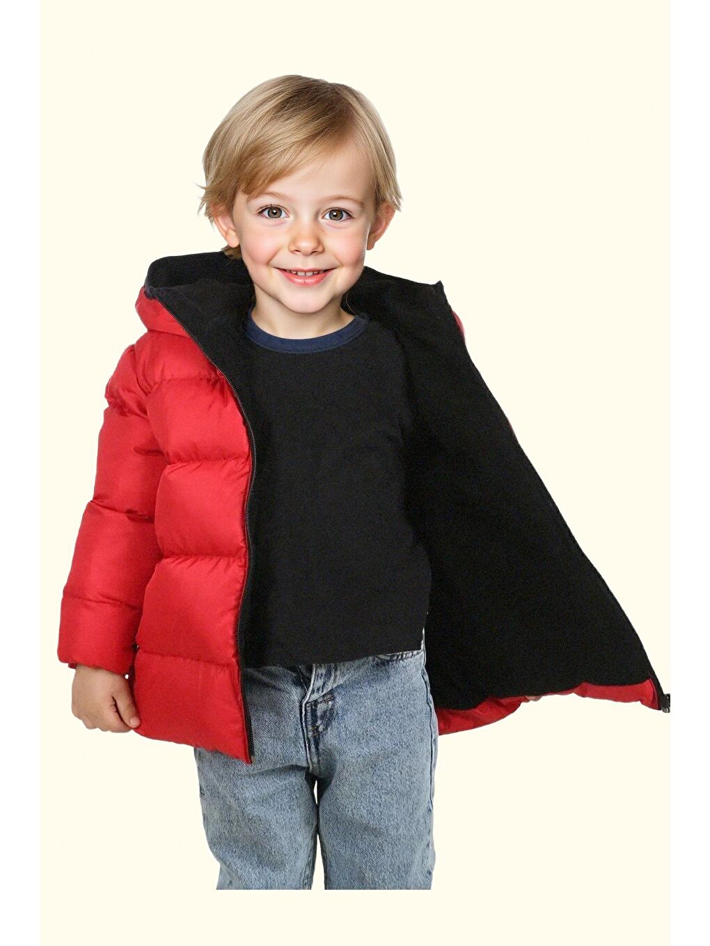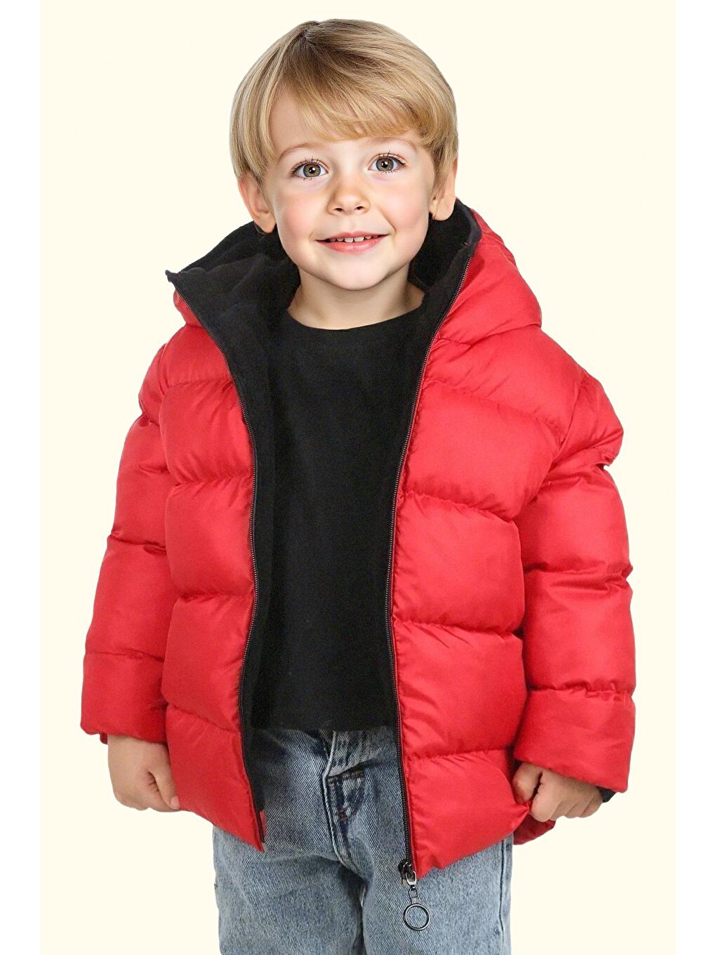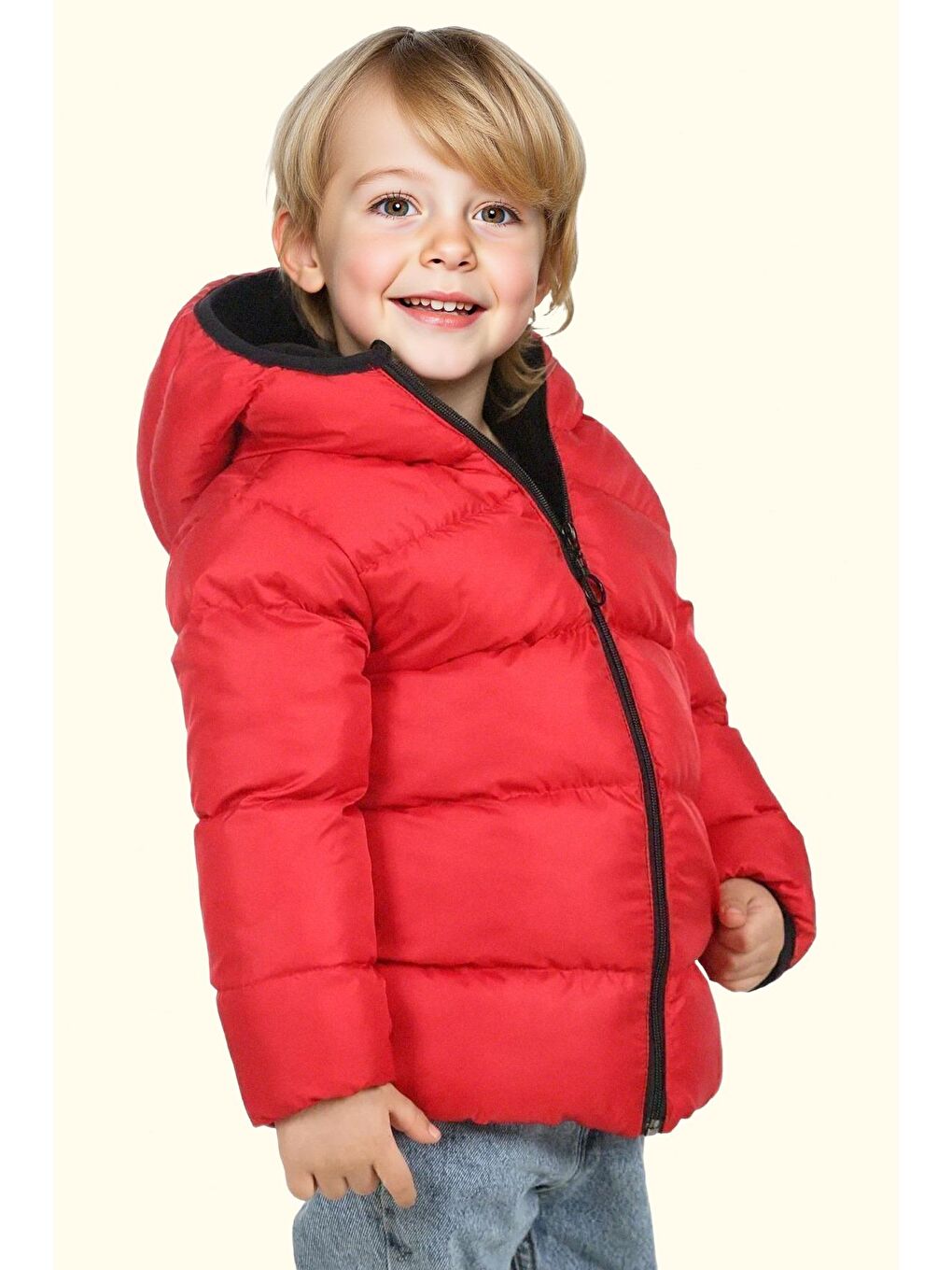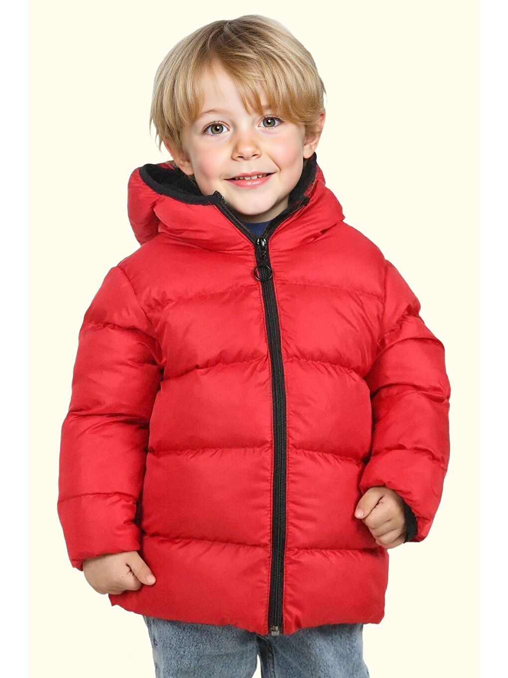پالتو زمستانی پفی ضد آب و بادگیر کلاه دار خزدار قرمز پسرانه