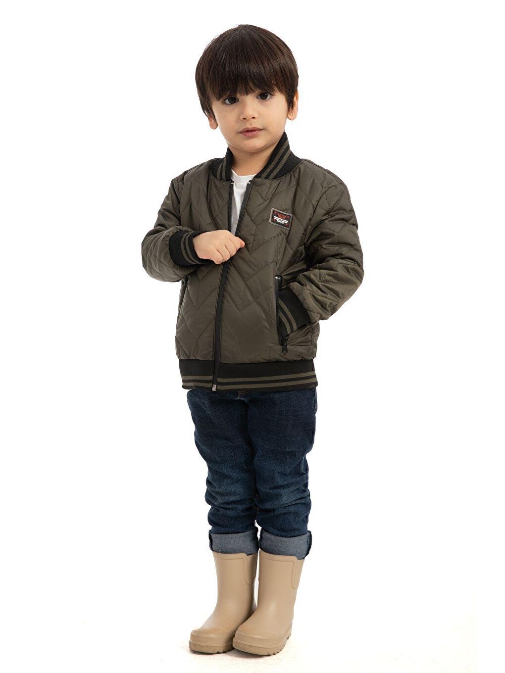 کاپشن زیپدار ضد آب و باد، یقه دانشگاهی پسرانه خاکی