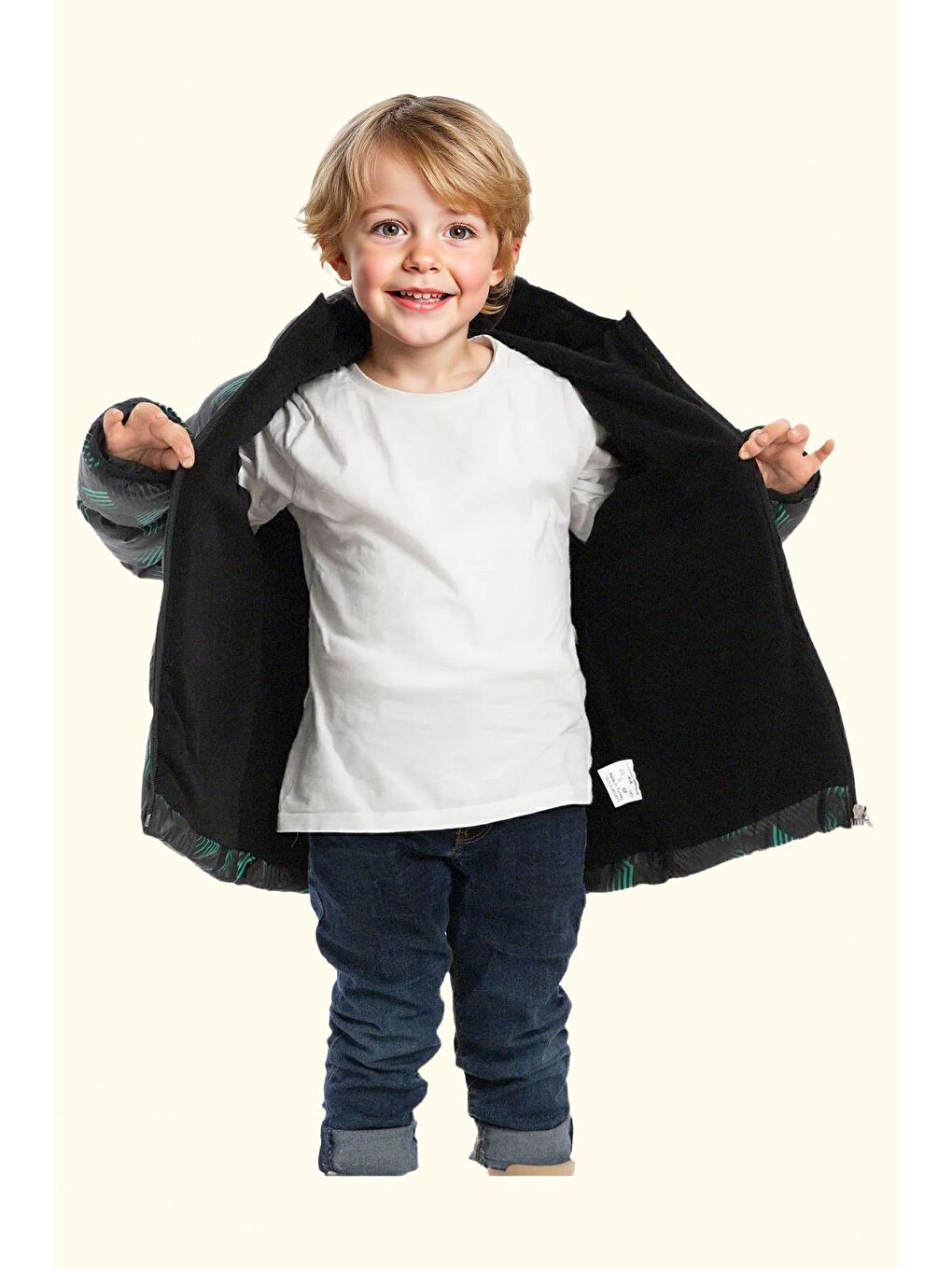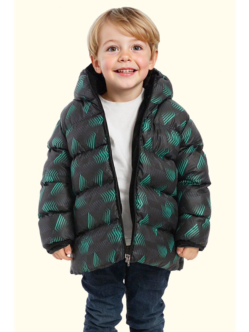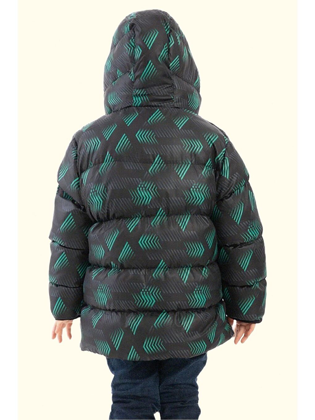 پالتو زمستانی پفی کلاه دار طرح دیجیتال پسرانه مشکی، ضد آب و باد، از جنس پشم پلار