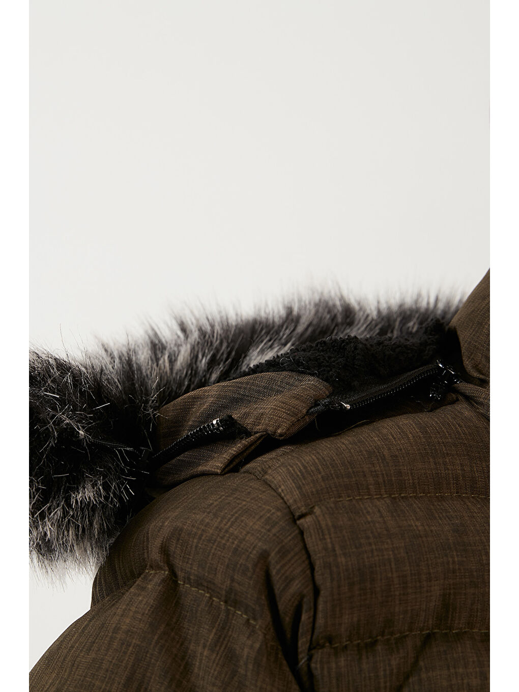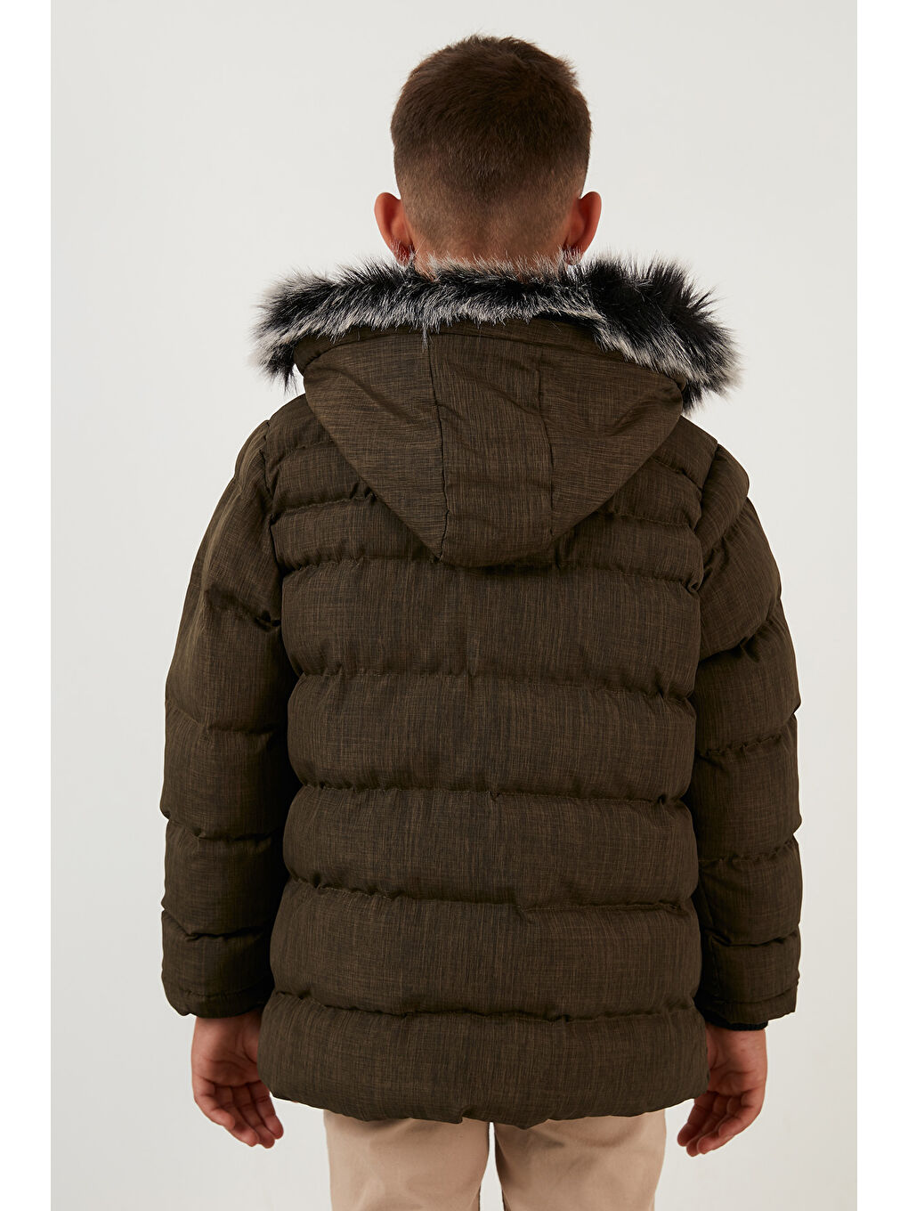 پالتو پسرانه زمستانی مخمل خاکی آستردار با کلاه و جیب جداشدنی ۵۷۶۰۰۲۴