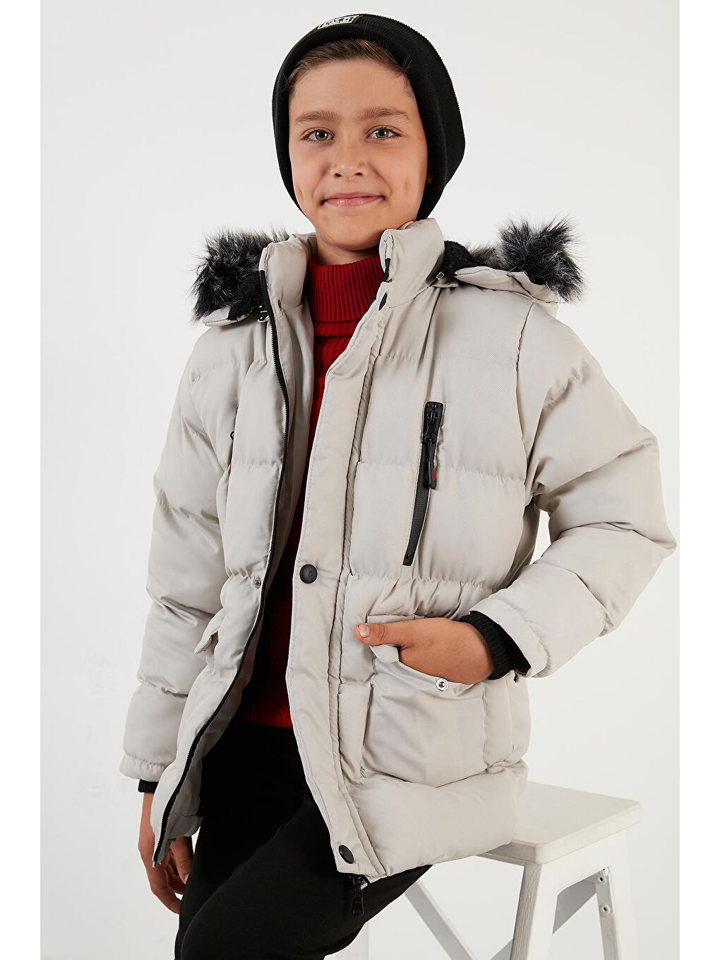 پالتو زمستانی ضد آب کلاه دار، جداشدنی، آستر مخمل بژ، کد ۵۷۶۰۰۲۲